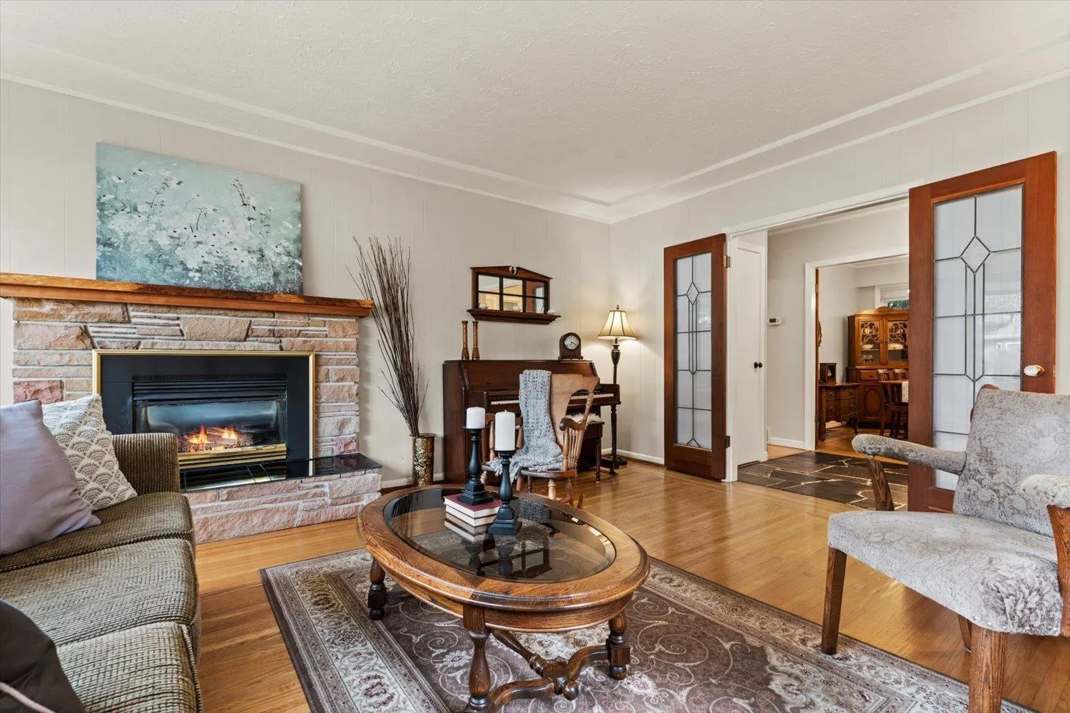 Welcome to classic charm. This lovingly maintained rancher with basement has some of its vintage character beautifully preserved. Original wood floors with inlaid borders adorn the main living areas as well as wood frame french doors and stepped ceilings. The kitchen is bright and white with ample cabinetry and a spacious eating area. Step down to a large family room perfect for family gatherings. Downstairs the fully finished basement offers a rec room with a stone fireplace, organized storage/flex room, full bath and a hobby shop room that can easily be converted to another bedroom. The massive private fenced 9,100sq.ft lot. offers an excellent opportunity for a growing family to create their forever home in this established neighborhood close to schools, shopping and more! A must see! (id:27476)
