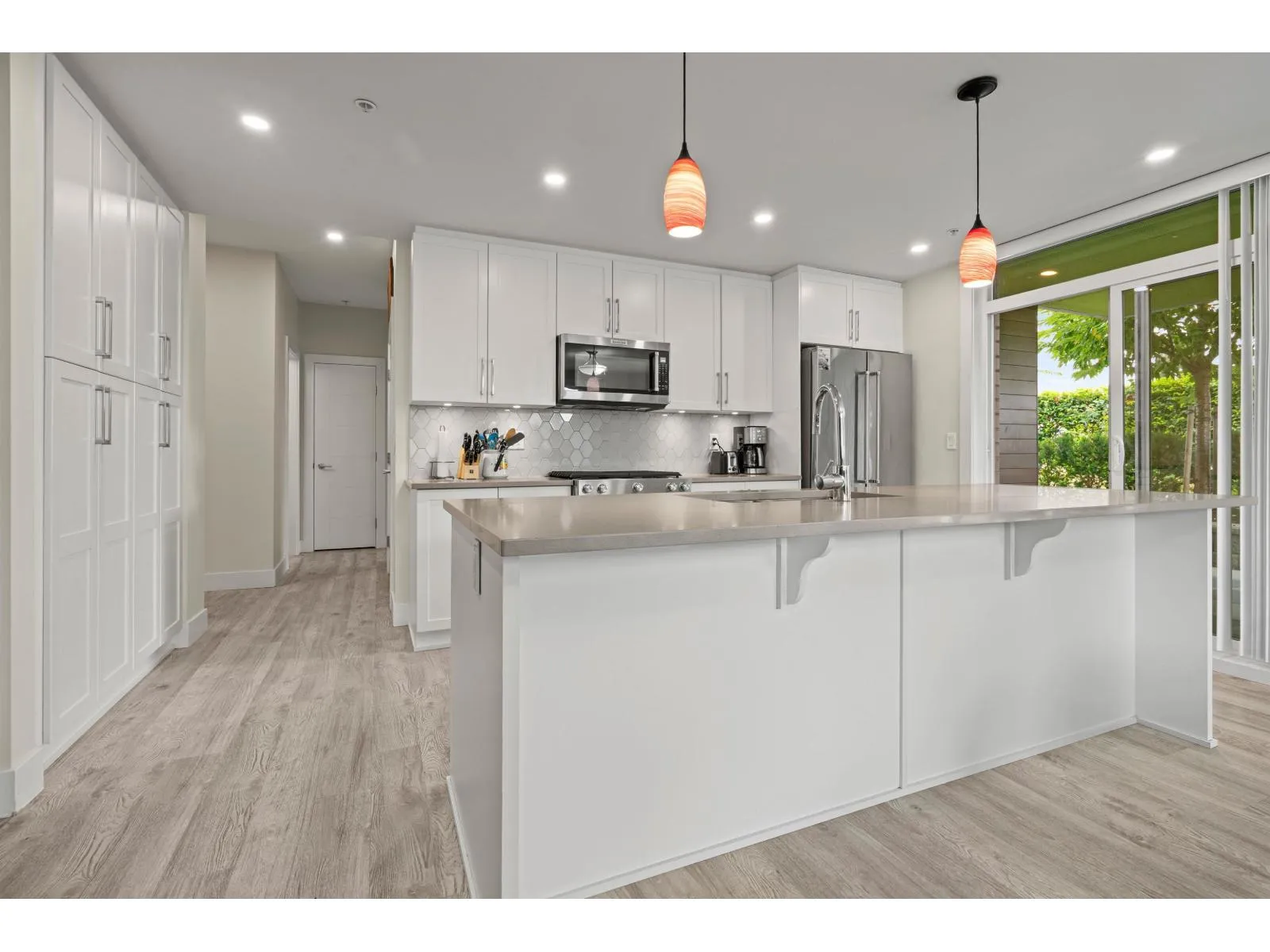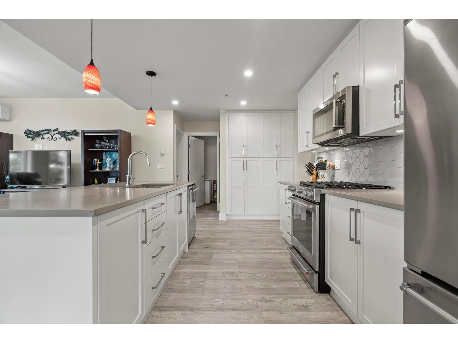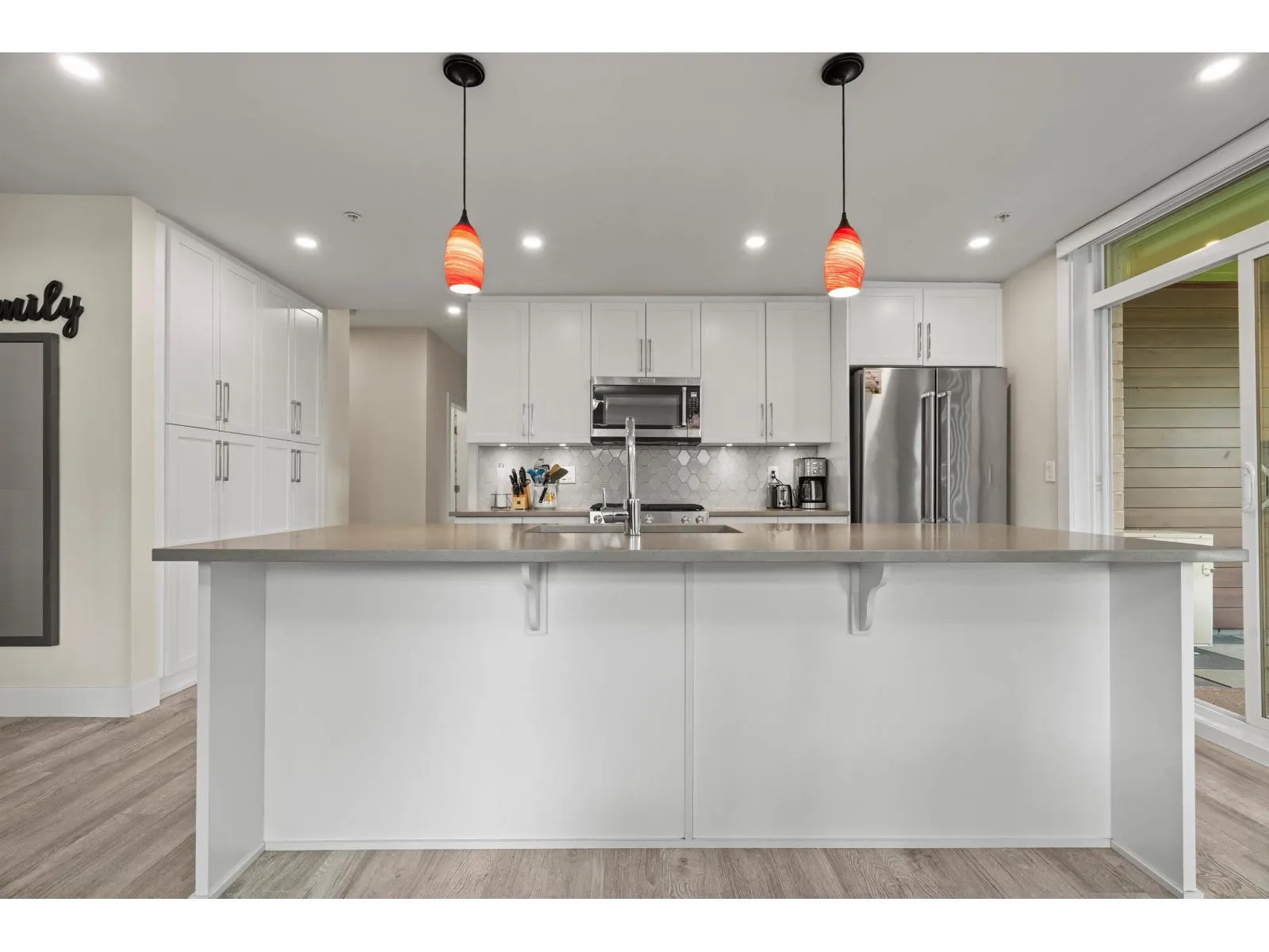 Welcome to this exceptional 3 bedroom corner unit condo with a bonus 1-bed/ bachelor lock-off suite ideal for in-laws, guests, or potential rental income. Enjoy bright single-level living featuring a chef-inspired KitchenAid kitchen with premium gas range, oversized island, and abundant storage with large pantry. The open dining area seats eight, and large windows flood the home with natural light. The spacious primary retreat offers a walk-in closet and spa-inspired ensuite with dual vanities and a walk-in shower. 2 additional bedrooms and full laundry room add function and flow. Step outside to 2 sun-soaked patios that wrap around with southern exposure-perfect for BBQs & entertaining. 2 secure parking stalls & 2 storage locker. Private suite has its own entrance, kitchenette, full bath. (id:27476)
