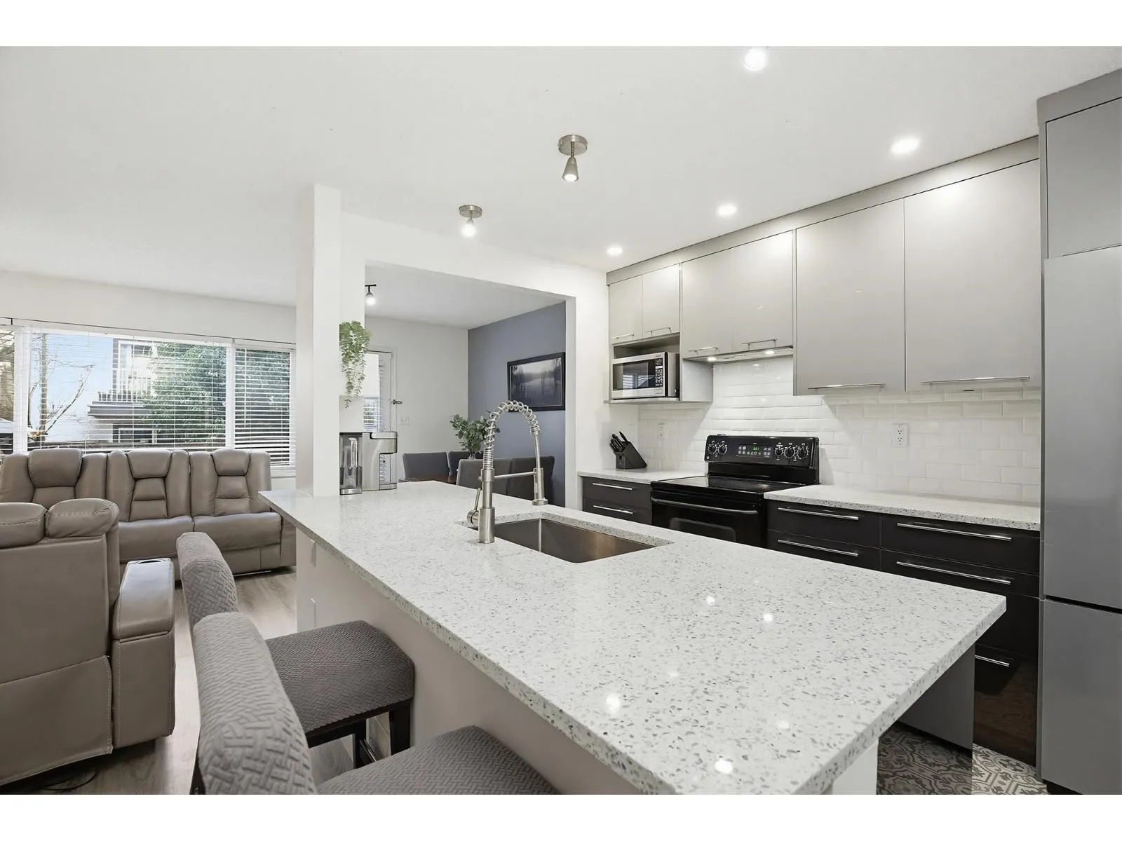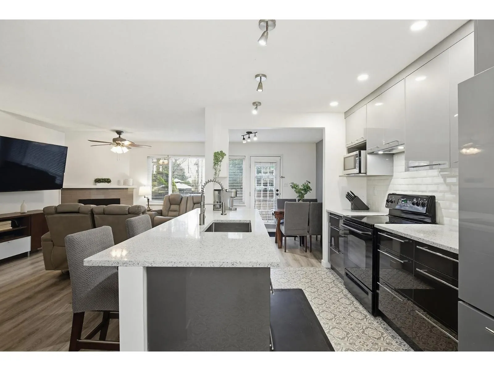 NOW THIS IS VALUE! This 4 bed, 3 bath, 3-level END UNIT is loaded w/updates offers space, style & flexibility for the whole family. Bright, open main floor features custom shaker cabinetry, granite countertops, new appliances, ample storage, & large island perfect for gatherings. Fresh paint, new flooring, custom trim, built-in pantry, gas fireplace, and new windows. Step out to your south facing, fully fenced backyard w/ deck, ideal for relaxing/ hosting. Upstairs offers 3 generous bedrooms & 4-piece bath with soaker tub. The lower level boasts a spacious rec room, 4th bedroom, 2-piece ensuite, and garage access, perfect for guests, teens, or home office. Two storage units! Family & pet friendly (2 dogs or 2 cats no size rest) Fabulous central location! (id:27476)