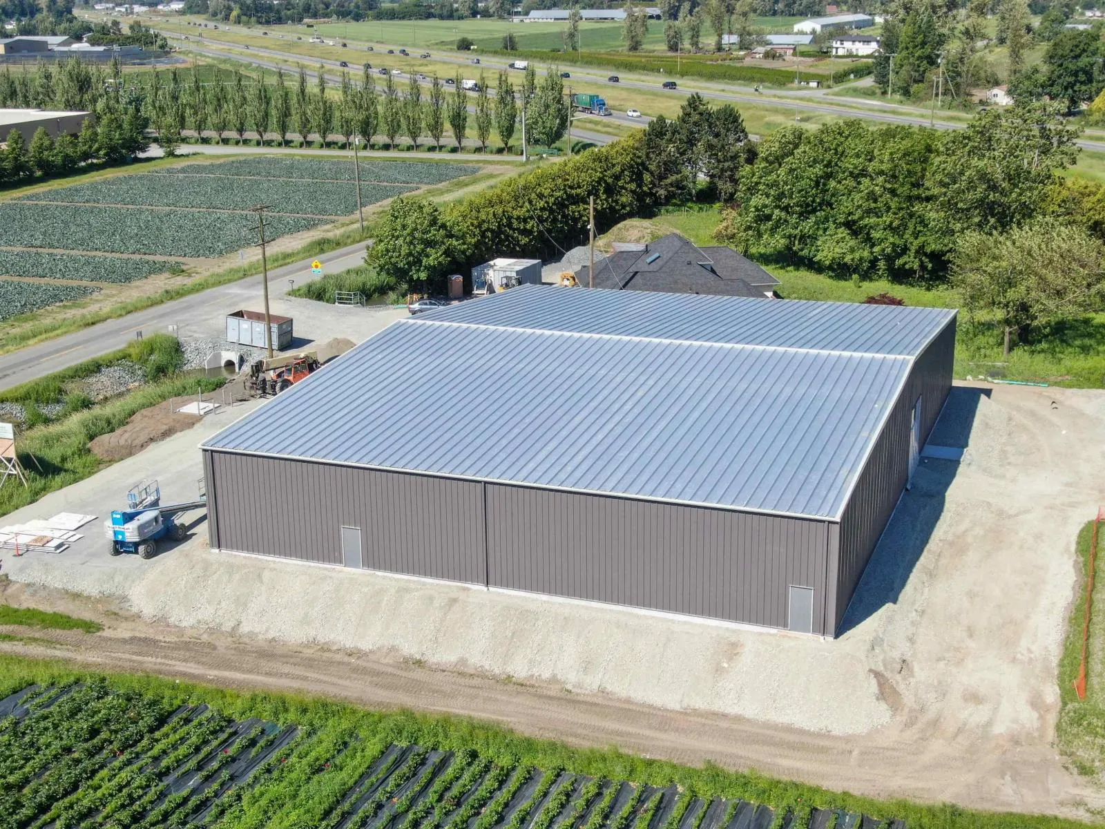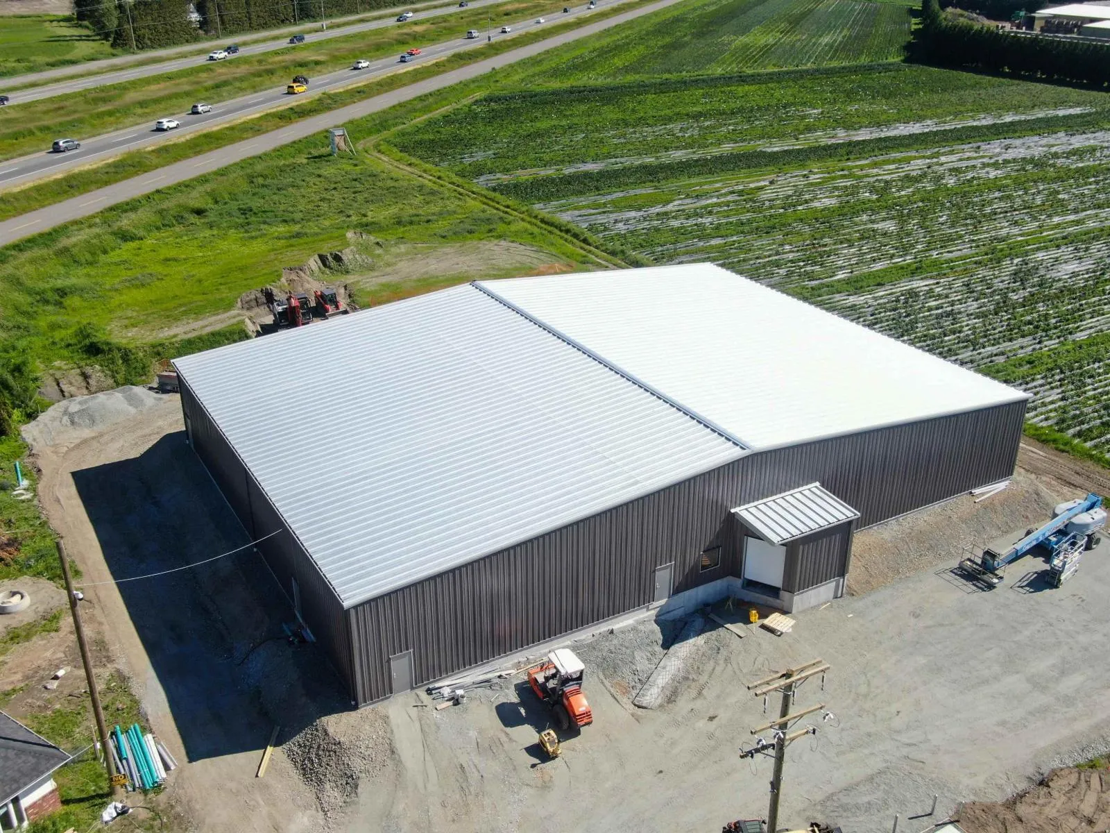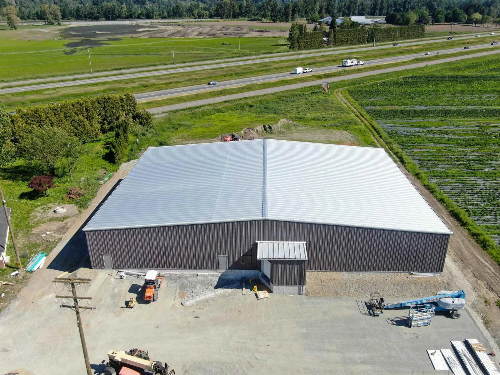 2.39 ACRES with MASSIVE 14,700sf shop/warehouse at No. 4 Road & South Parallel Road. Major visibility from Highway #1 in Abbotsford. Featuring a 2,360 SQ/FT Home with 3 Bedrooms and 3 Bathrooms, and a 400 SQ/FT storage shed. (flood damage needs reno) 3 Phase Power, City Water, Natural Gas, and Septic System. The main driveway access is 40 feet to accommodate large trucks for shipping and receiving. The Food Processing warehouse is 14,707 sf fully steel structure built in 2022. Facility contains a large open area of 12,000(+-) SQ/FT area with 18' Clearance, 600 SF Cold Storage, 600 SF Dry Storage, and 220 SF Shipping area with Loading Dock, full size roll up door, a Lunchroom, Change Room, and washroom. State of the art facility that is suitable for many uses. Listed below replacement cost. (id:27476)