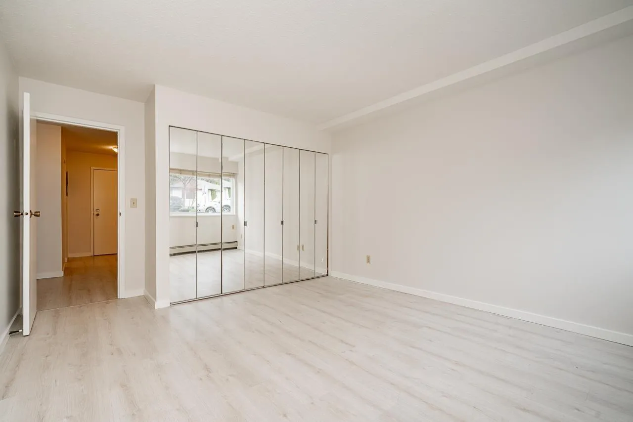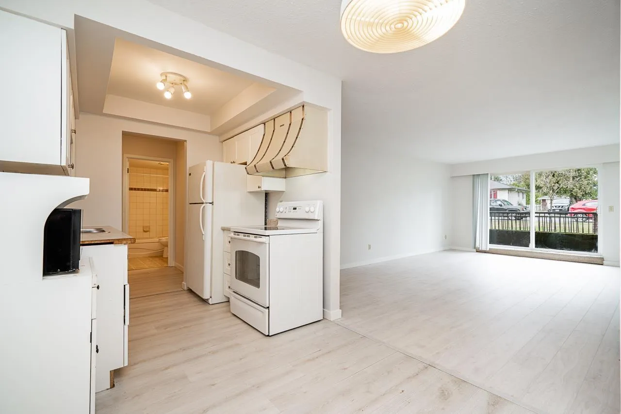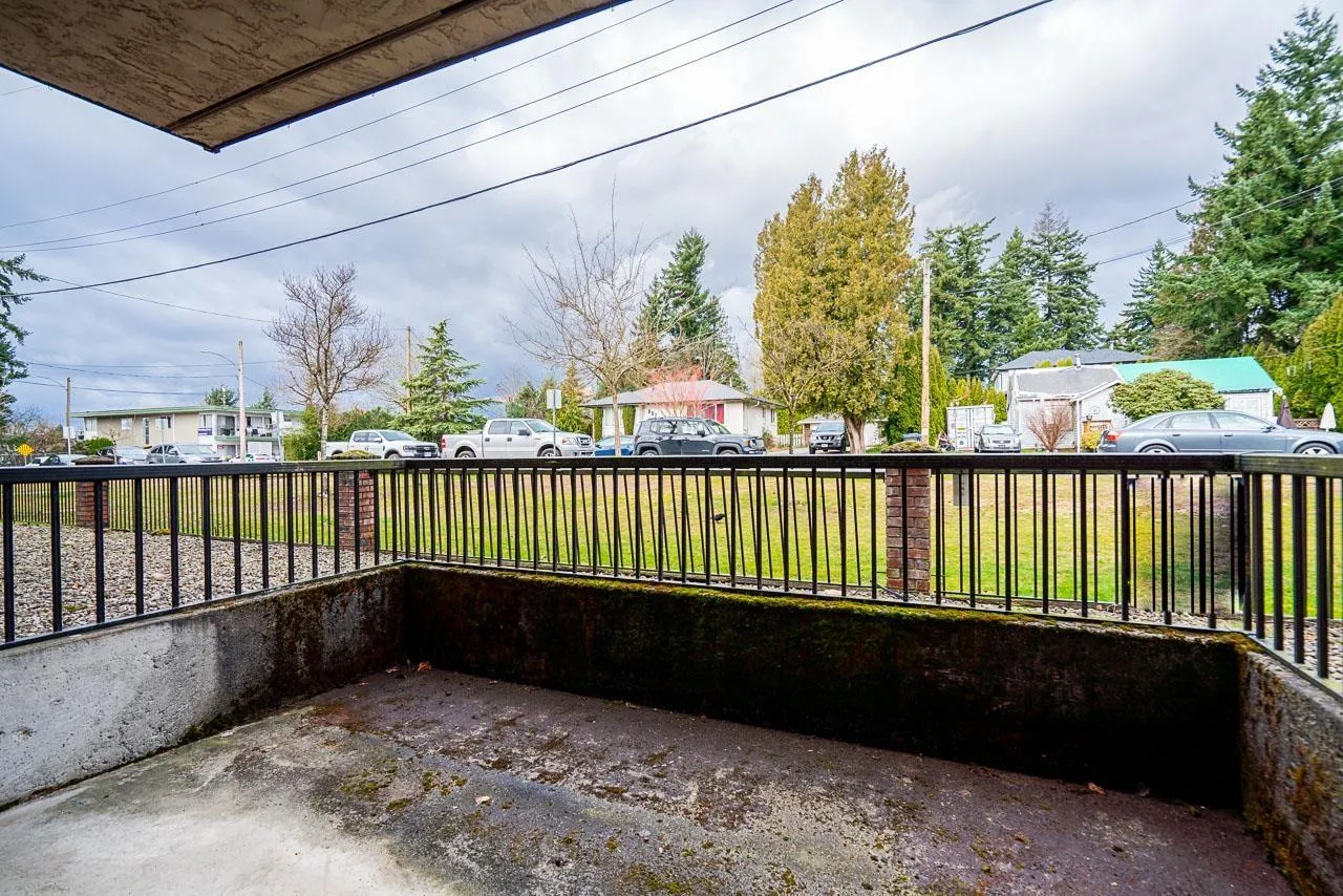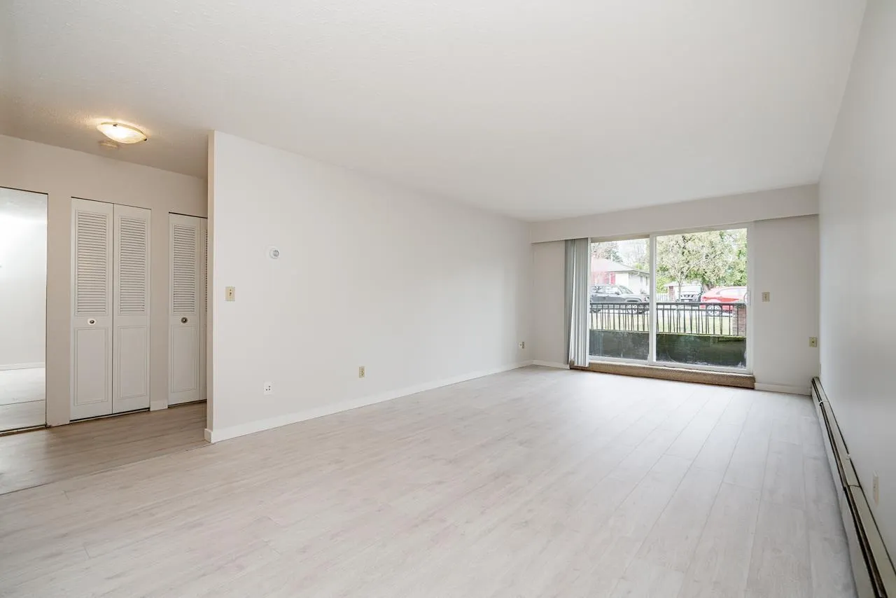 Welcome to this Updated 1 Huge Bedroom and 1 Bathroom Ground Floor Home walking distance to upbeat and trendy Historic Abbotsford. Fantastic Unit with brand NEW flooring and paint through out. Move In Ready! Bright and Spacious Floor Plan with a massive bedroom with double closet space and space for a den! Dining off of retro Kitchen. Living room is large with doors to private concrete patio. Lots of closet space through out and a bonus huge storage room in unit. Underground Parking and additional storage locker included. In a great location~..walk to farmers market and the trendy shops and cafes. Exceptionally priced! Great Unit to call home or as an investment. Call to book your private showing!~ (id:27476)