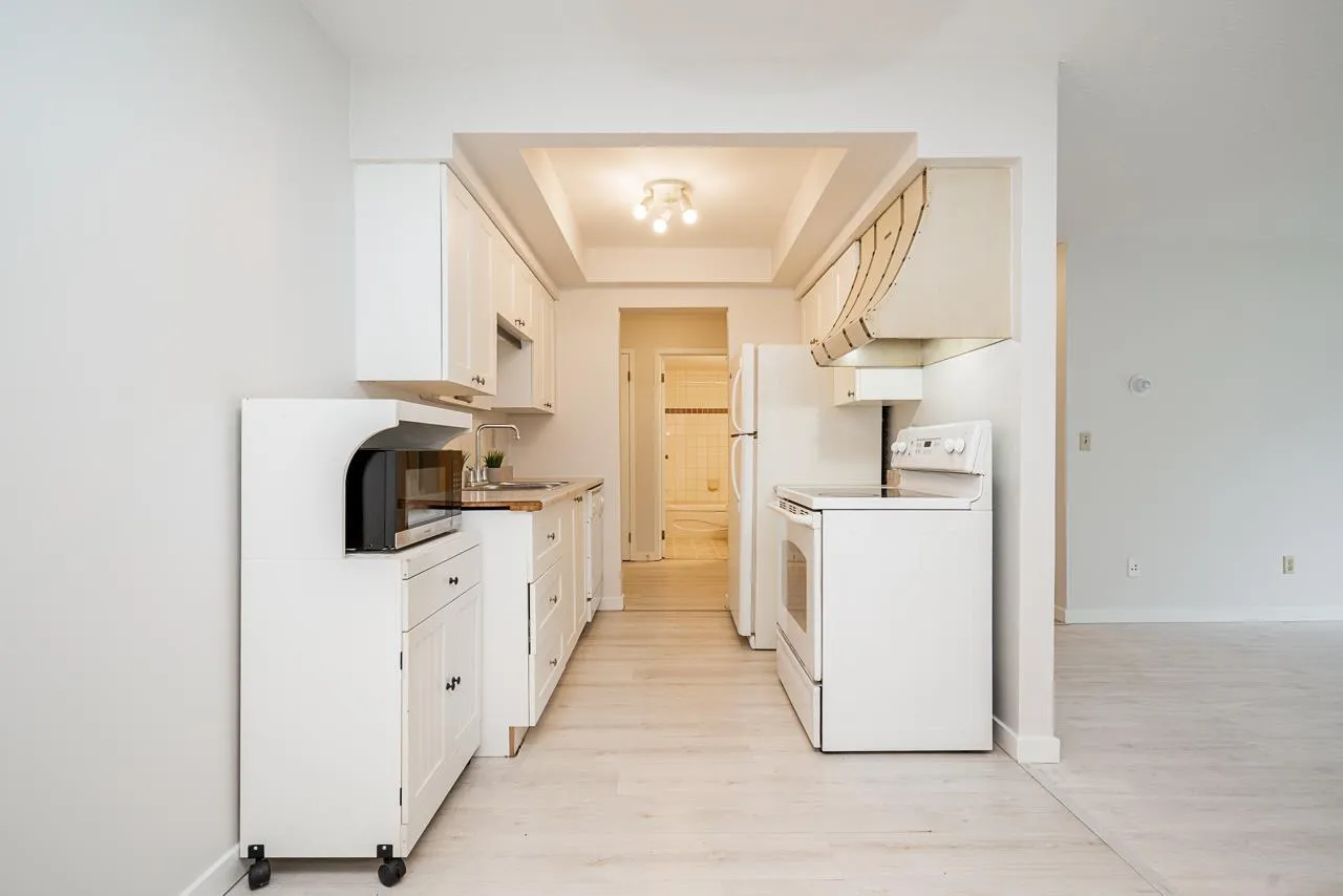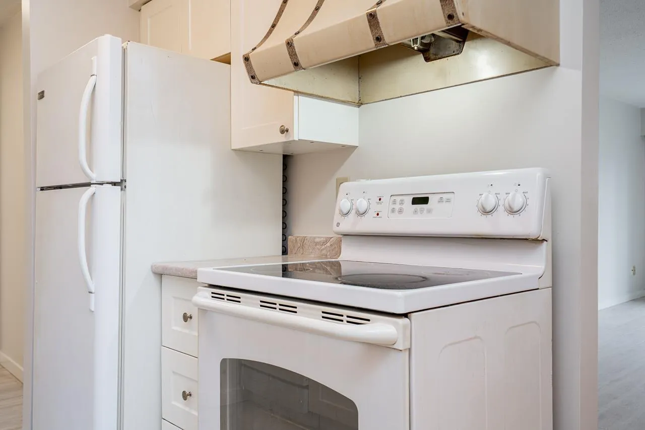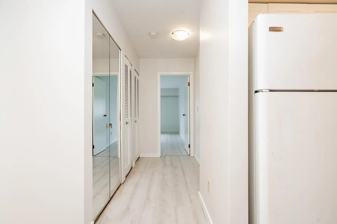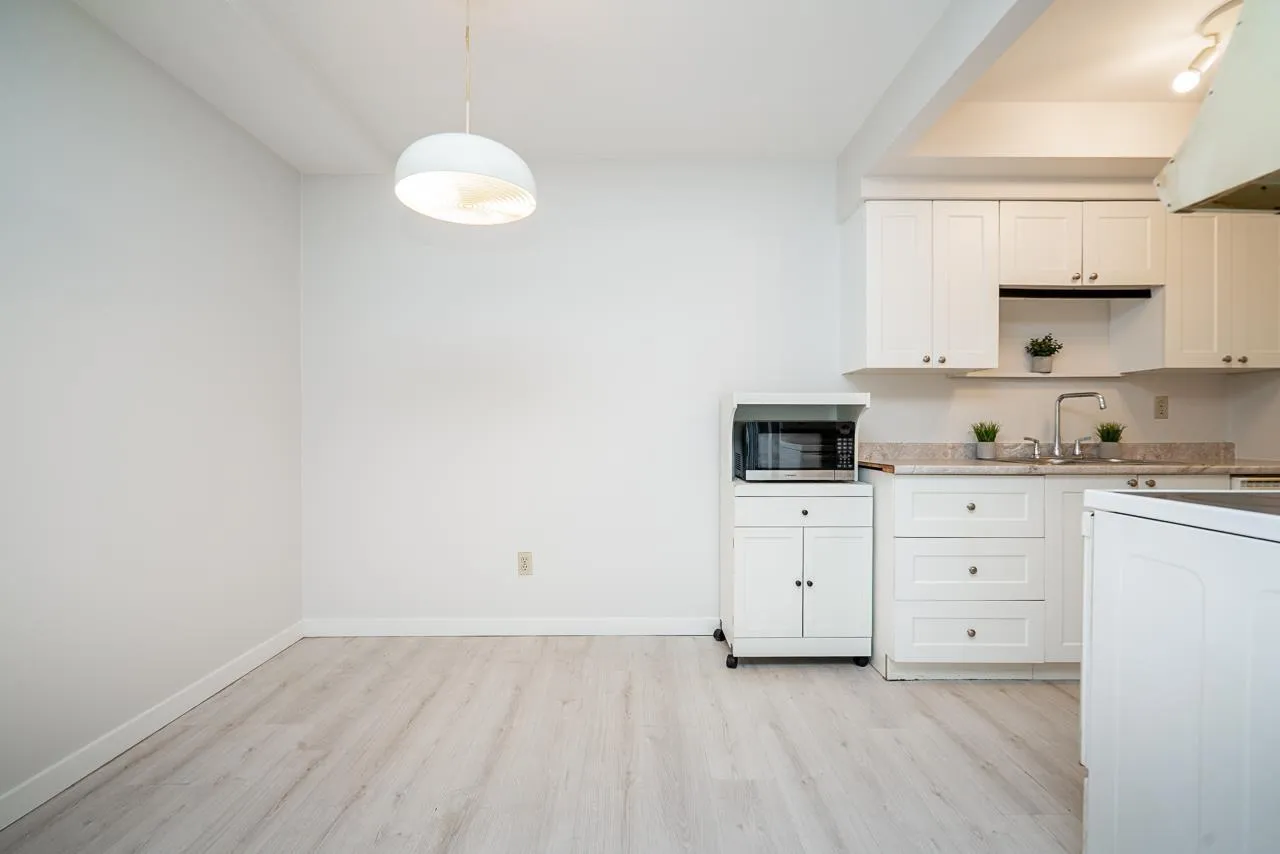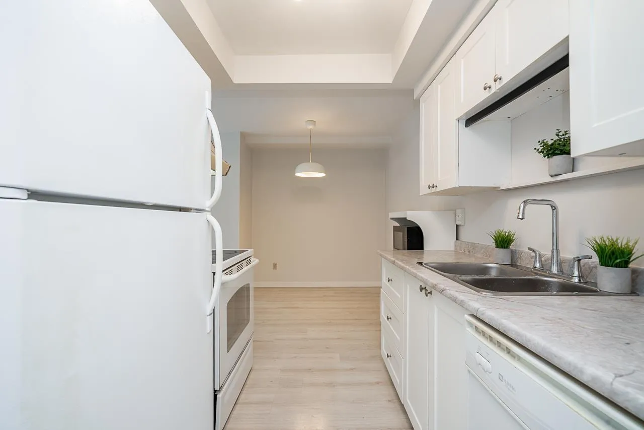 Welcome to this Updated 1 Huge Bedroom and 1 Bathroom Ground Floor Home walking distance to upbeat and trendy Historic Abbotsford. Fantastic Unit with brand NEW flooring and paint through out. Move In Ready! Bright and Spacious Floor Plan with a massive bedroom with double closet space and space for a den! Dining off of retro Kitchen. Living room is large with doors to private concrete patio. Lots of closet space through out and a bonus huge storage room in unit. Underground Parking and additional storage locker included. In a great location~..walk to farmers market and the trendy shops and cafes. Exceptionally priced! Great Unit to call home or as an investment. Call to book your private showing!~ (id:27476)