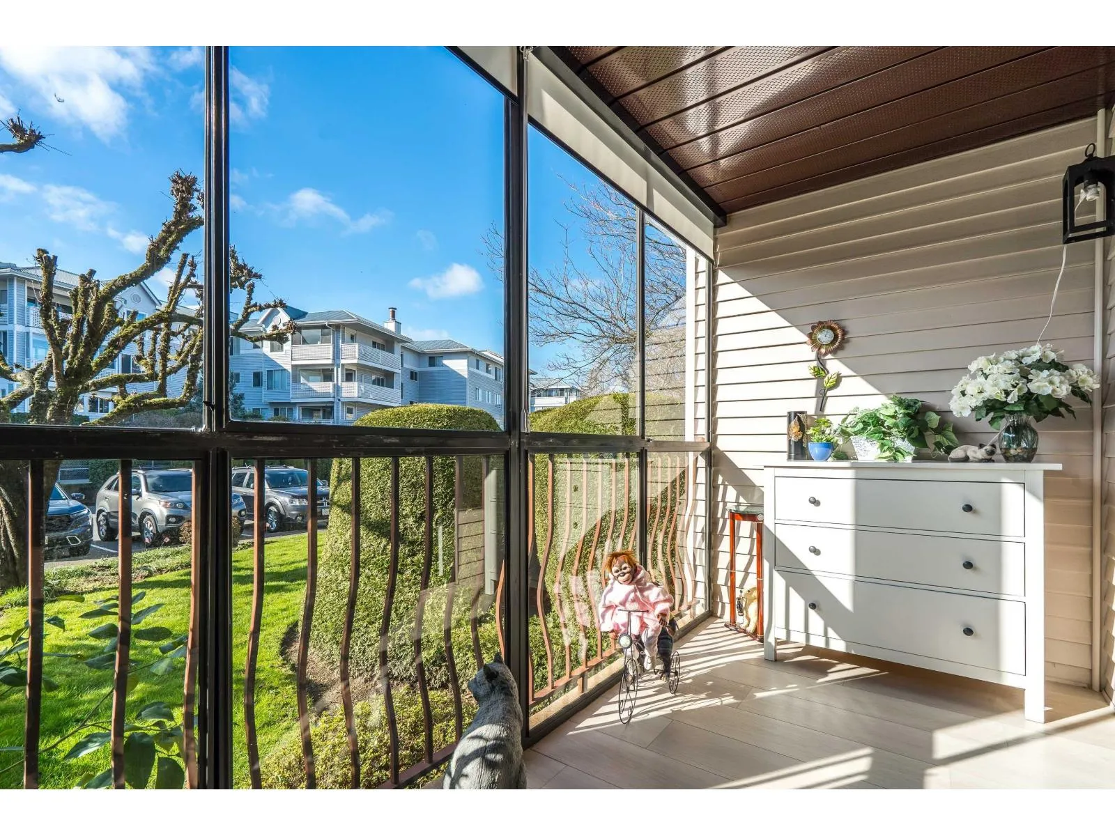 ADORABLE LIKE NEW ONE OF A KIND CONDO!! This Beauty has been extensively renovated...New Beautiful Laminate flooring thru-out, Spacious kitchen with S/S Appliances, Quartz countertops & Tile Backsplash, Bathroom with W/I shower, Light fixtures all updated & freshly painted in Modern Colors. Amazing Stone-Tile surround F/P is the focal point of the Living Room! 1 Bdrm & Den. Lovely enclosed Solarium streams in loads of Sunshine & great for year around enjoyment! Fantastic & Convenient location...walk to Seven Oaks Mall, Mill Lake & Fabulous Restaurants. (id:27476)