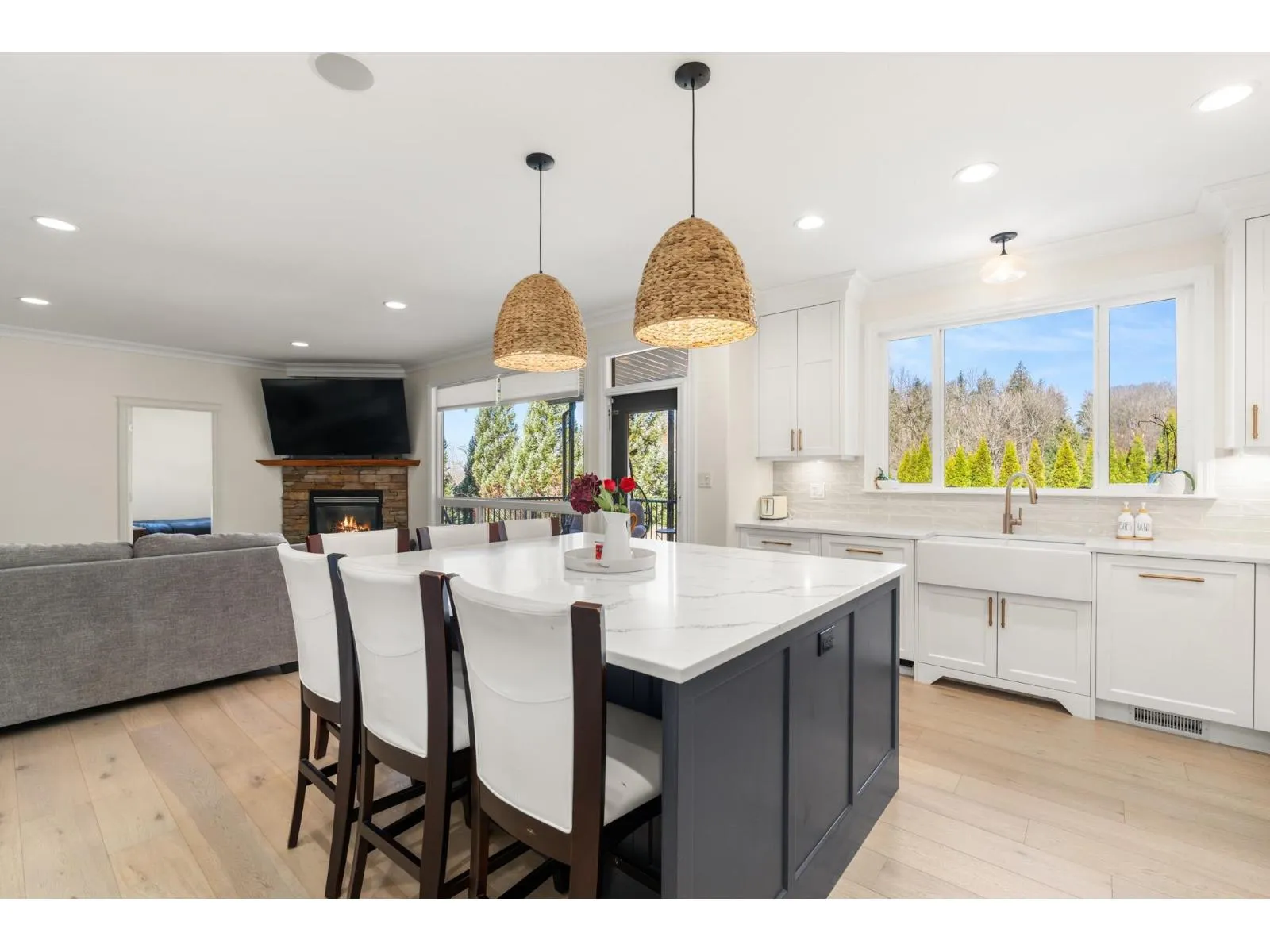 Welcome to 36395 Westminster Drive. Situated next to greenbelt, this beautifully updated 4,006 sqft home offers 6 beds, 5 baths and unparalleled privacy + peaceful views. Inside, this home features newer oak flooring on the main, A/C, new furnace, a bright living/dining area, and a den-perfect for an office or playroom. The designer kitchen offers modern cabinetry, high-end appliances with gas range, quartz counters, and a large island for entertaining. Upstairs, unwind in the primary retreat with 5-piece ensuite incl. soaker tub + 3 additional spacious bedrooms. Downstairs includes a rec room, workshop + 2 bed legal suite. Enjoy the large deck off the main floor & generous sized private yard surrounded by nature. Just minutes to Ledgeview Golf Course, trails, shops and easy HWY 1 access. (id:27476)