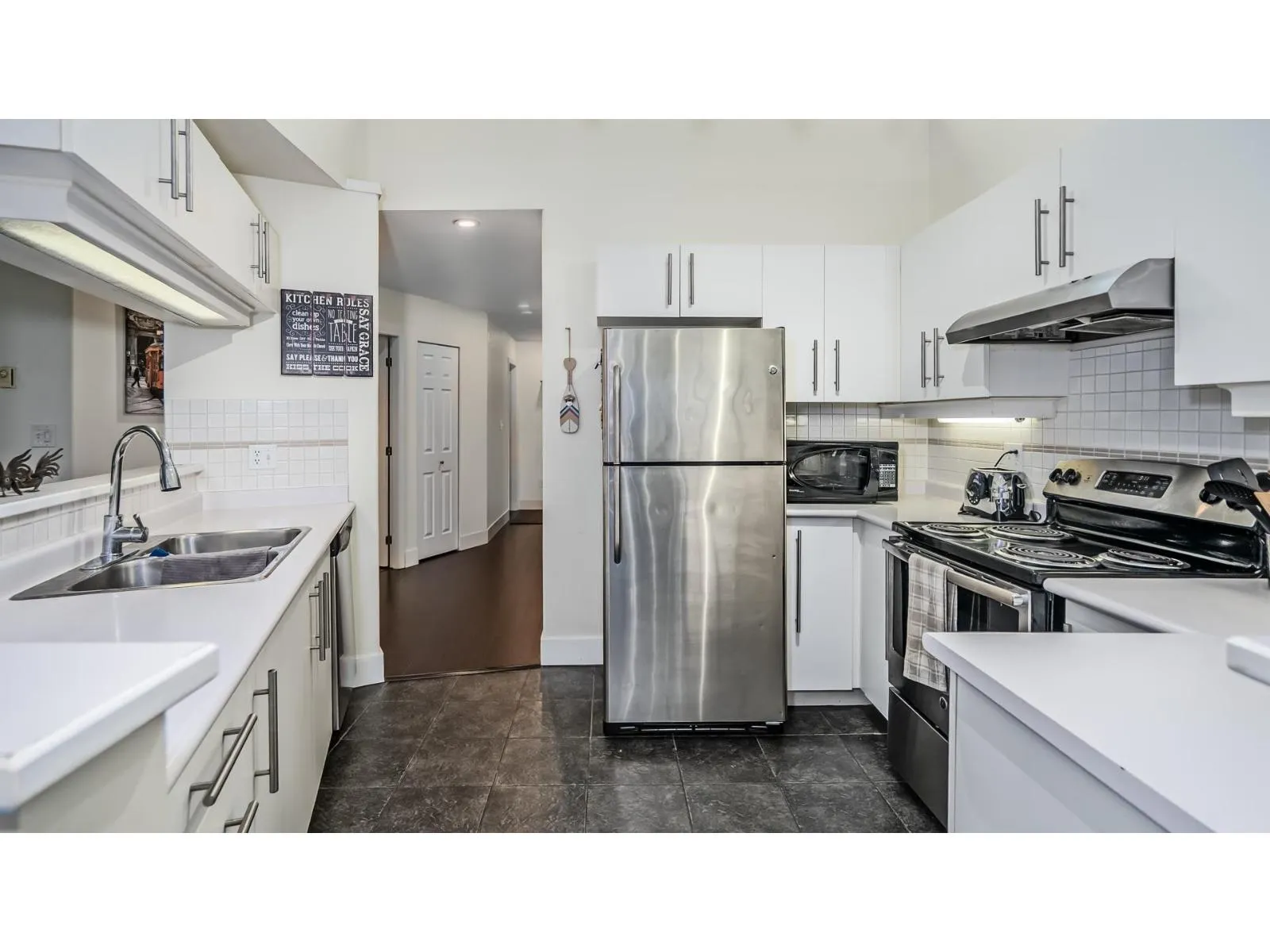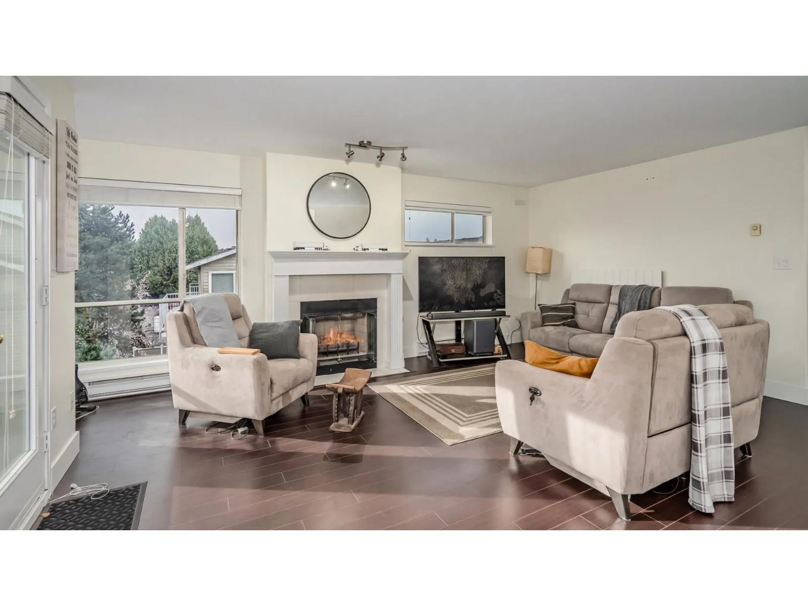Welcome to Monique Place, a boutique hidden gem in the heart of Central Abbotsford. This rare, top-floor corner penthouse offers over 1,200 sq. ft. of bright, airy living space defined by soaring vaulted ceilings and expansive windows. The unique building design features only 12 units with private exterior entrances, providing a house-like feel with the security of a condo. Inside, enjoy a spacious 2-bedroom, 2-bathroom layout featuring a cozy gas fireplace, a large in-suite laundry room, and a private balcony. This unit also includes the rare bonus of two secure underground parking stalls and a storage locker. The location is unbeatable for convenience. You are steps McCallum Junction and a few minute drive from Mill Lake, Abbotsford Hospital, Seven Oaks Shopping Centre and Hwy #1. (id:27476)