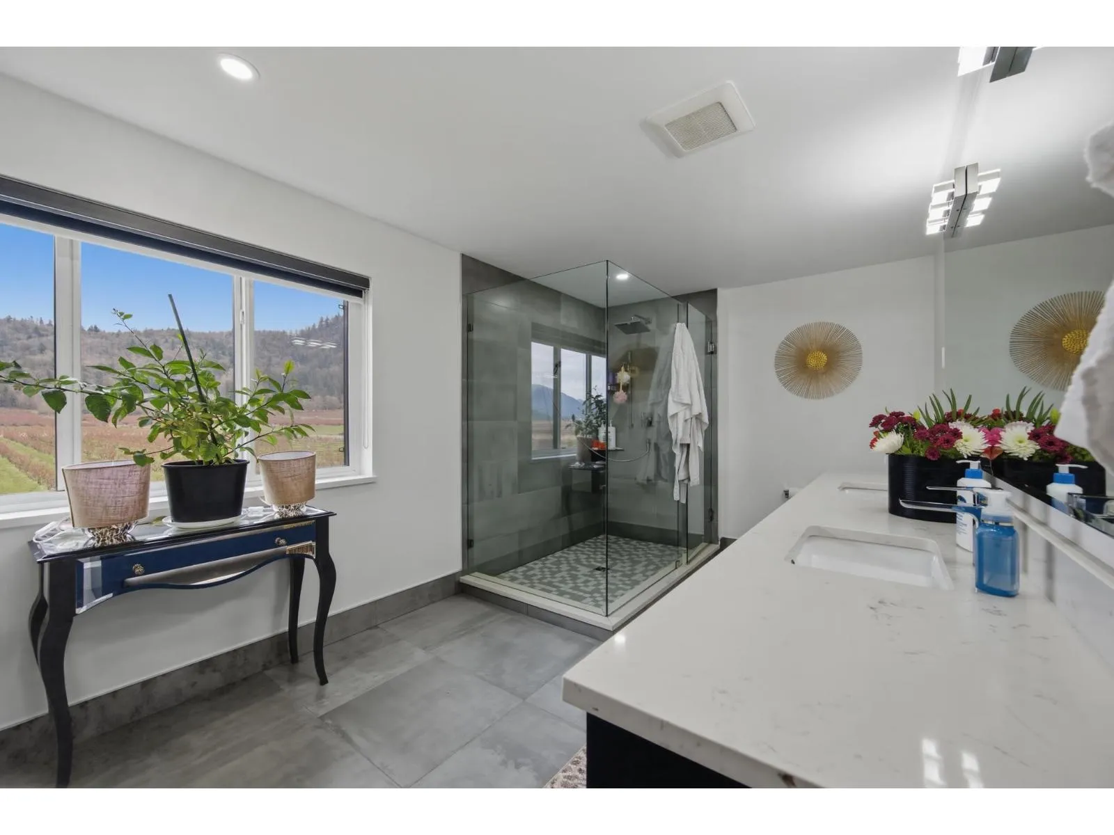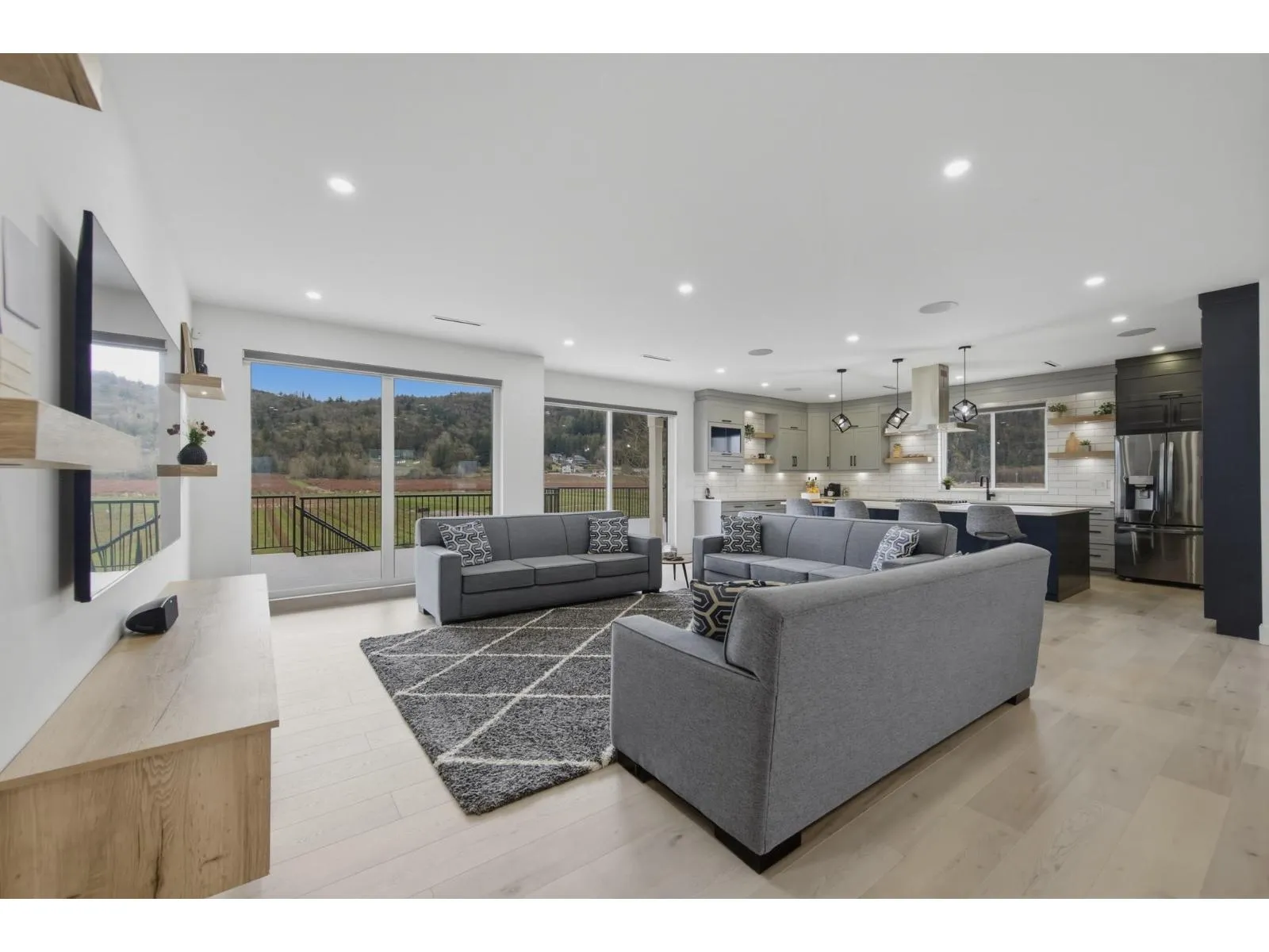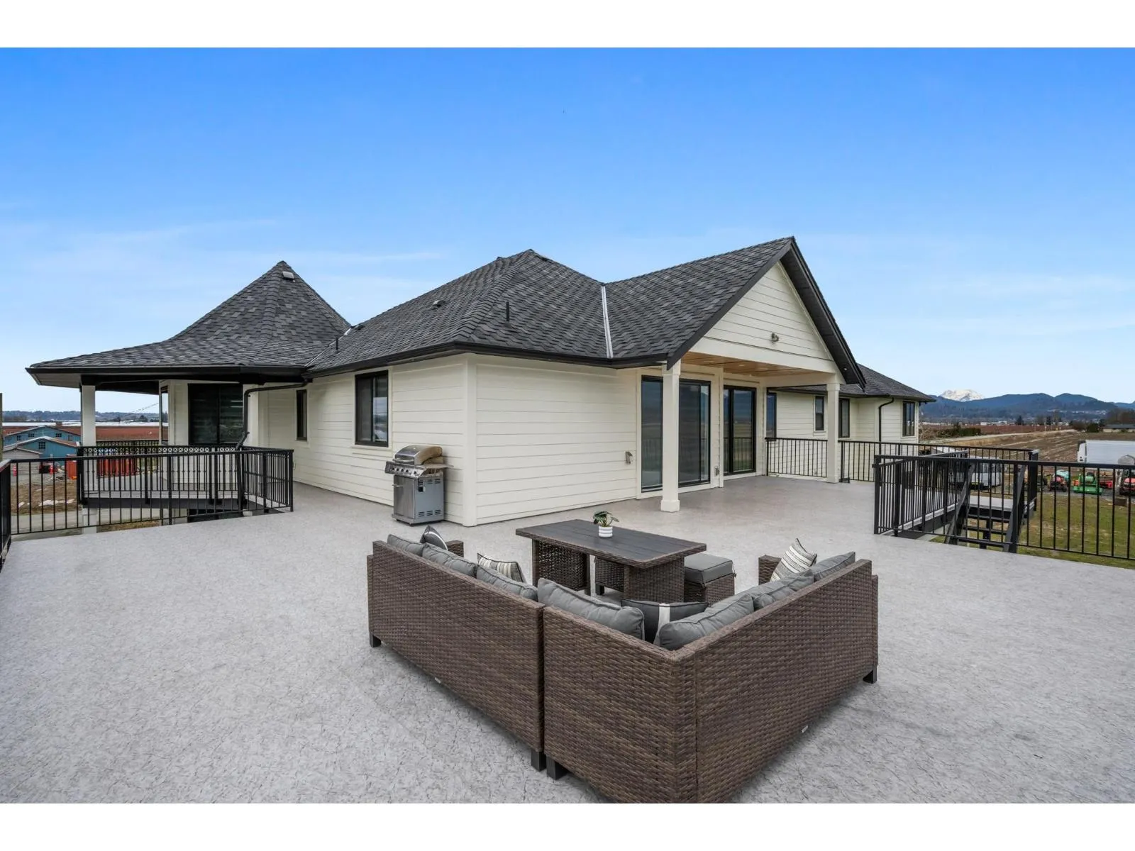 Welcome to 5390 Beharrell Road, a stunning 16.5-acre estate in Abbotsford featuring an approximately 6,500 sq.ft. luxury home. Extensively renovated, it offers 9 bedrooms and 8 bathrooms, including 5 main-floor bedrooms each with its own ensuite and a grand primary suite with breathtaking mountain views. Enjoy a bright open-concept kitchen with full spice kitchen, large living and family rooms, plus a luxurious theatre room, spacious recreation area, and stylish bar. A separate 2-bedroom suite provides excellent rental or multigenerational living options. The farm includes 12 acres of Duke and 2.25 acres of Calypso blueberries with outstanding crop production, delivering strong yields and impressive income potential. (id:27476)