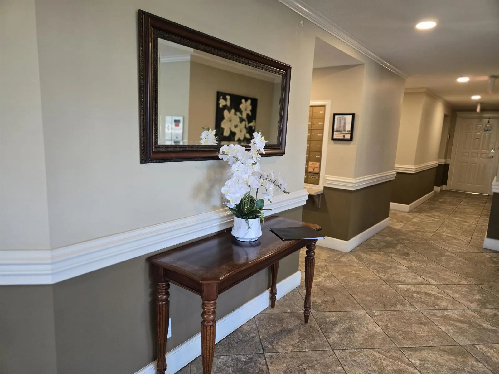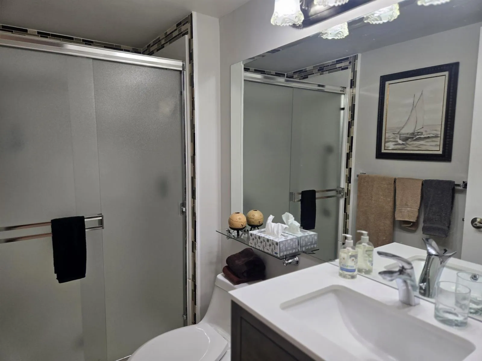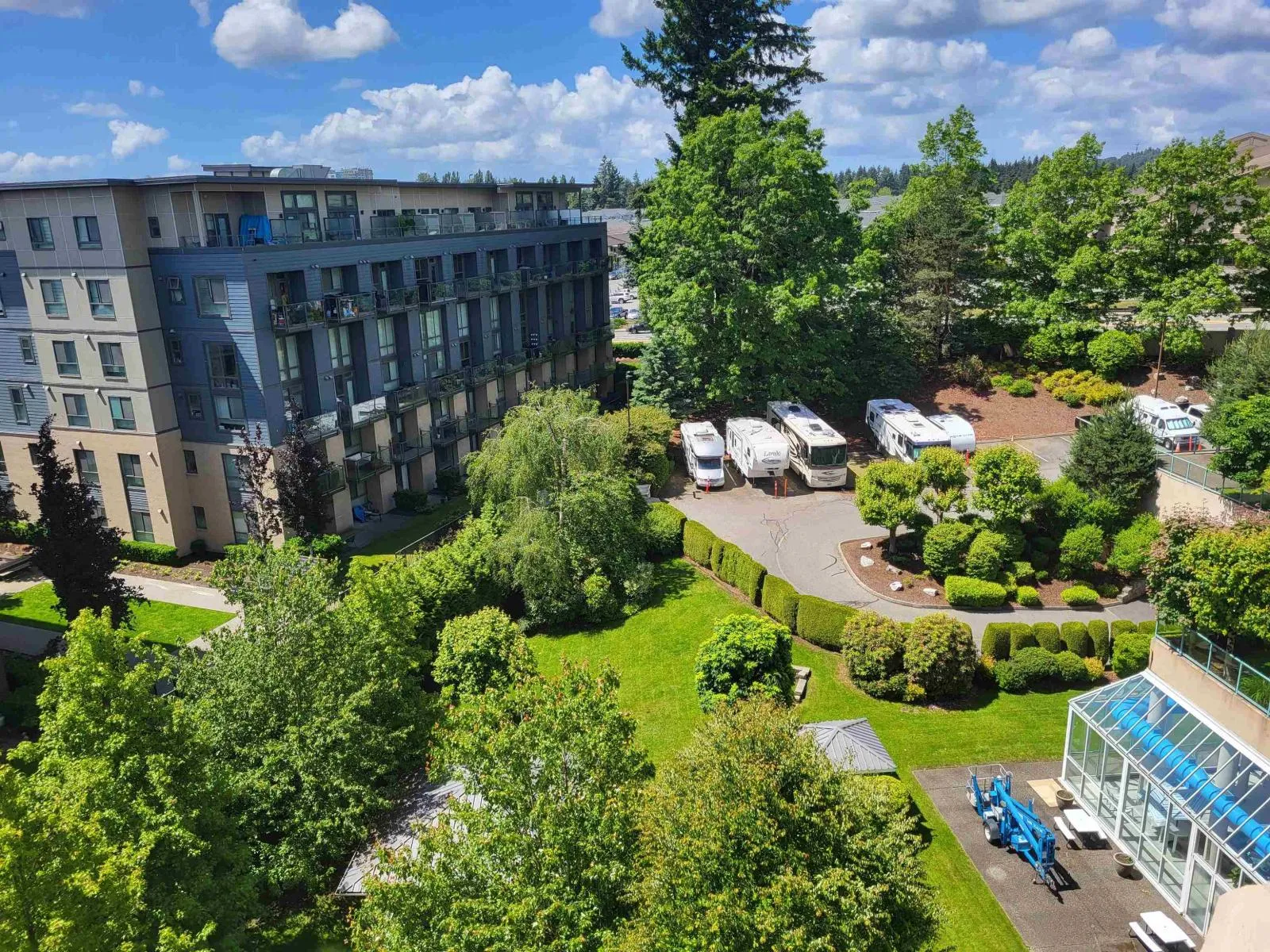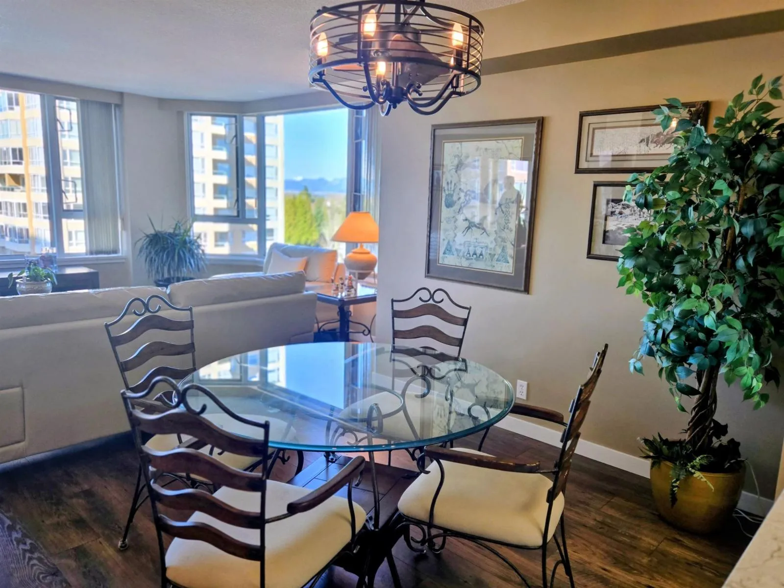 Welcome to Regency Park Towers, a secure hi rise concrete building with luxury resort amenities surrounded by manicured gardens. Great floor plan with stunning mountain views from east to west. meticulously renovated 1162 sq foot 2 bedroom 2 bath condo plus den/solarium. Updates include laminate plank flooring, new Kitchen, S/S appliances, center island with quartz counters. Spacious primary bedroom offers a walk-in closet and 4pc bath. Bright open living area overlooks the treed park area. Amenities include 3 guest suites, an indoor pool, whirlpool, steam room, 2 exercise areas, workshop and a social and library area. This is a secure adult building with RV parking located in central Abbotsford. (id:27476)