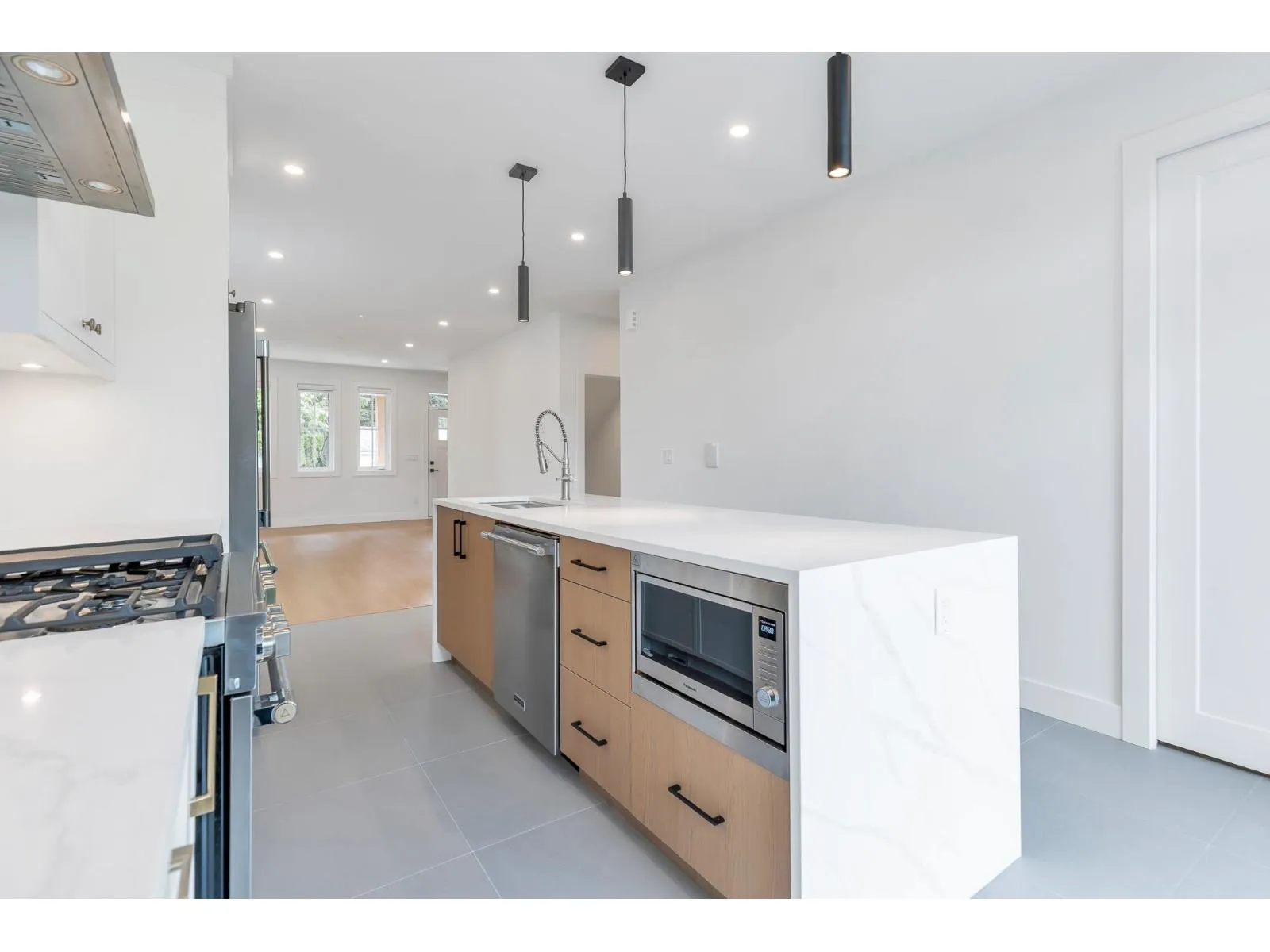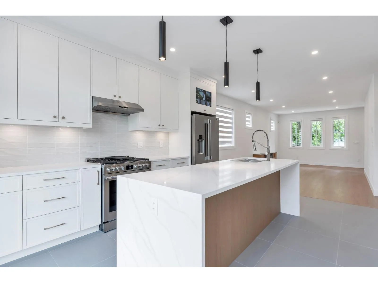 Brand new luxury home in prime Central Abbotsford location! This 2,513 sq ft residence offers a sleek main floor open-concept layout with a waterfall kitchen island, high-end appliances, premium cabinetry and custom designer lighting. Upstairs includes 3 spacious bedrooms including huge master bedroom with with spa-inspired ensuite. Fully finished basement boasts large rec/media room plus a legal 1-bed suite with separate entry. Enjoy engineered hardwood, quartz counter tops, plush wool carpeting, security system, fenced yard, and modern finishes throughout, private backyard and massive wrap around deck. Walking distance to Alexander elementary, parks, shops, and transit. Just minutes to the ARC rec center, Hwy 1, and downtown amenities. A rare find-move-in ready (id:27476)