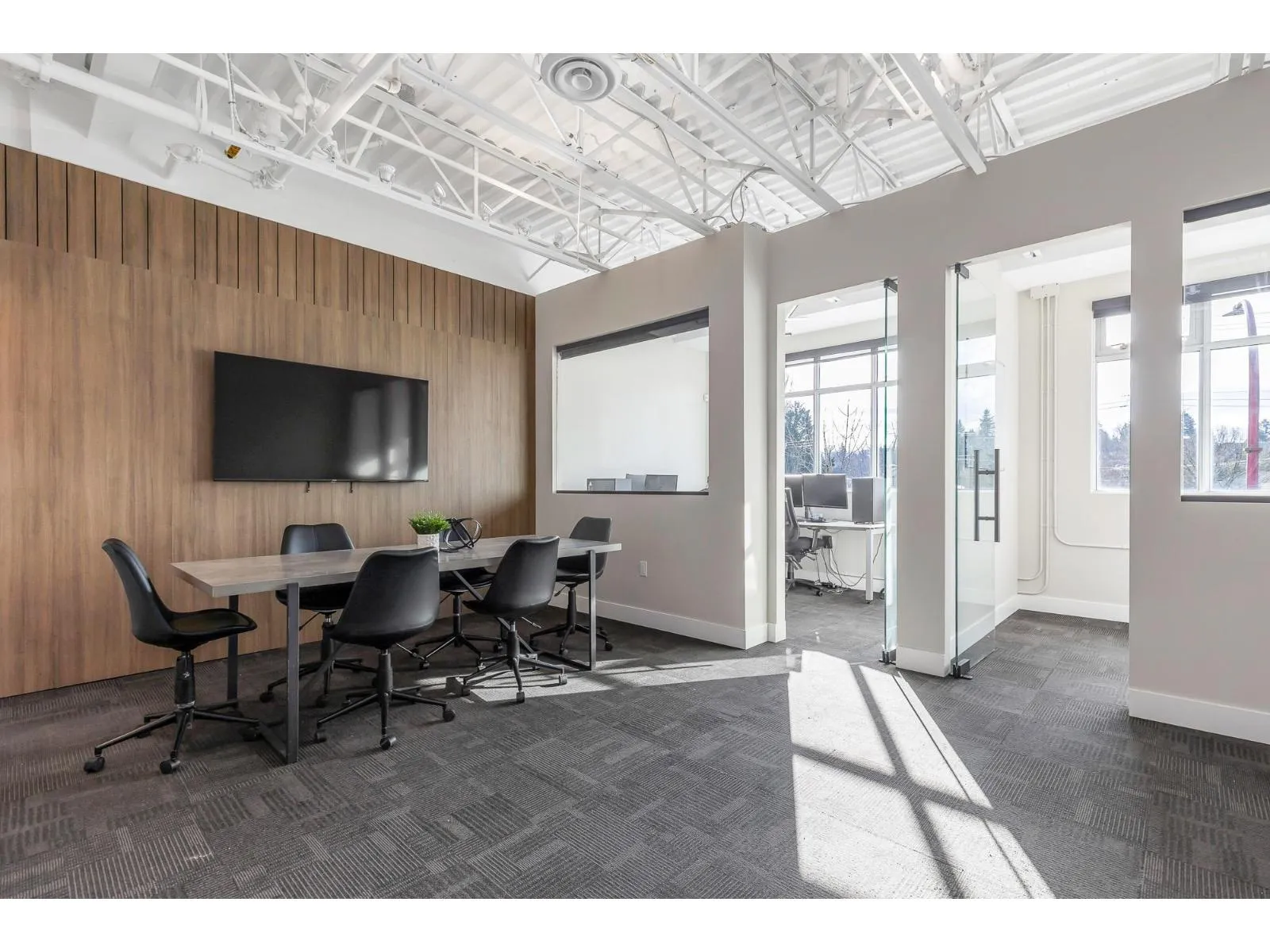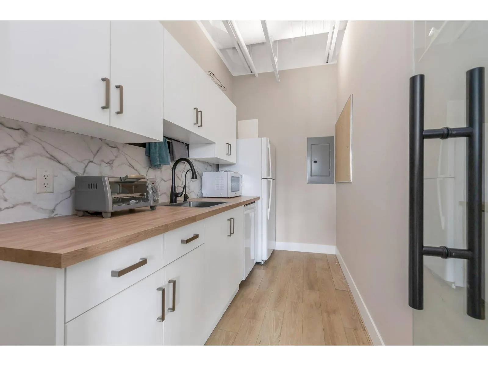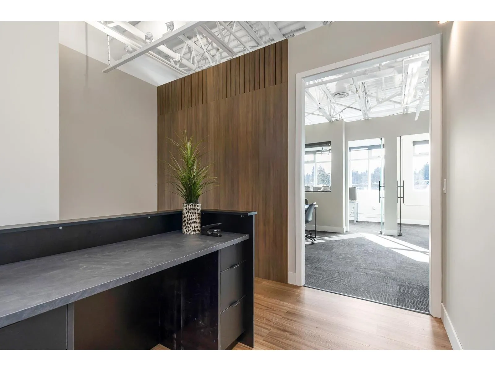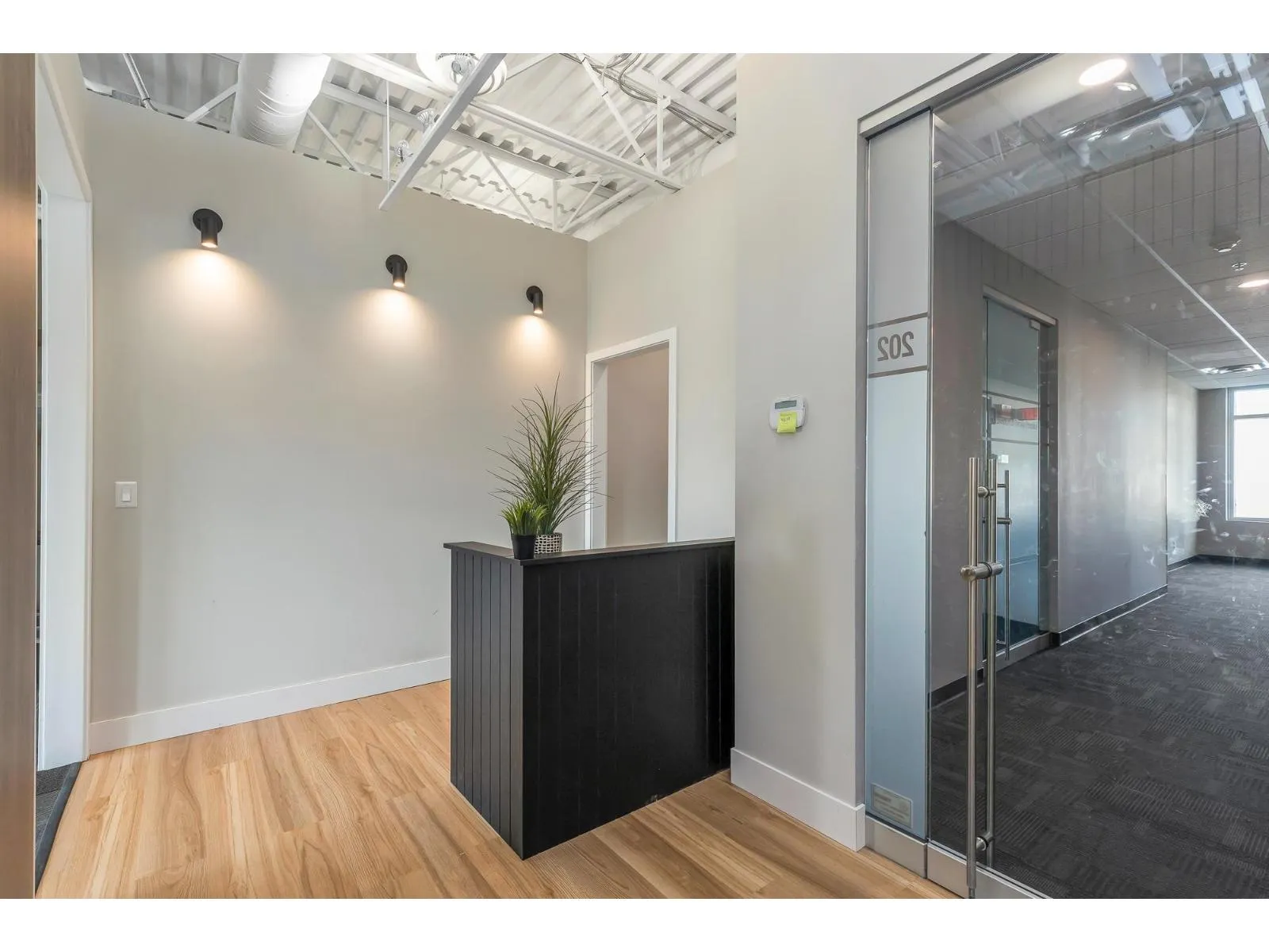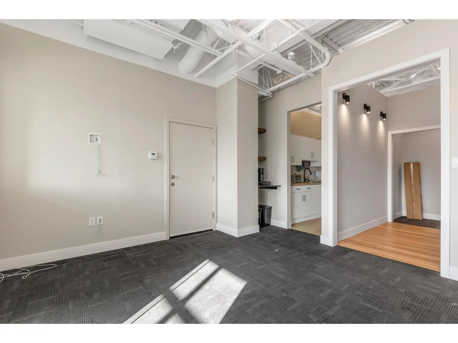 Welcome to this beautiful - recently renovated - office on the 2nd floor of Pioneer Square! Located in Downtown Abbotsford, this well laid out office space features a cozy reception area with built in office desk that leads into a larger bull pen or meeting area in the center of the unit. One full size individual office and one smaller room that could be used for storage or as an equipment/printing room sit in front of the open concept space that let in a ton of natural light from the large windows. There is a galley kitchenette that was well thought out and includes a full size fridge, dishwasher and sink plus a coffee nook to help keep your clients and staff caffeinated all day! You can feel safe day and night while working in this building with secure underground parking, fob access and an elevator that requires a code to set in motion. Ample customer & street parking along with a spot on the Pylon sign for your business makes this space a great choice!! Sublease Expires March 2030. (id:27476)
