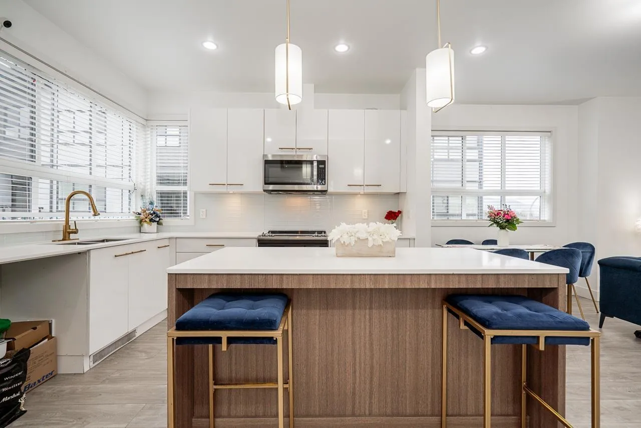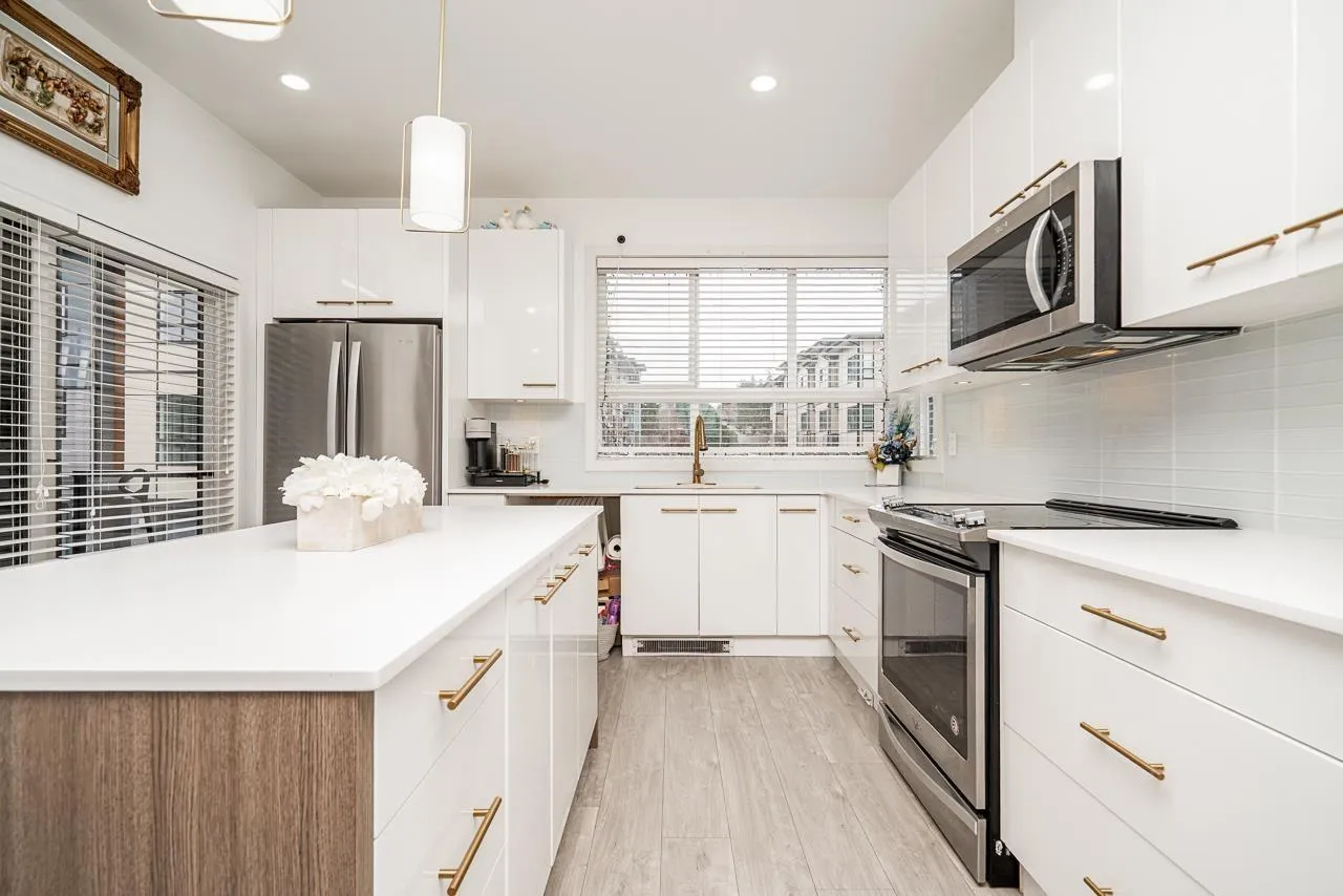 Beautiful 3-bedroom + den end-unit townhome offering rare, unobstructed green space views from the living room. The bright, open-concept main floor is thoughtfully designed with quality finishes and oversized energy-efficient Low-E windows that flood the home with natural light. The spacious primary bedroom features a walk-in closet and a private ensuite. This home includes three bathrooms, a double car garage, and a covered deck off the kitchen-perfect for year-round enjoyment. The versatile den is ideal for a home office or flex space. Located in a quiet, family-friendly community just steps to Parallel Marketplace, parks, and transit. OPEN HOUSE SATURDAY 1-3PM (id:27476)