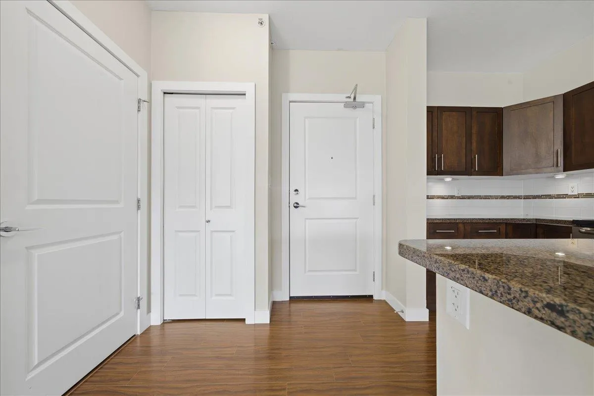 Welcome to The Gallantree, where modern comfort meets unbeatable convenience! This bright and spacious 1-bedroom, 1-bathroom condo offers 740 sqft of thoughtfully designed living space. Situated on the quiet side of the building, the unit boasts a functional open layout with 9' ft ceilings, sleek laminate flooring, NEW carpet, S/S appliances, granite counter tops, centre island, large walk-in closet & spacious laundry with extra storage. Enjoy the outdoors on your covered patio, perfect for relaxing or entertaining. This family friendly building allows rentals & pets. Includes 2 Parking Stalls & HUGE Storage! Conveniently located just minutes from historic Downtown Abbotsford, this west-facing unit offers easy access to major routes, an array of shops, dining & entertainment. Ready to Move In! OPEN HOUSE: March 14 (2-4pm). (id:27476)
