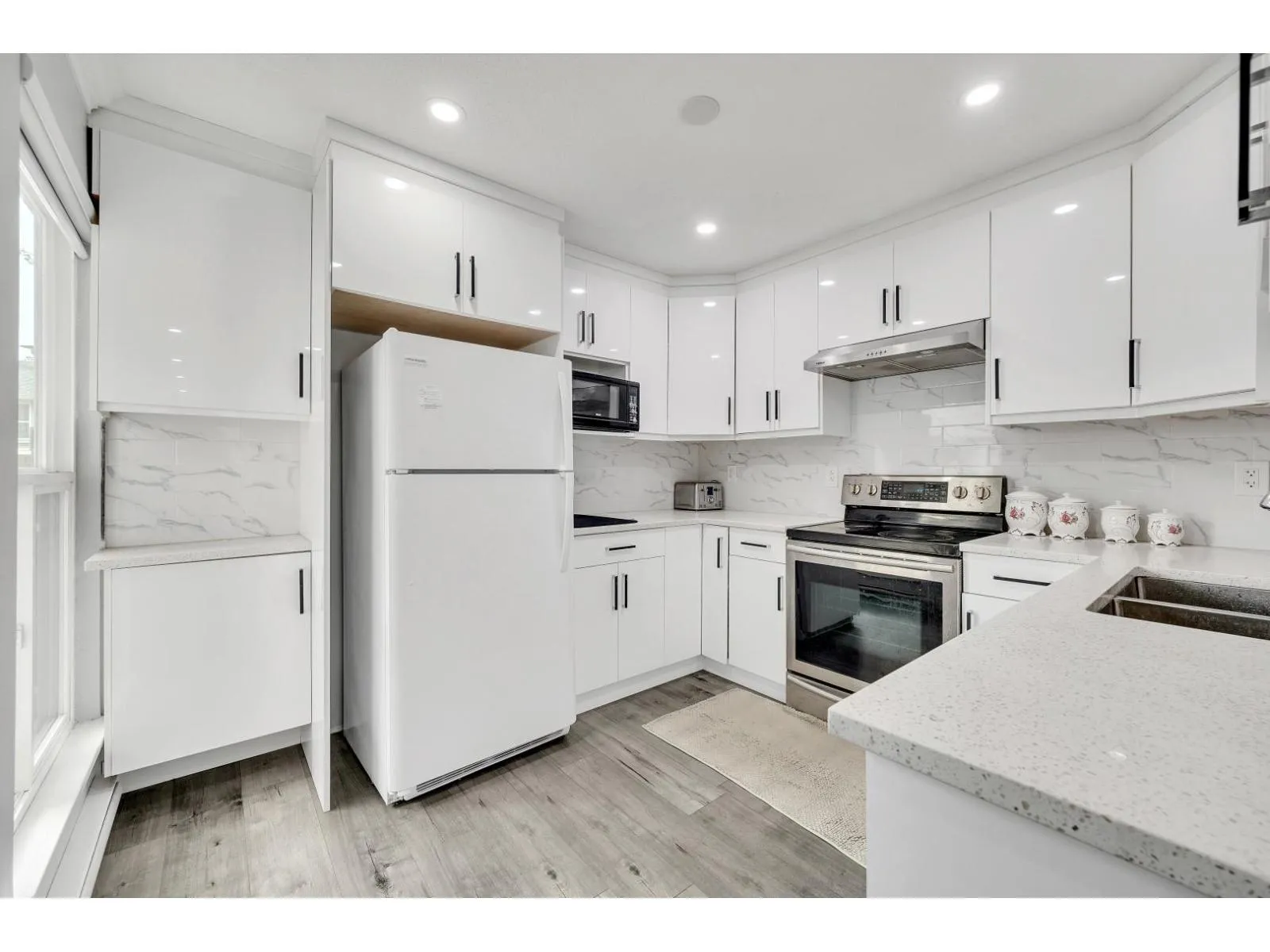 A standout unit in the complex! This fully renovated 3-bedrooms, 1.5-bath townhouse was tastefully updated in 2021 with sleek acrylic cabinets and quartz countertops throughout the kitchen, and bathrooms, the unit also features a private backyard and plenty of visitor parking within the complex. Ideally situated within walking distance to schools, shopping and Rotary Stadium (id:27476)