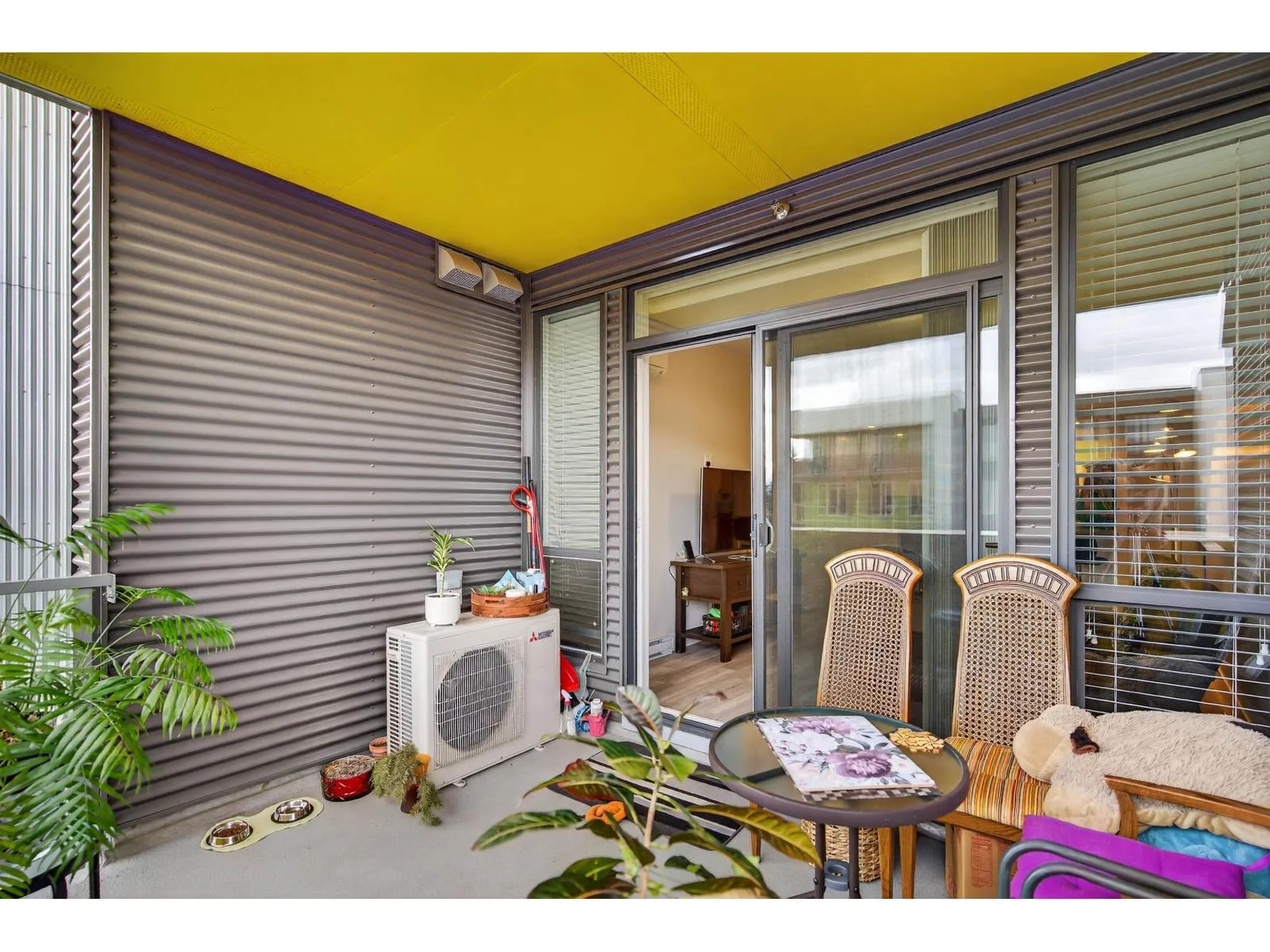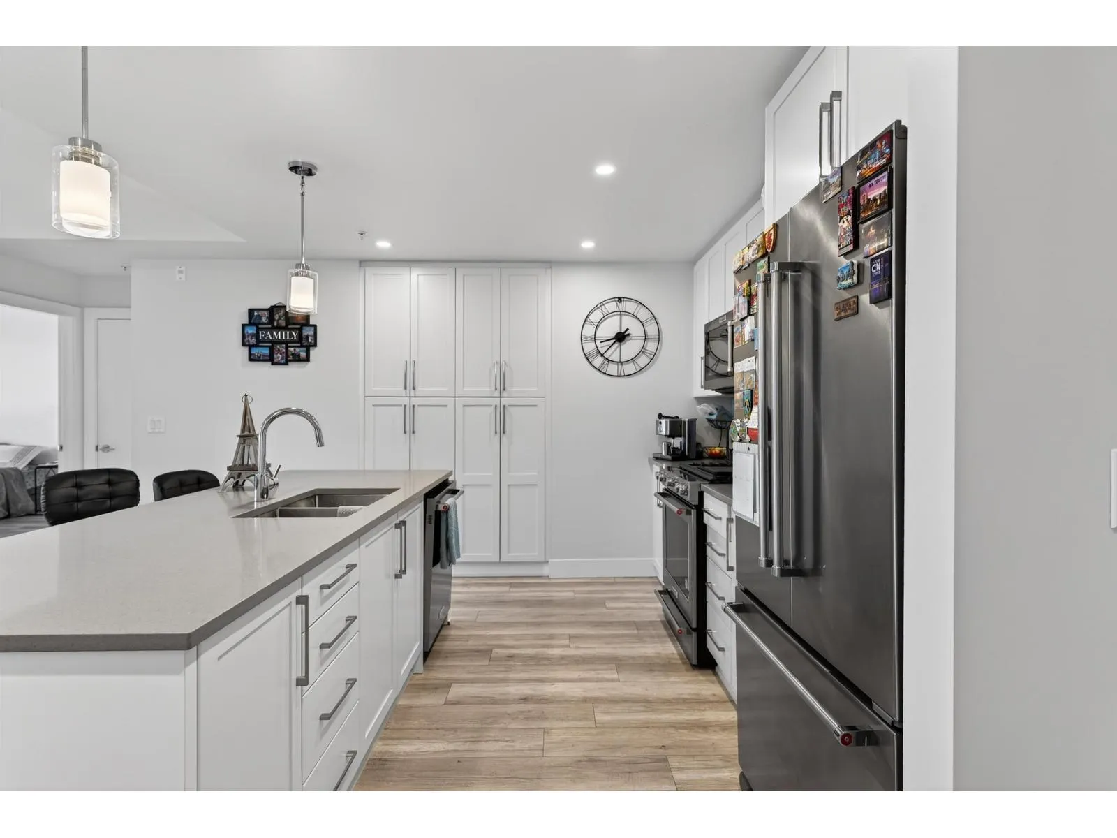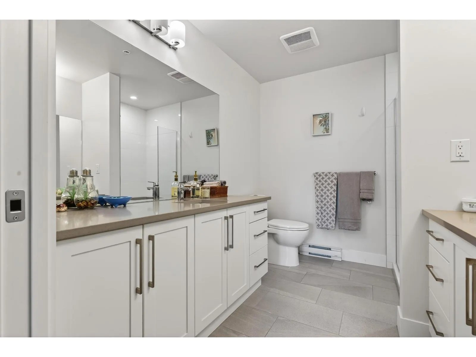 Welcome to Mill District! This 2-bedroom, 2-bathroom home offers a bright and spacious layout with 9-foot ceilings and thoughtful upgrades throughout. The modern kitchen features granite countertops, full-size appliances, a gas cooktop, and a generous pantry. Comfort is ensured year-round with air conditioning and updated laminate flooring. Both bedrooms have walk-in closets and their own ensuite bathrooms. Enjoy outdoor living on the 113 sq ft patio, complete with a gas hookup for your BBQ with gas included in strata. The home also comes with two parking stalls and one underground storage locker. Located just steps from Mill Lake Park, and close to excellent shopping and dining, this home offers the perfect blend of comfort, convenience, and lifestyle. (id:27476)