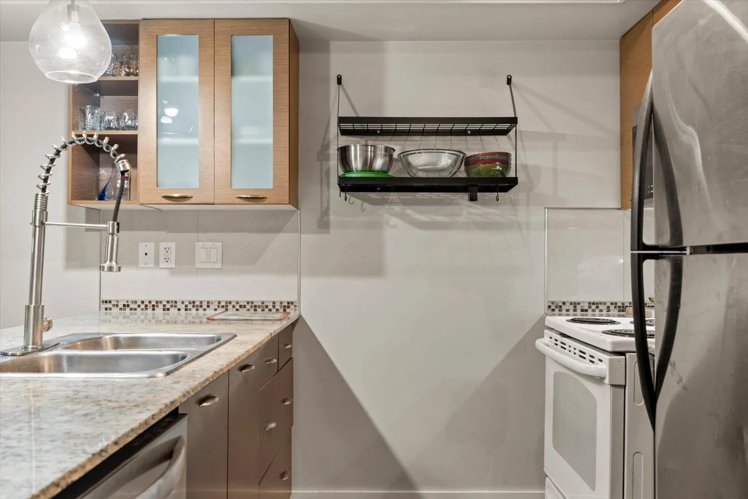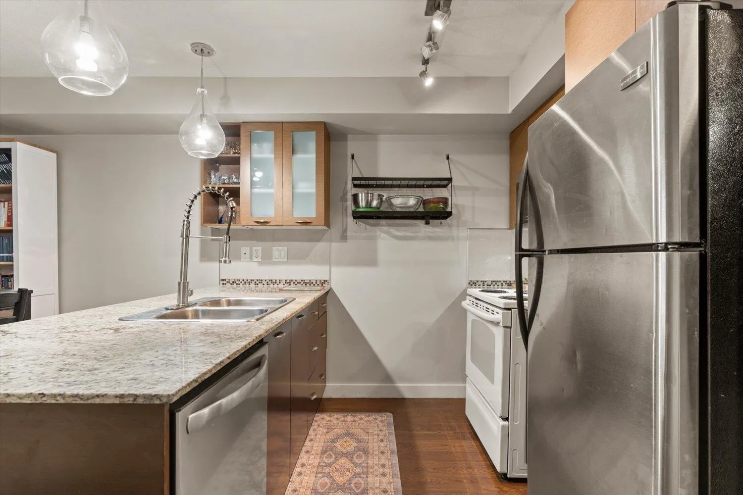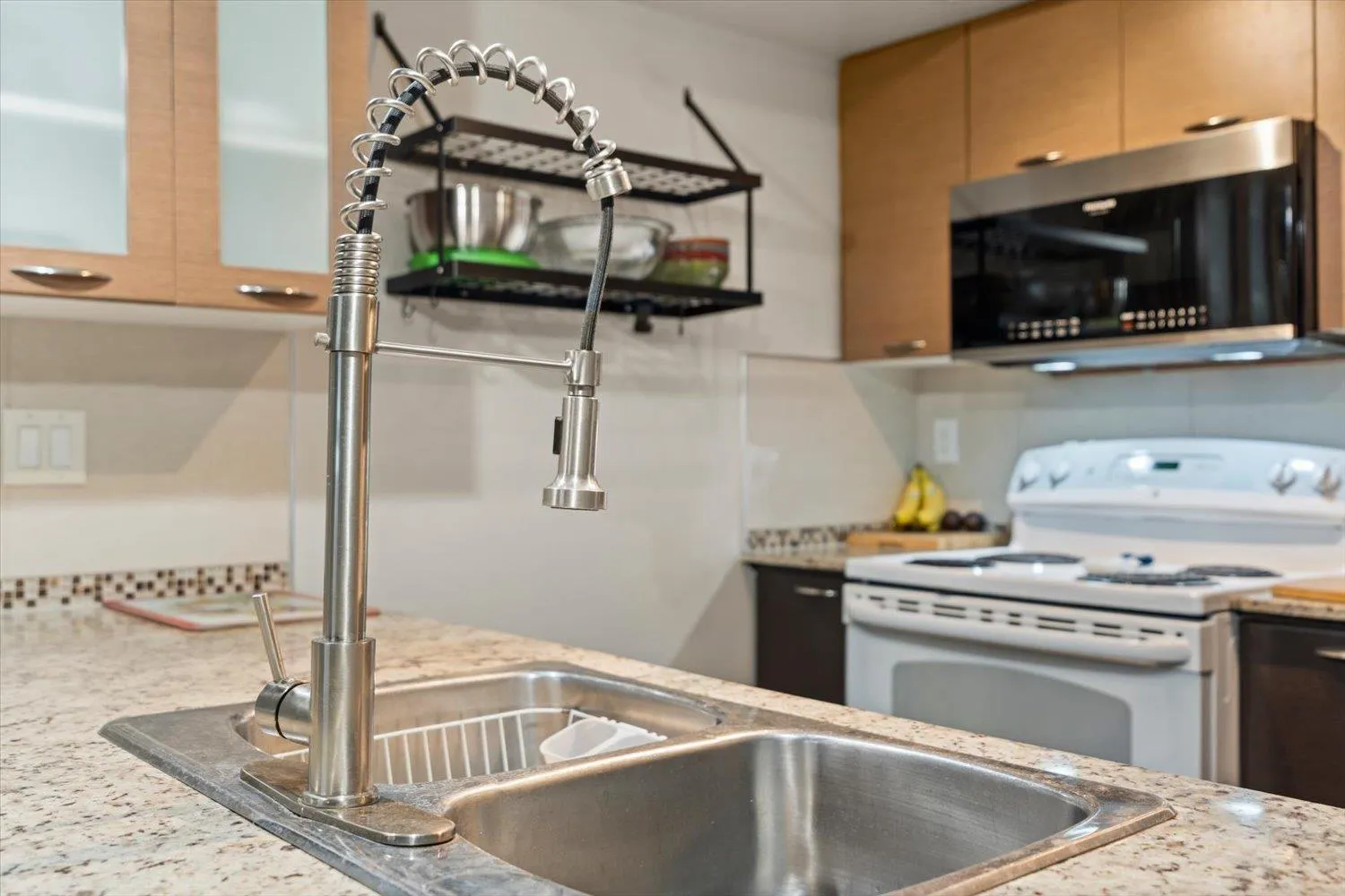 Welcome to the Latitude! Your new home is a large, corner, ground floor unit with south/east exposure. You'll love the open floor plan, 2 bedrooms, 2 bathrooms, large covered deck, granite counter tops, in-suite laundry, 2 parking stalls, a storage locker, and more! Building amenities include a clubhouse, billiards room, fitness room, and guest suite! Great location near shopping, recreation, hwy 1, UFV, Rogers Forum, and the hospital. Don't wait on this one! Great Home, Great Location, Great Price! (id:27476)