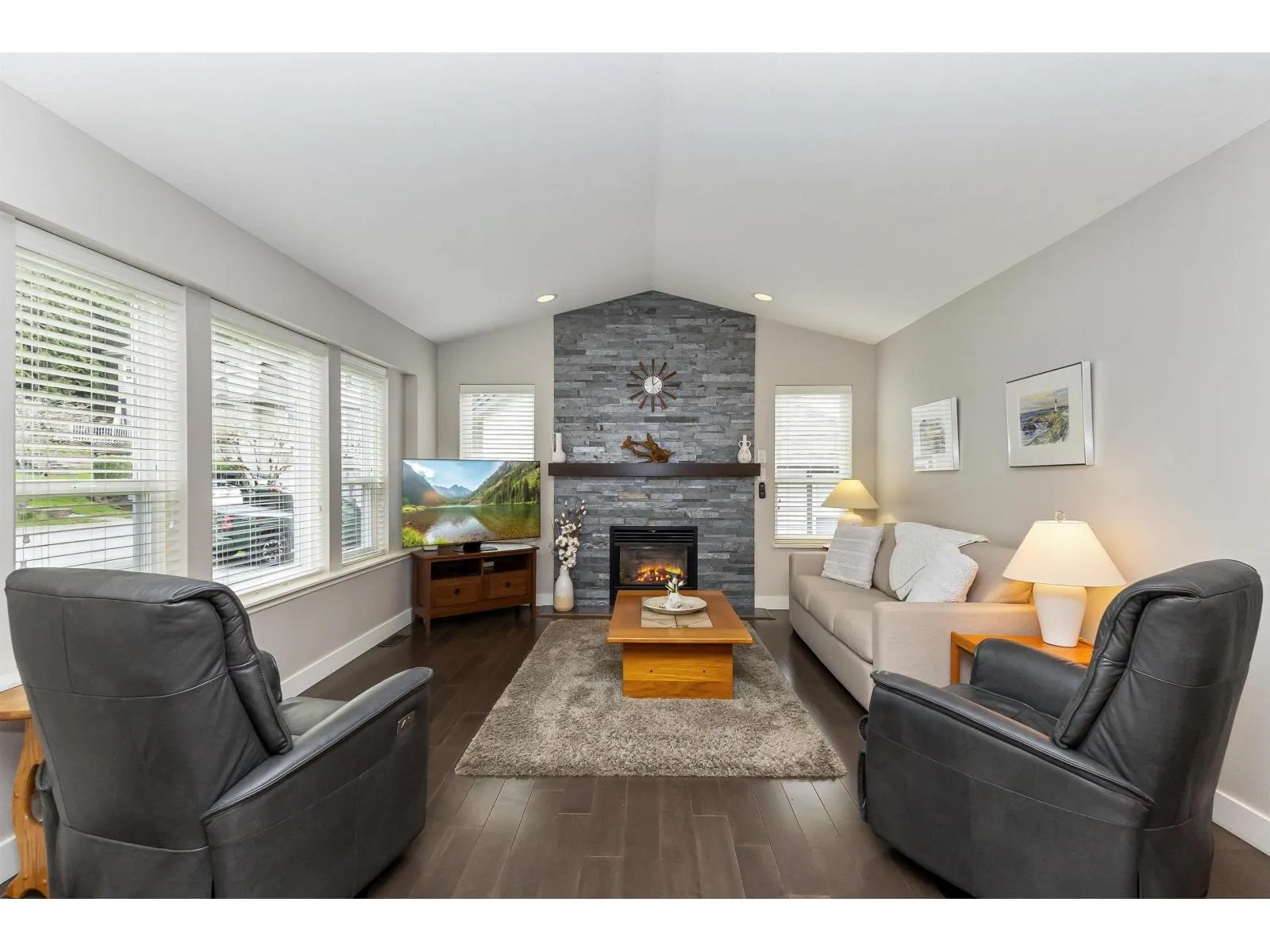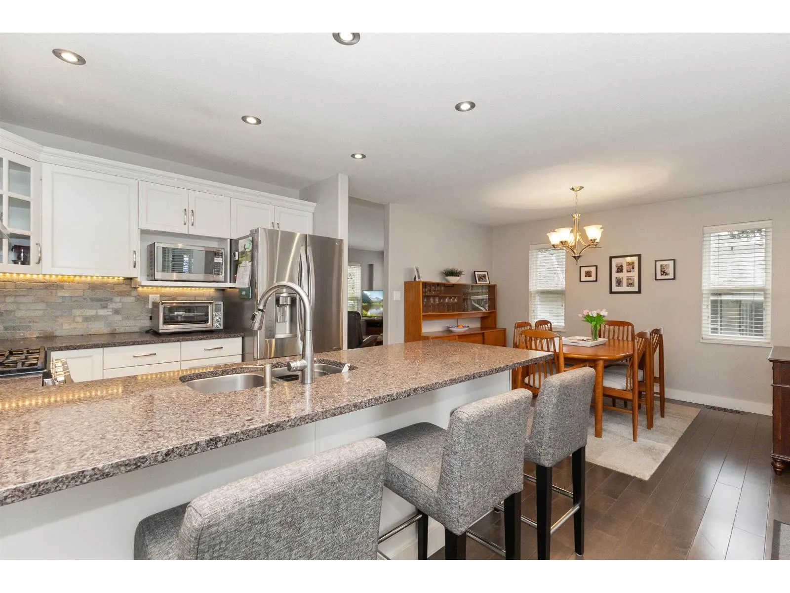 Excellent opportunity to own a spacious and well-maintained 3-bedroom townhouse in a family-friendly complex in Abbotsford, offering easy freeway access and close proximity to excellent schools, shopping, and public transit. This bright and spotless home features numerous updates and beautiful views of Mount Baker and the Fraser Valley. The main offers a sunny kitchen with a gas stove and access to a south-facing deck-perfect for relaxing or entertaining-complete with a gas BBQ hookup and patio skylight cover. The fully finished walk-out basement includes a well-designed media/recreation room that opens to a quiet, private yard. Additional features include central air and a spacious double garage. The complex offers a playground at the entrance and plenty of visitor parking 1dog or 1cat. (id:27476)