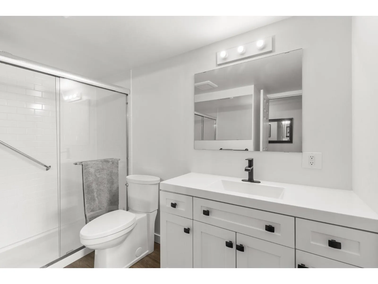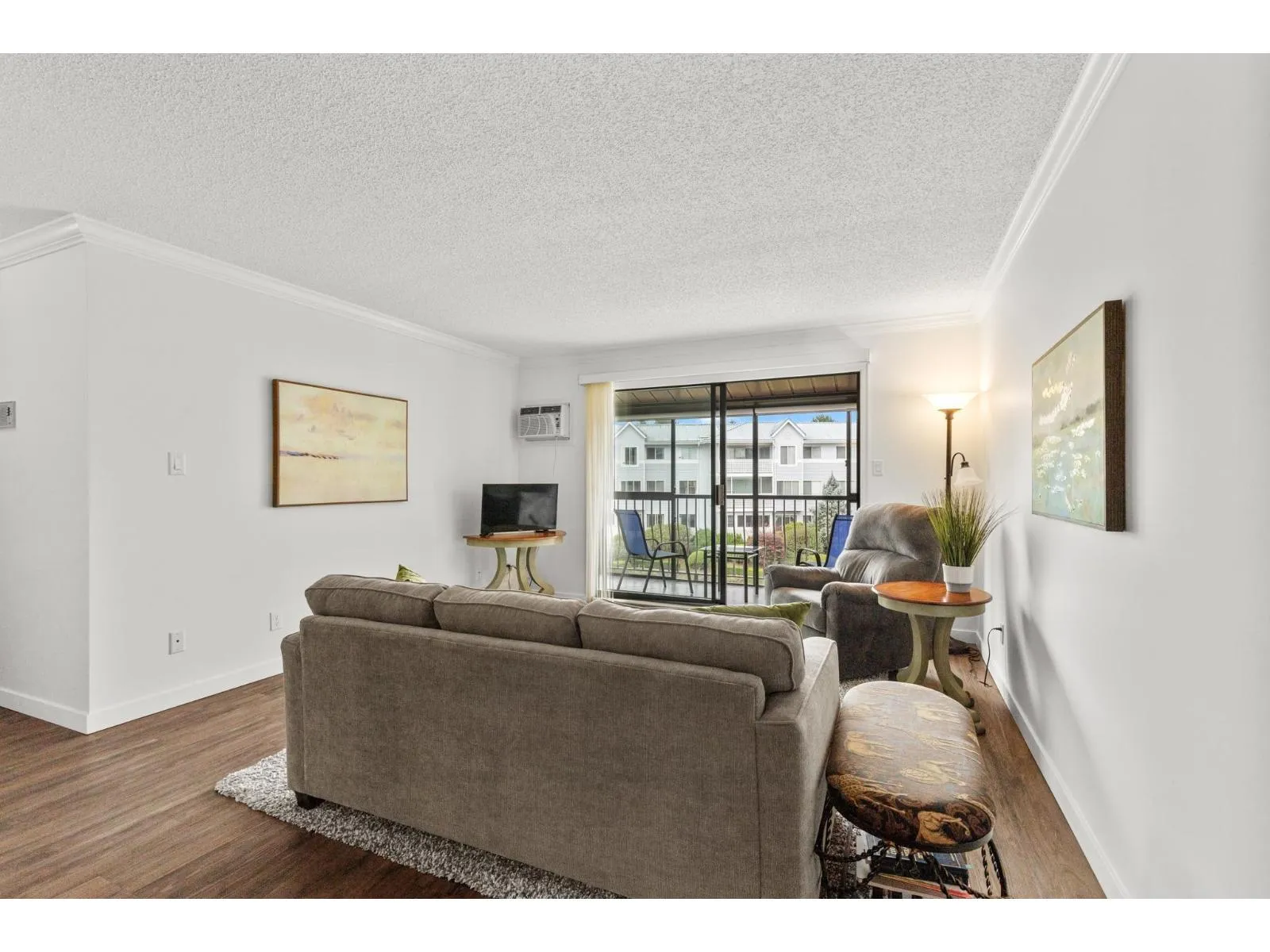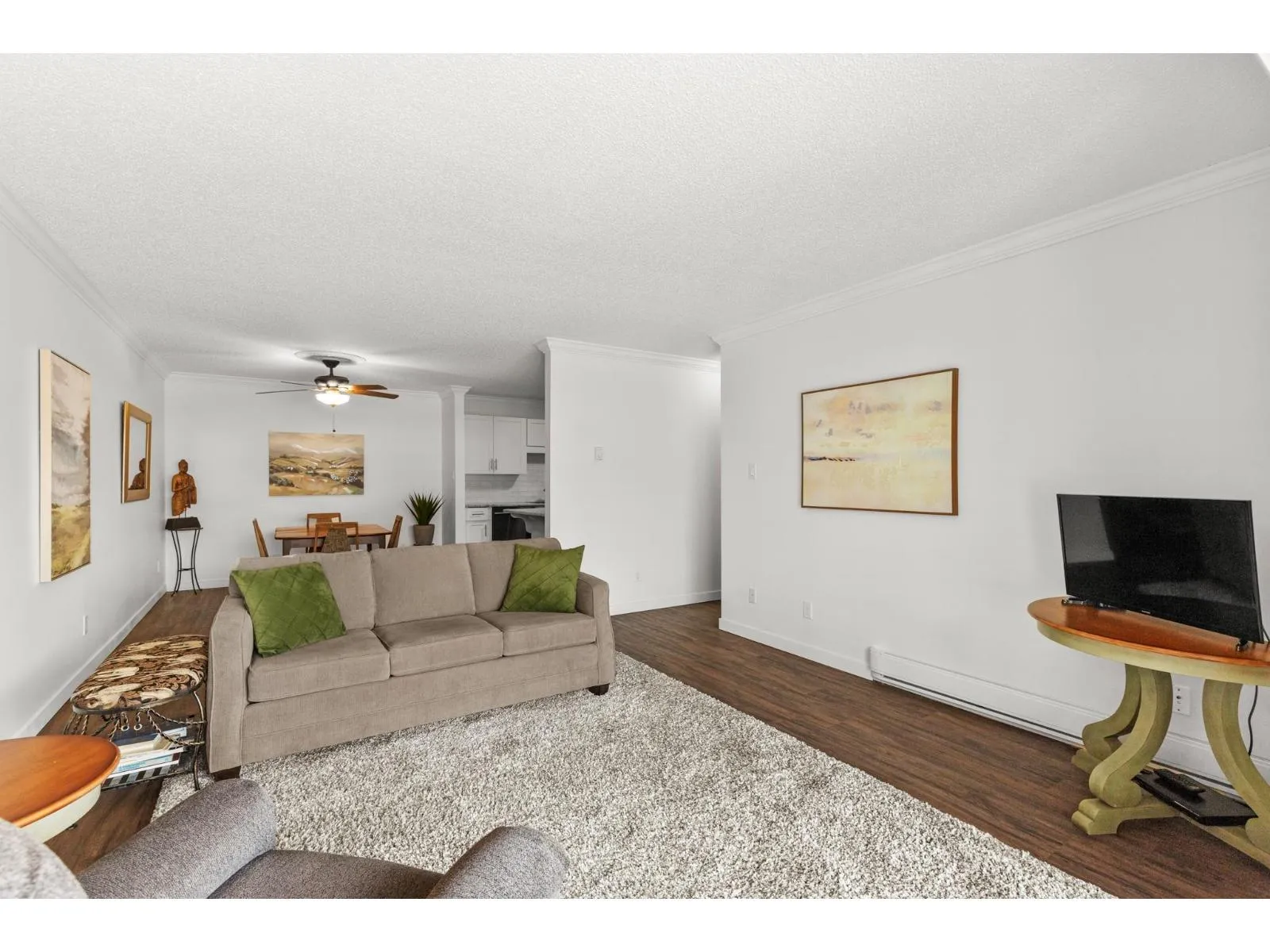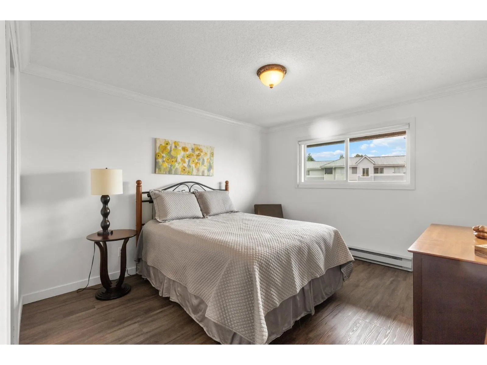 Welcome to a beautiful top floor condo in the heart of the city! Located at the end of a quiet cul de sac is this 2 bed home that has everything done for you such as vinyl plank floors, crown mouldings, white kitchen with black S/S appliances, subway tile splash & extra large peninsula, updated light fixtures, glassed in balcony w/ custom rolling blinds for year round enjoyment, convenient storage room off the balcony, generous laundry room w/ upper cabinets, spacious primary bedroom and recently renovated bath w/ huge tiled shower. New H/W heater. This home has even been freshly painted! There is also a storage locker only steps from the unit. Location here can't be beat. Park the car and walk to everything from shopping to dining, Mill Lake and more. Royal Oak is 55+, a well run strata. (id:27476)
