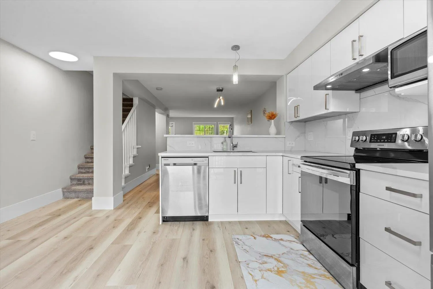 Welcome to The Sage at Auguston! A COMPLETLEY renovated 3 bed, 2 full bath townhome offering 1,219 sqft of move-in ready living with over $65,000 in upgrades. Brand-new kitchen, appliances, updated bathrooms, waterproof laminate flooring, new carpet, designer lighting, fresh paint, baseboards, and custom blinds everything is done. Enjoy a bright south-facing sundeck off the kitchen. Oversized tandem garage parks 2 or works as flex space or storage plus room for one more on the driveway. Street-level front entry with porch and fenced yard. Walk to Auguston Traditional Elementary, parks, and trails with quick access to Auguston Parkway. Quiet, family-friendly location with the lifestyle buyers are looking for. (id:27476)