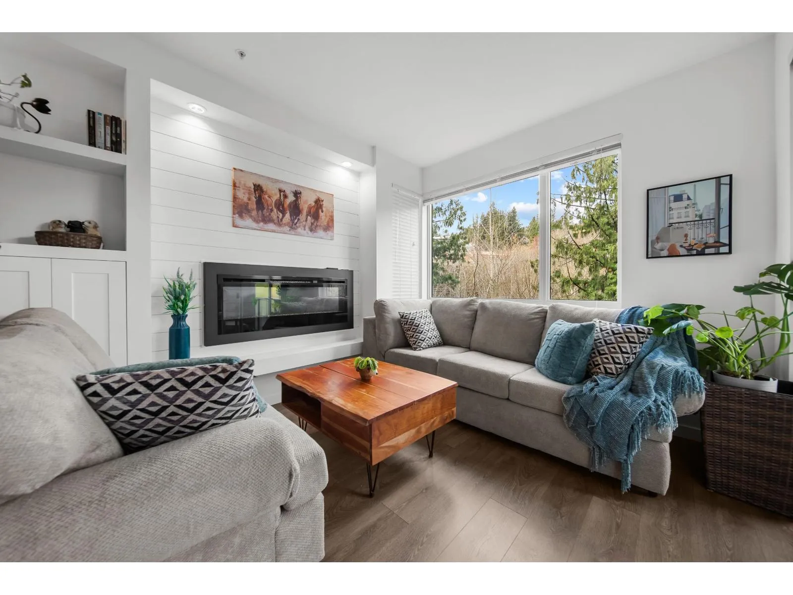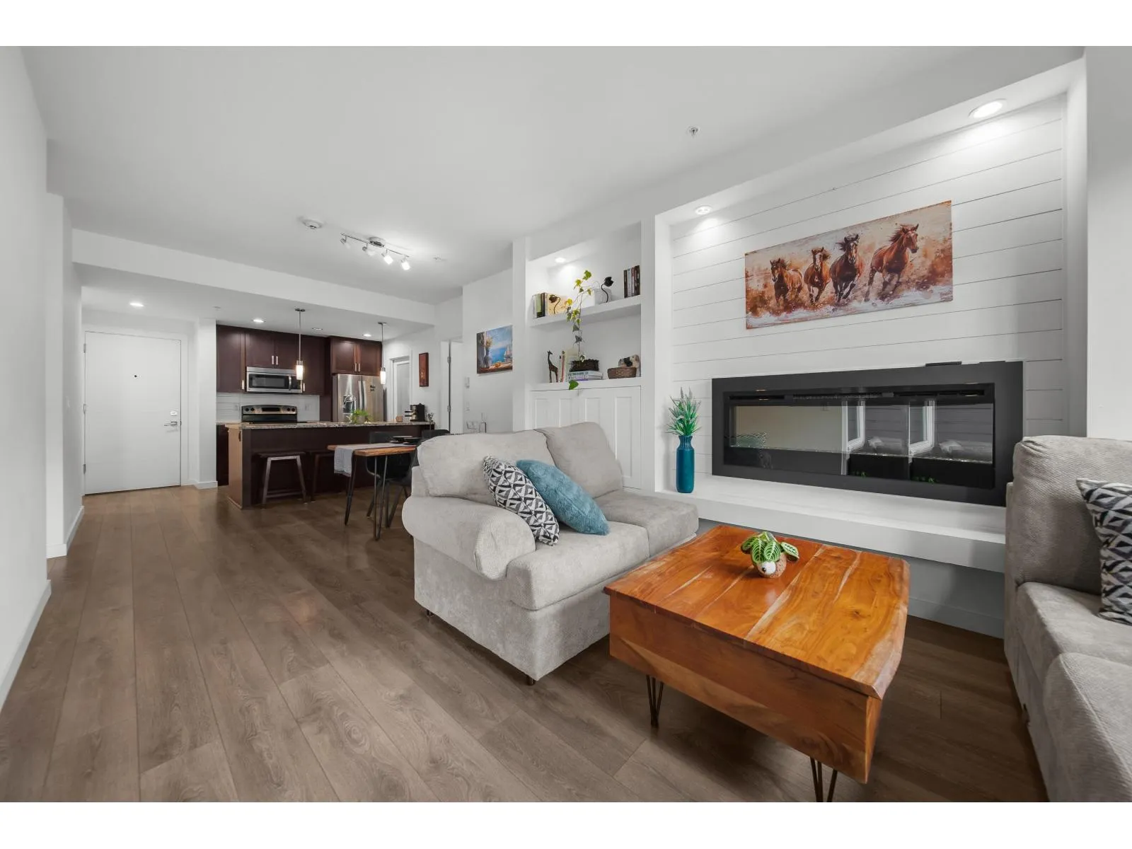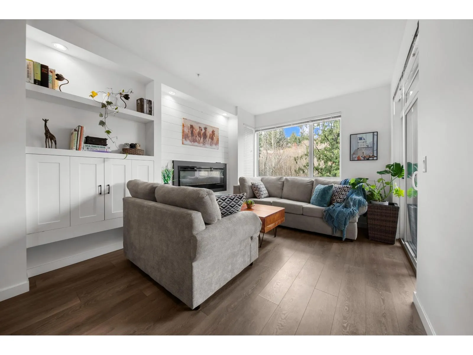 Modern living at its finest in East Abbotsford's most sought-after condo community. Welcome to Waterleaf-where style, comfort, and convenience come together effortlessly. Enjoy resort-style amenities including a heated outdoor pool, hot tub, full-size gym, and an amenities room with a pool table. This immaculate 2-bedroom, 2-bath forest-facing unit features newer paint, a shiplap-accented fireplace, custom living room cabinetry and shelving and a spacious pantry. Sit on the gorgeous patio and take in the beauty of the hillside forest. Located just seconds from Hwy 1 and within walking distance to Save-On-Foods, restaurants, top-rated schools, and more. Bonus: two side-by-side parking stalls and a large storage unit. This one has it all! Call today to book your private showing! (id:27476)