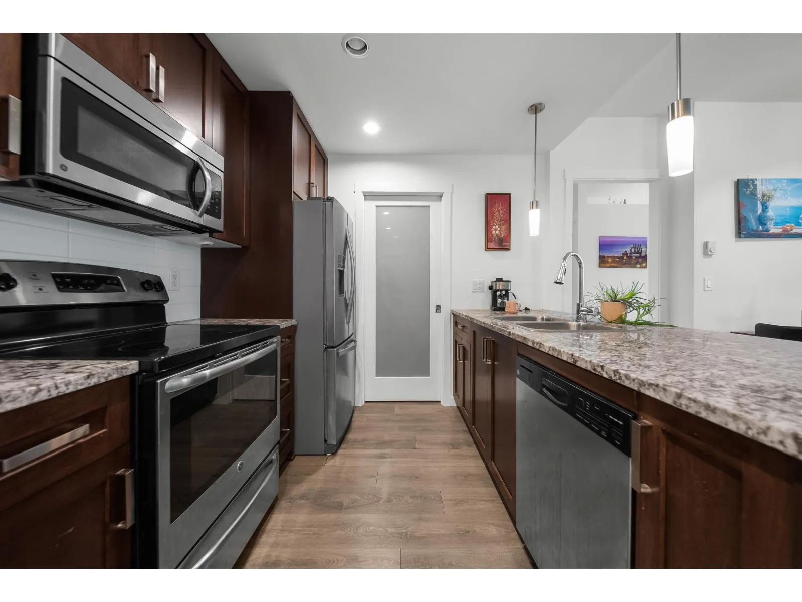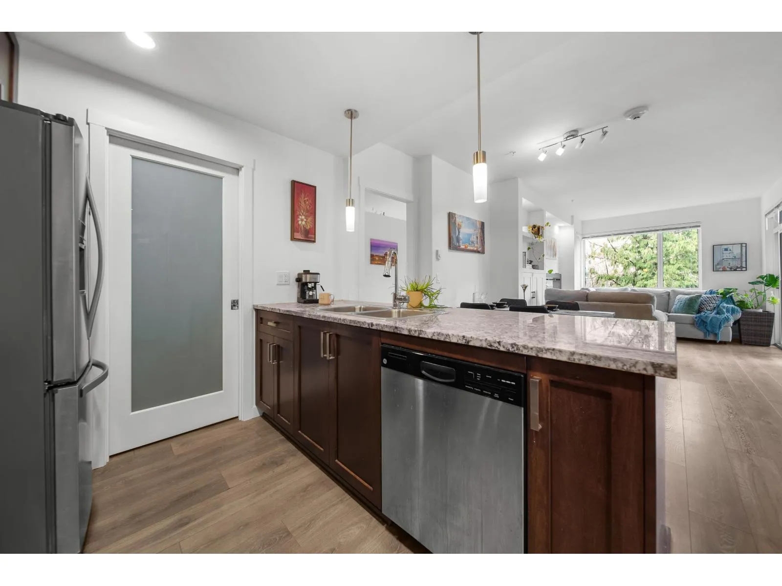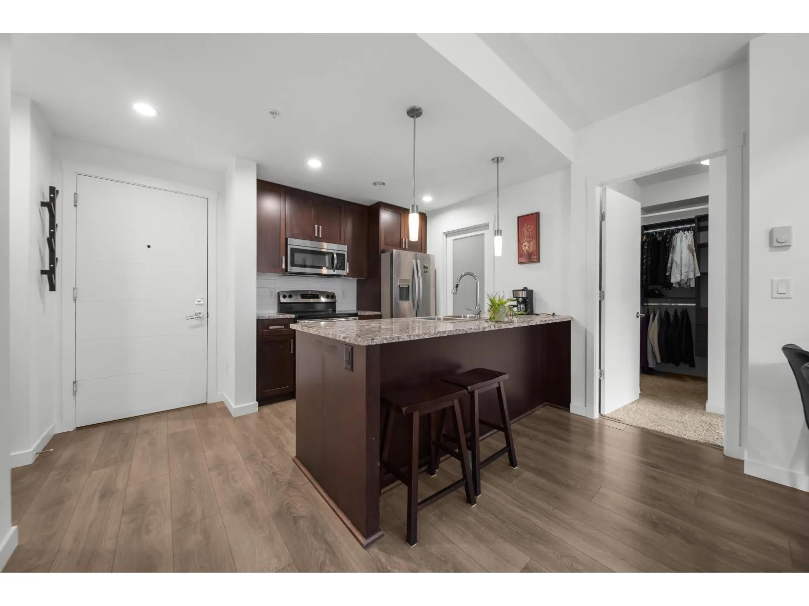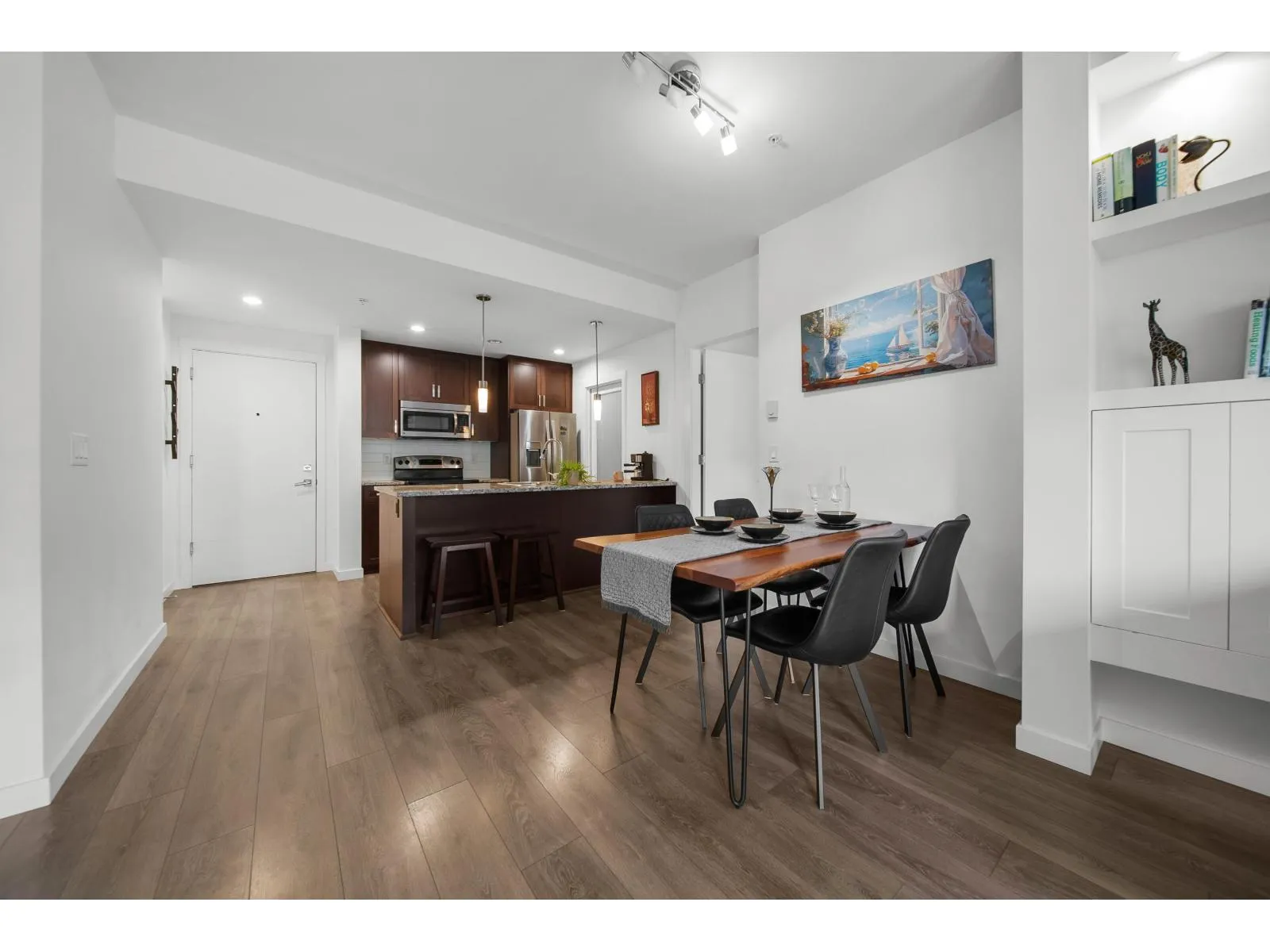 Modern living at its finest in East Abbotsford's most sought-after condo community. Welcome to Waterleaf-where style, comfort, and convenience come together effortlessly. Enjoy resort-style amenities including a heated outdoor pool, hot tub, full-size gym, and an amenities room with a pool table. This immaculate 2-bedroom, 2-bath forest-facing unit features newer paint, a shiplap-accented fireplace, custom living room cabinetry and shelving and a spacious pantry. Sit on the gorgeous patio and take in the beauty of the hillside forest. Located just seconds from Hwy 1 and within walking distance to Save-On-Foods, restaurants, top-rated schools, and more. Bonus: two side-by-side parking stalls and a large storage unit. This one has it all! Call today to book your private showing! (id:27476)