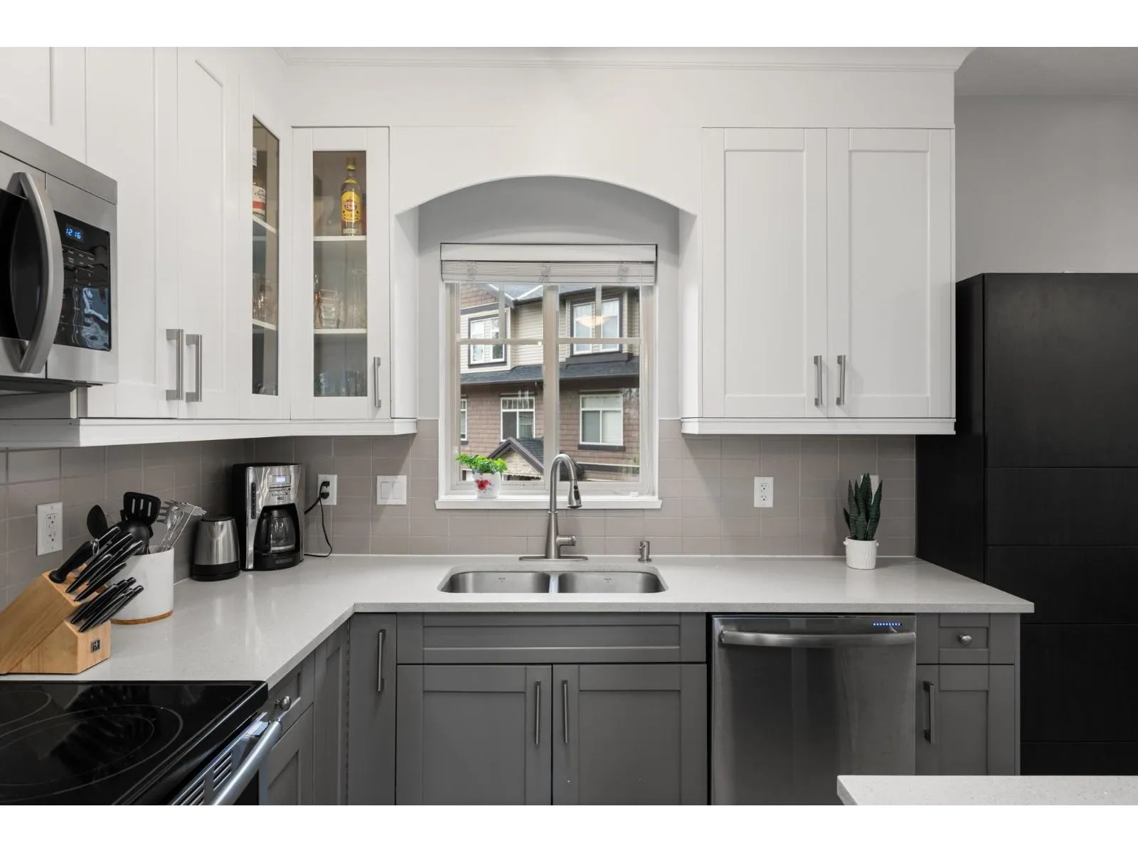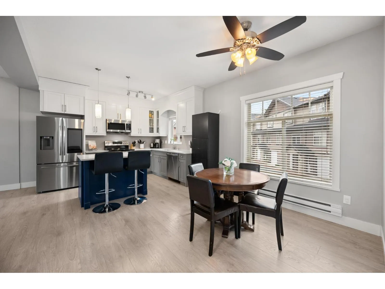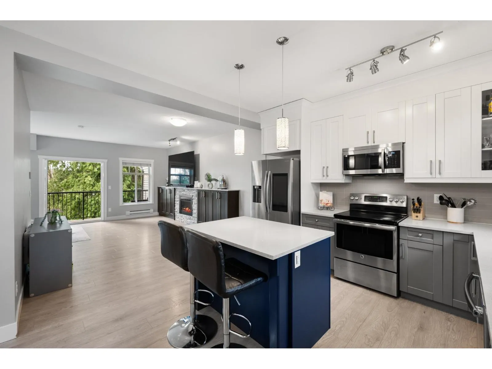 Welcome home to space, light, & comfort in this beautiful 4-bedroom end-unit townhome, perfect for growing families or anyone craving room to breathe. Sunlight pours through the windows, illuminating the open-concept main floor with 9' ceilings, a stunning kitchen with quartz counters, S/S appliances, & a large island made for gathering. Unwind by the cozy rock fireplace or step out to your private sundeck overlooking a fully fenced backyard & greenspace framed by old-growth cedars. Upstairs offers 3 generous bedrooms, a serene primary retreat with ensuite & ample closets, while the lower level boasts a versatile 4th bedroom-ideal for guests, office, or playroom. Double side-by-side garage, tons of storage, extra parking. 3 pets allowed! Close to Fraser Hwy and Aldergrove Rec Centre. (id:27476)