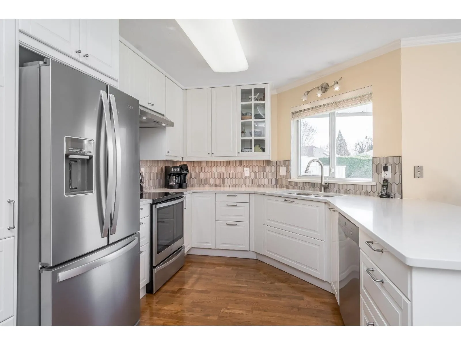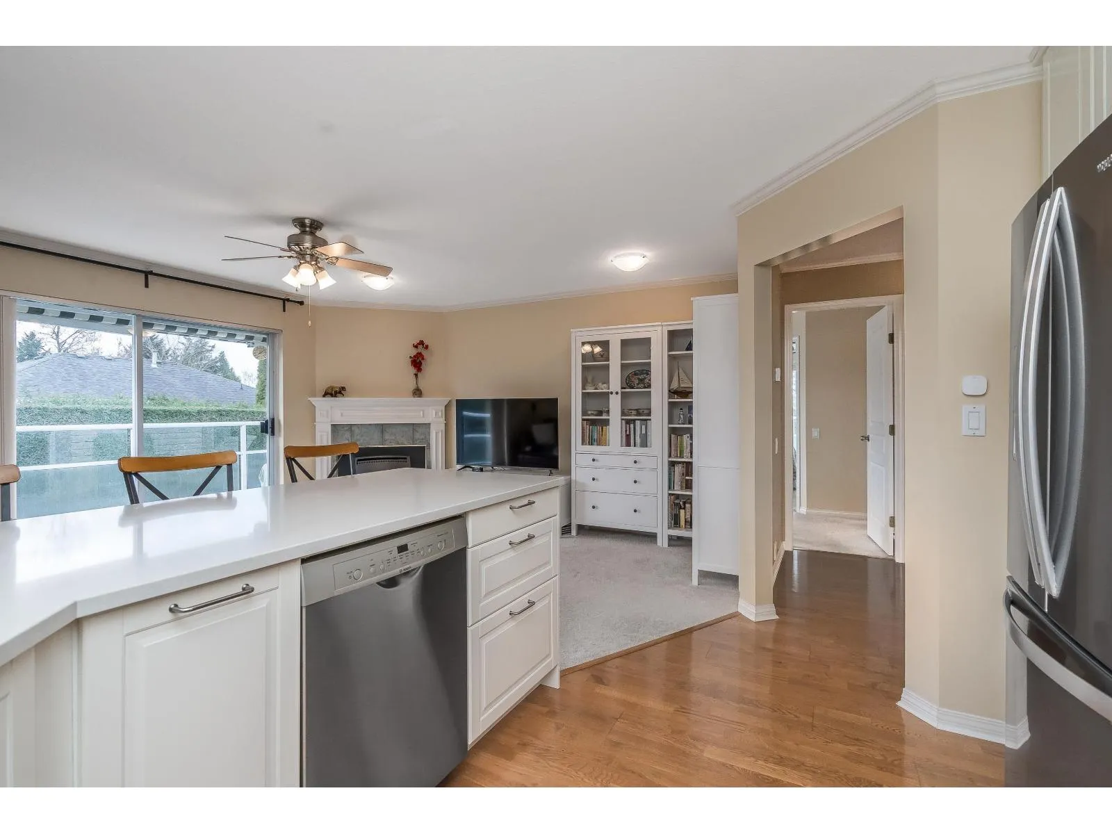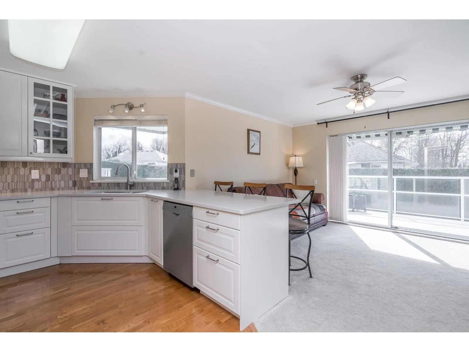 2 KITCHENS-Level-entry rancher in a quiet, Abbotsford complex! This spacious home offers 2 beds up plus a fully finished basement with separate entry, kitchenette, and potential for up to 5 beds-ideal for extended family. Beautifully upgraded with an open-concept kitchen featuring white quartz counters, a large island, and excellent storage. Radiant in-floor heat, hot water on demand, new boiler, and 2 gas fireplaces add comfort and efficiency. Bright southern exposure with a massive full-length deck-perfect for BBQs and outdoor living. The large primary bedroom includes a full ensuite with soaker tub, plus 3 full baths in total. Enjoy a private outdoor sitting area, double parking, and visitor parking right across. Family-and pet-friendly complex (small dogs welcome). (id:27476)