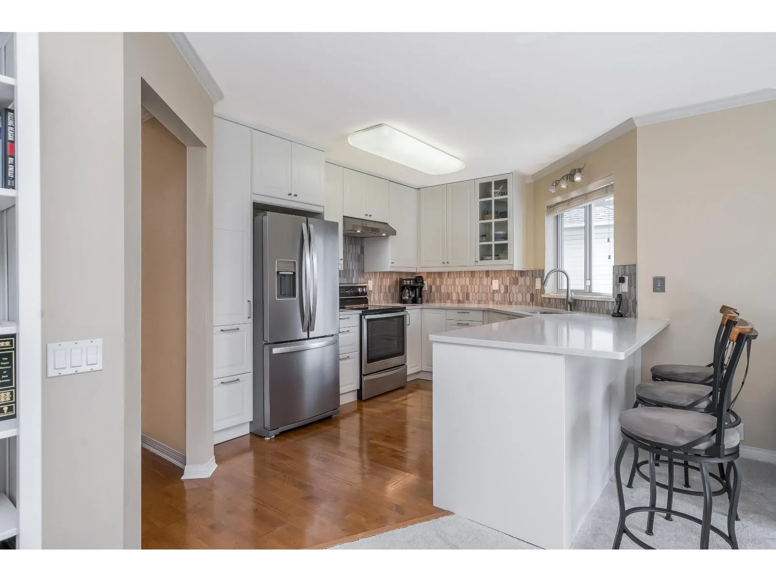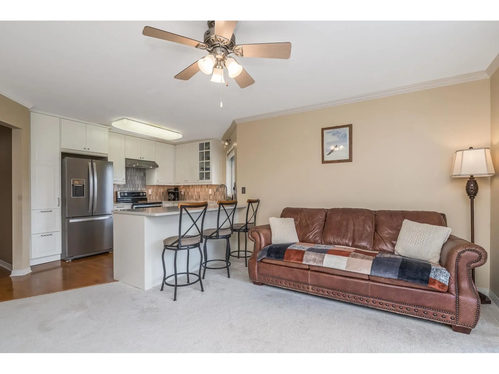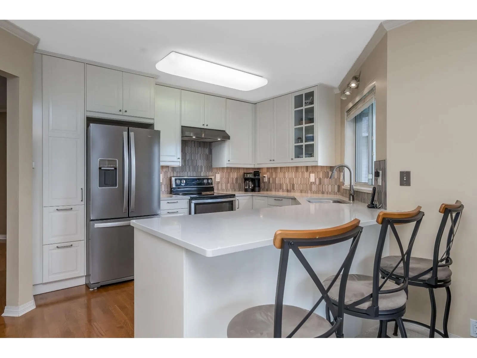 2 KITCHENS-Level-entry rancher in a quiet, Abbotsford complex! This spacious home offers 2 beds up plus a fully finished basement with separate entry, kitchenette, and potential for up to 5 beds-ideal for extended family. Beautifully upgraded with an open-concept kitchen featuring white quartz counters, a large island, and excellent storage. Radiant in-floor heat, hot water on demand, new boiler, and 2 gas fireplaces add comfort and efficiency. Bright southern exposure with a massive full-length deck-perfect for BBQs and outdoor living. The large primary bedroom includes a full ensuite with soaker tub, plus 3 full baths in total. Enjoy a private outdoor sitting area, double parking, and visitor parking right across. Family-and pet-friendly complex (small dogs welcome). (id:27476)