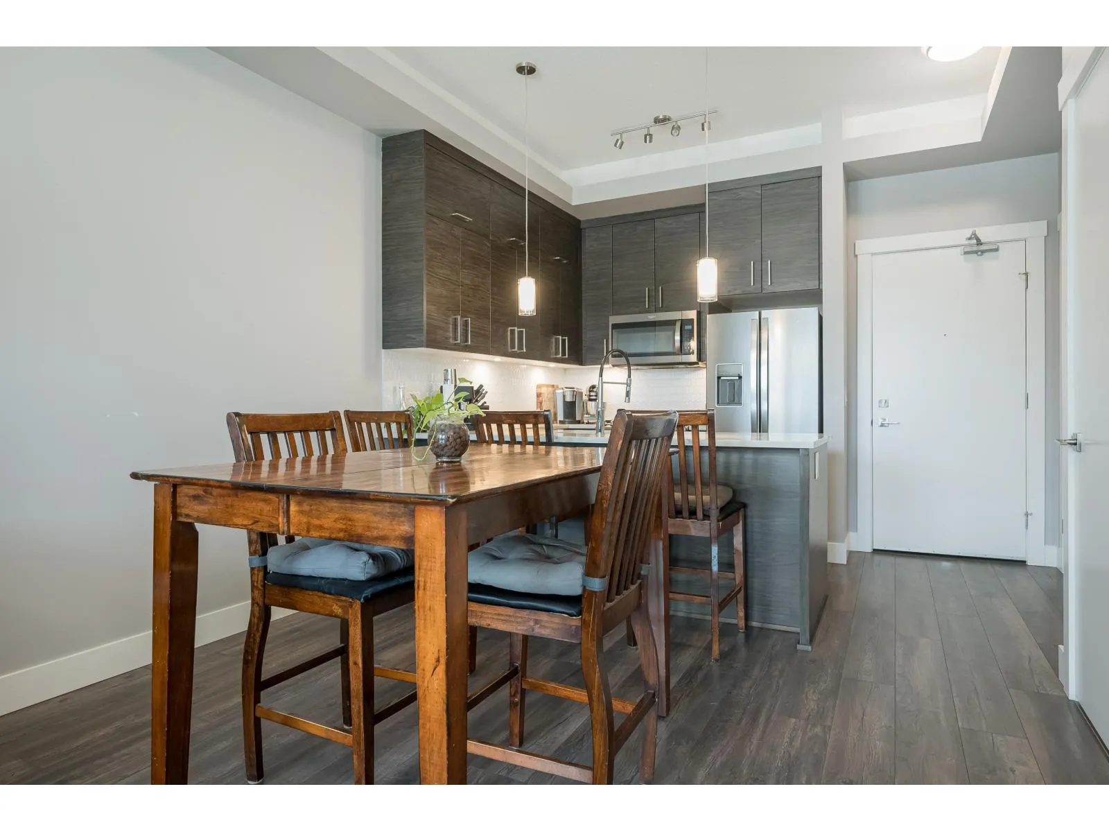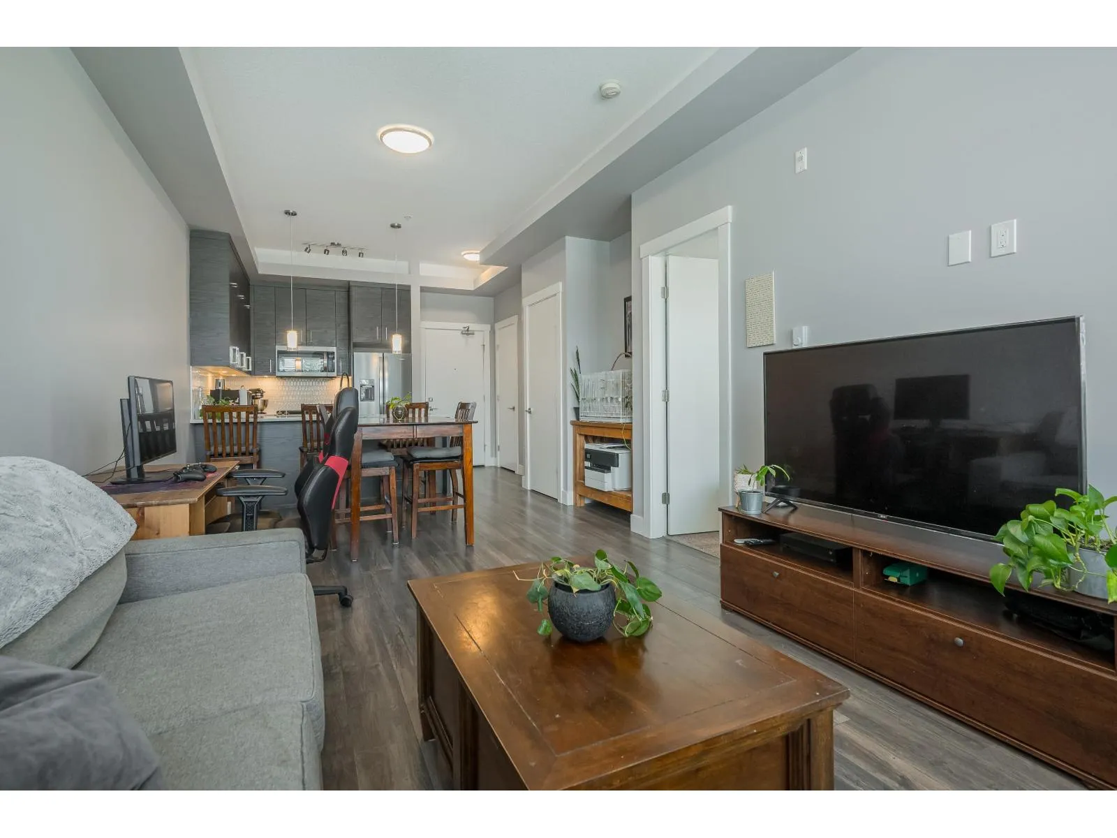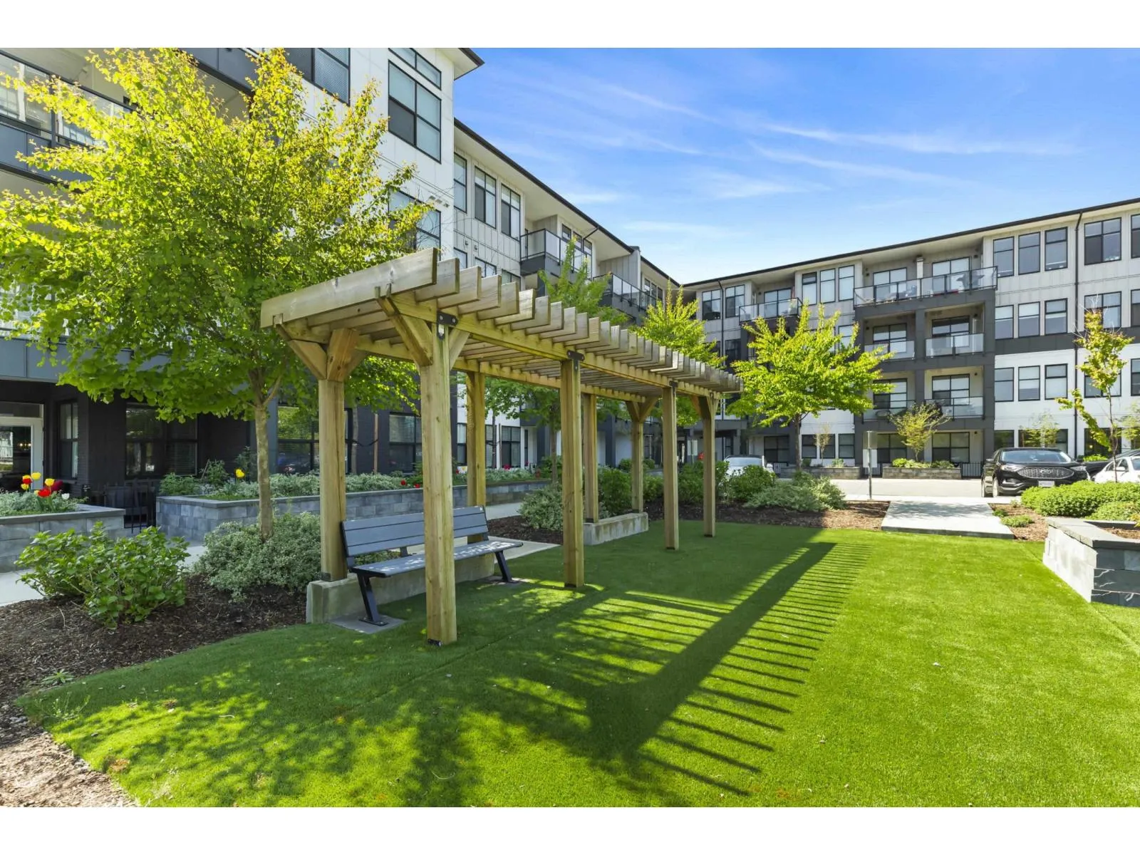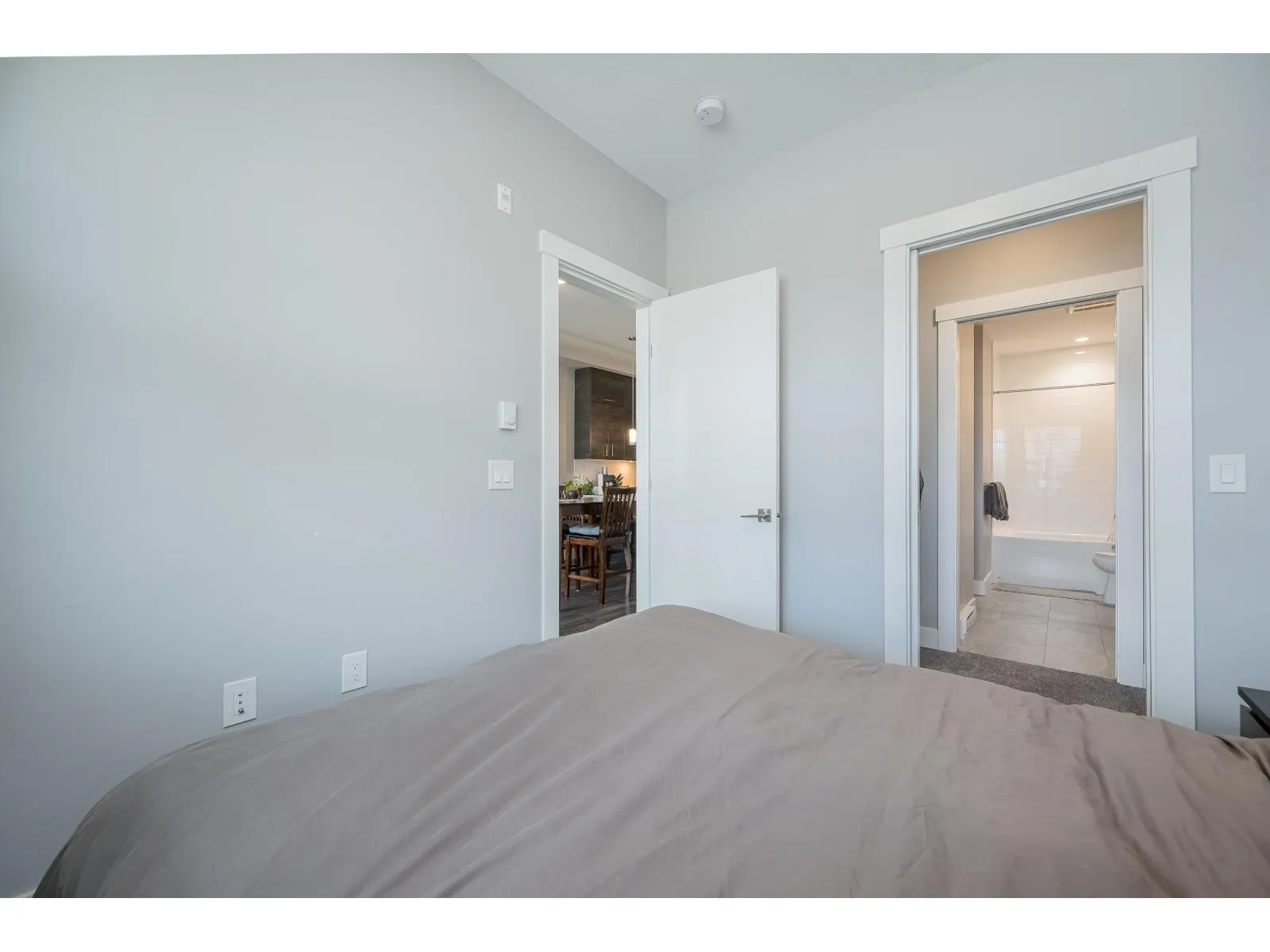 Welcome to Onyx at Mahogany, one of Abbotsford's most sought-after condo communities with easy freeway access. Just steps to Seven Oaks Mall and Mill Lake. This gated complex offers a gym and secure underground parking with 2 stalls. Quietly located on the cool side of the building. This 1-bedroom home features a modern design with 10' ceilings and an efficient open-concept layout. Enjoy A/C, heated floors, a luxurious 5-piece ensuite with rain shower, and a large covered sundeck. Bright, spacious, and move-in ready. Kids, pets, and rentals allowed. Live comfortably and entertain in style-call today to view this unit! (id:27476)