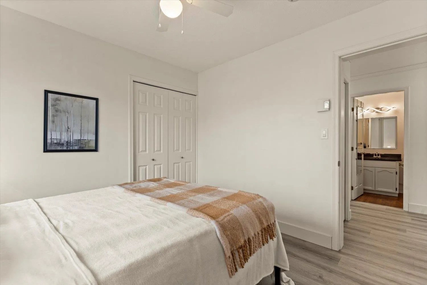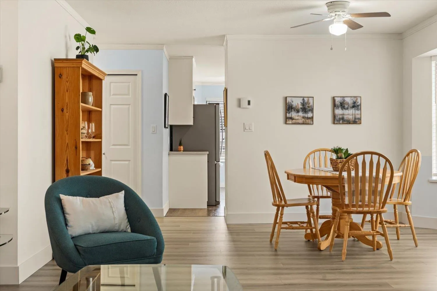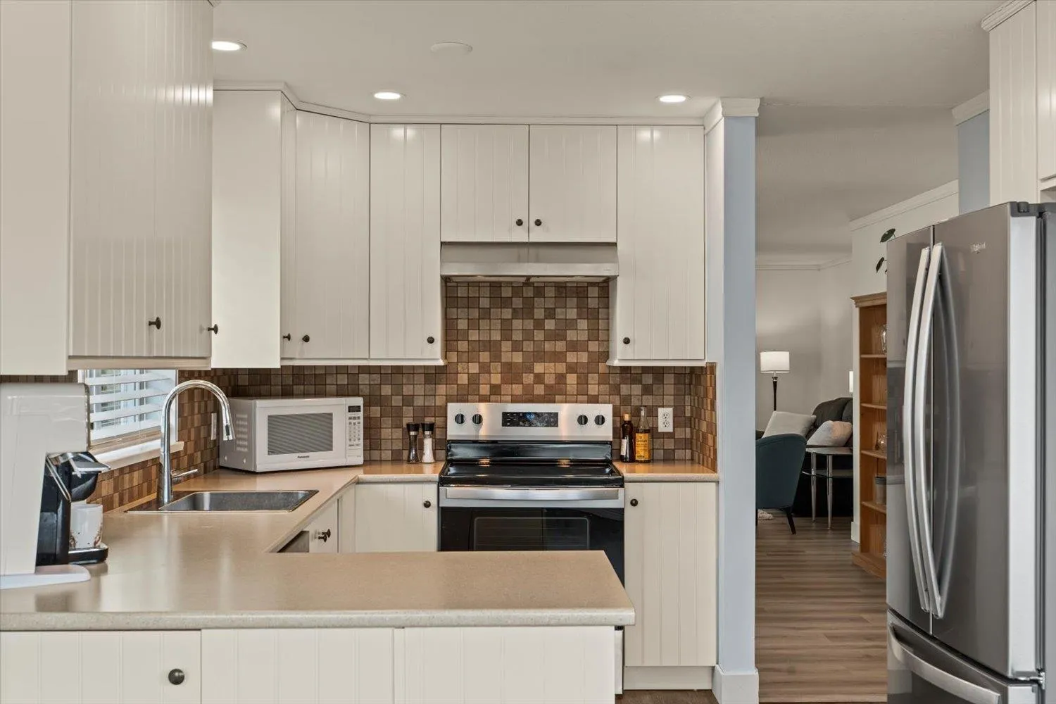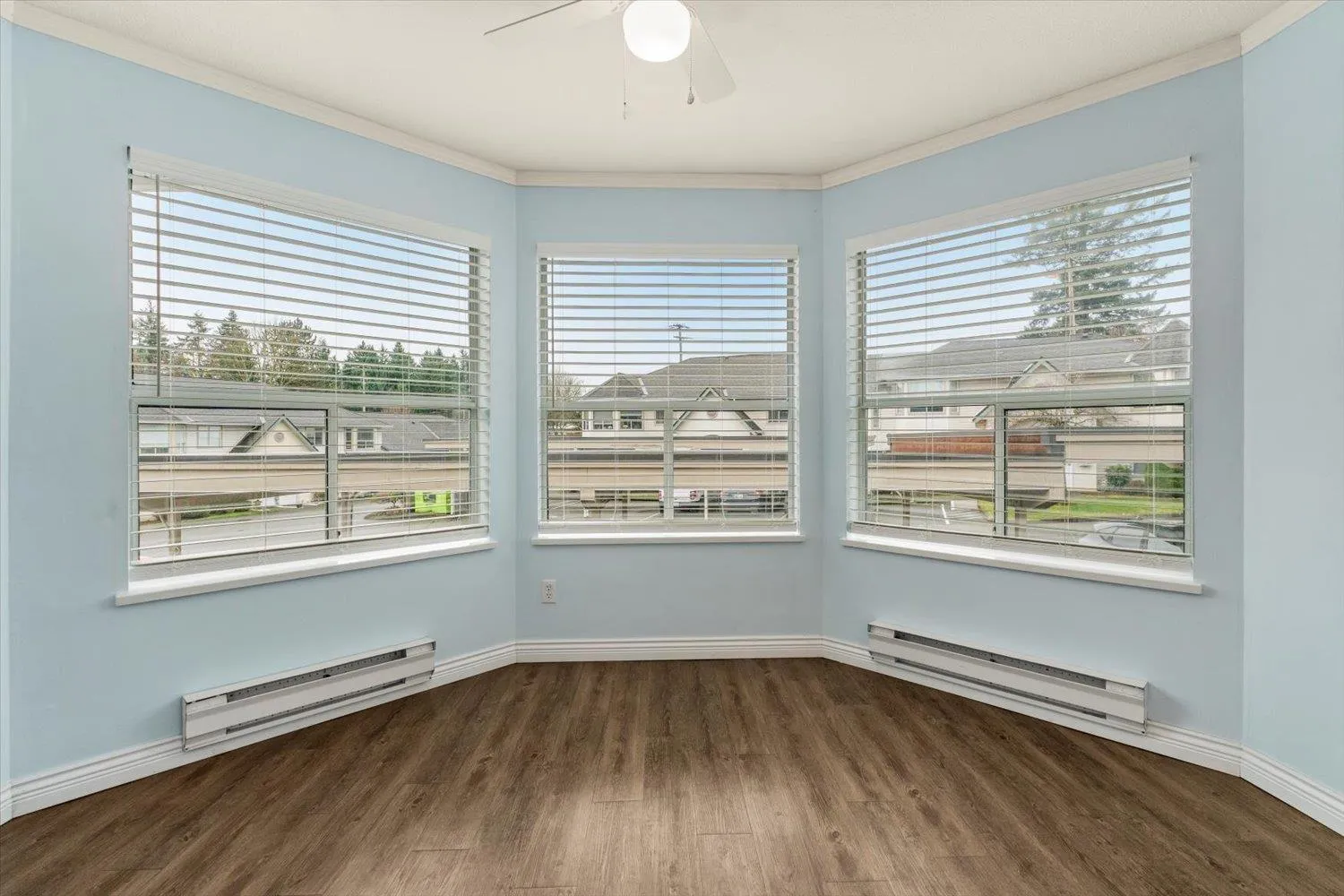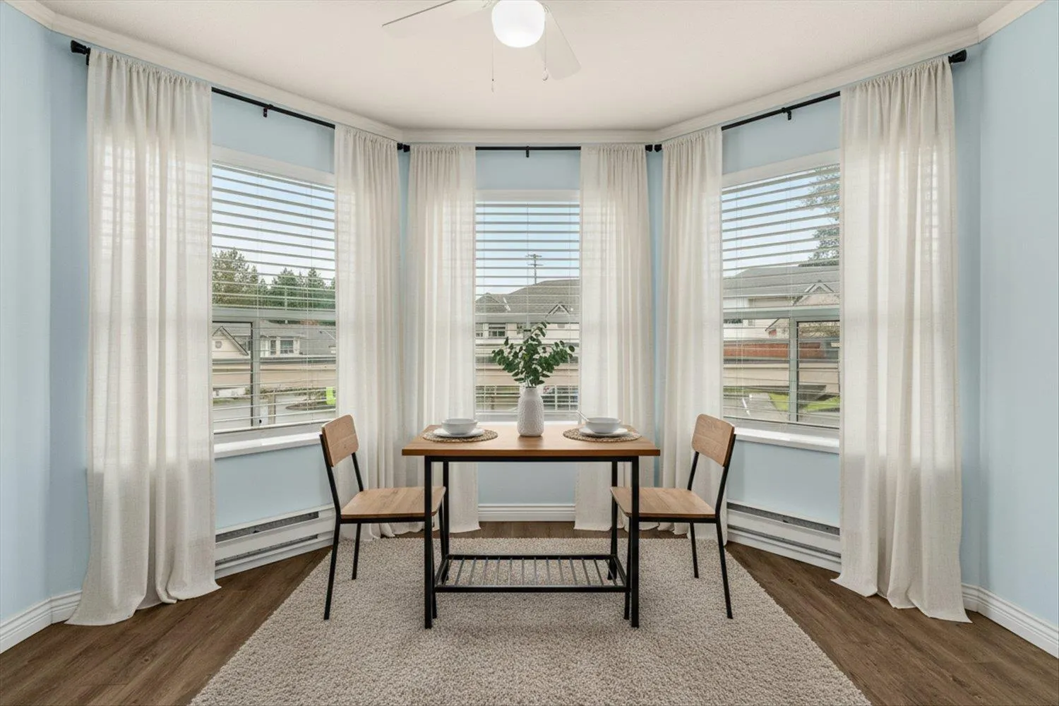 Welcome to Forest Edge! A quiet 55+ community backing onto parkland. This upper floor unit shows like new! Spacious & bright with 2 bedrooms/2 full bathrooms, gas fireplace, air conditioning, open layout living/dining area plus kitchen nook. Large primary bedroom with beautiful full ensuite. Thoughtfully updated for low-maintenance living. Updates include: flooring, baseboards/controls, appliances, heat pump with two mini-splits, updated lighting, ceiling fans, and refreshed bathrooms. Enjoy morning sun from the large east-facing balcony with forest views. Rentals allowed, one cat or dog permitted (14" at shoulders), two parking stalls (one covered). Close to shopping, parks, and recreation. Must be seen to be appreciated. Nothing to do here, but move in and enjoy! Book a showing today! (id:27476)