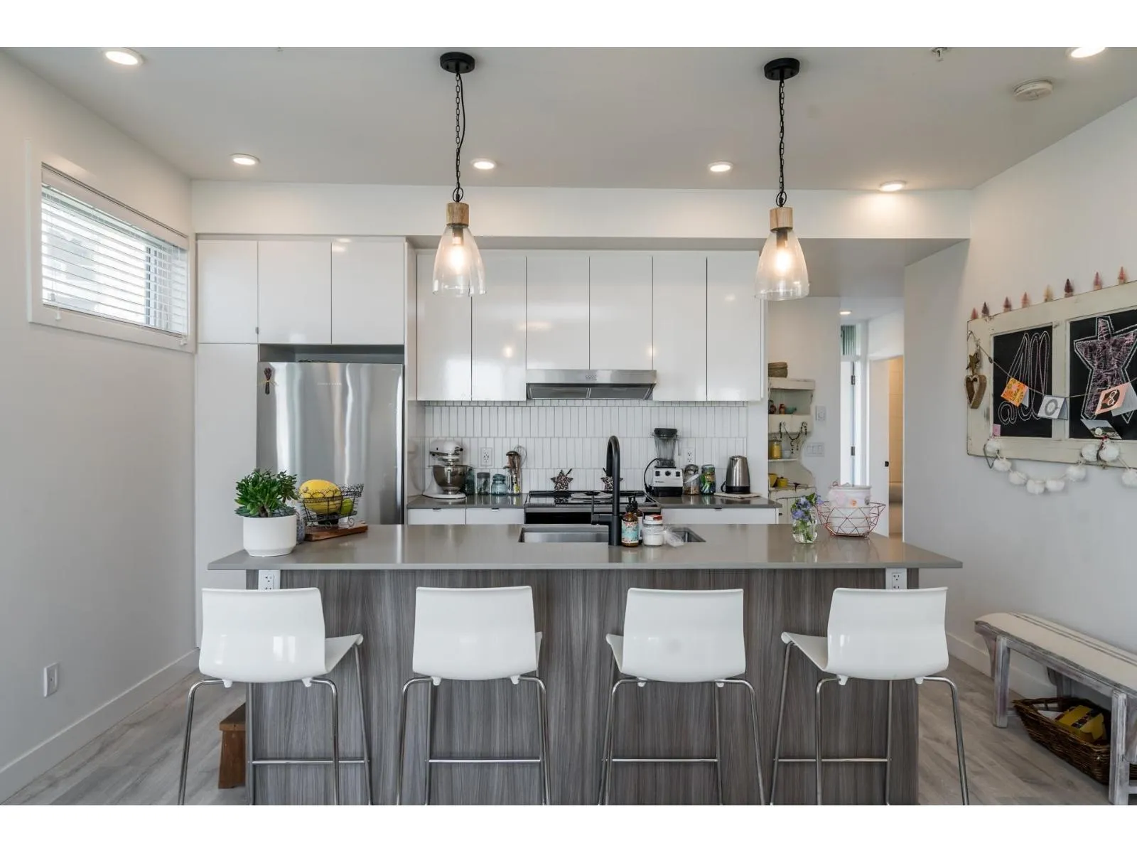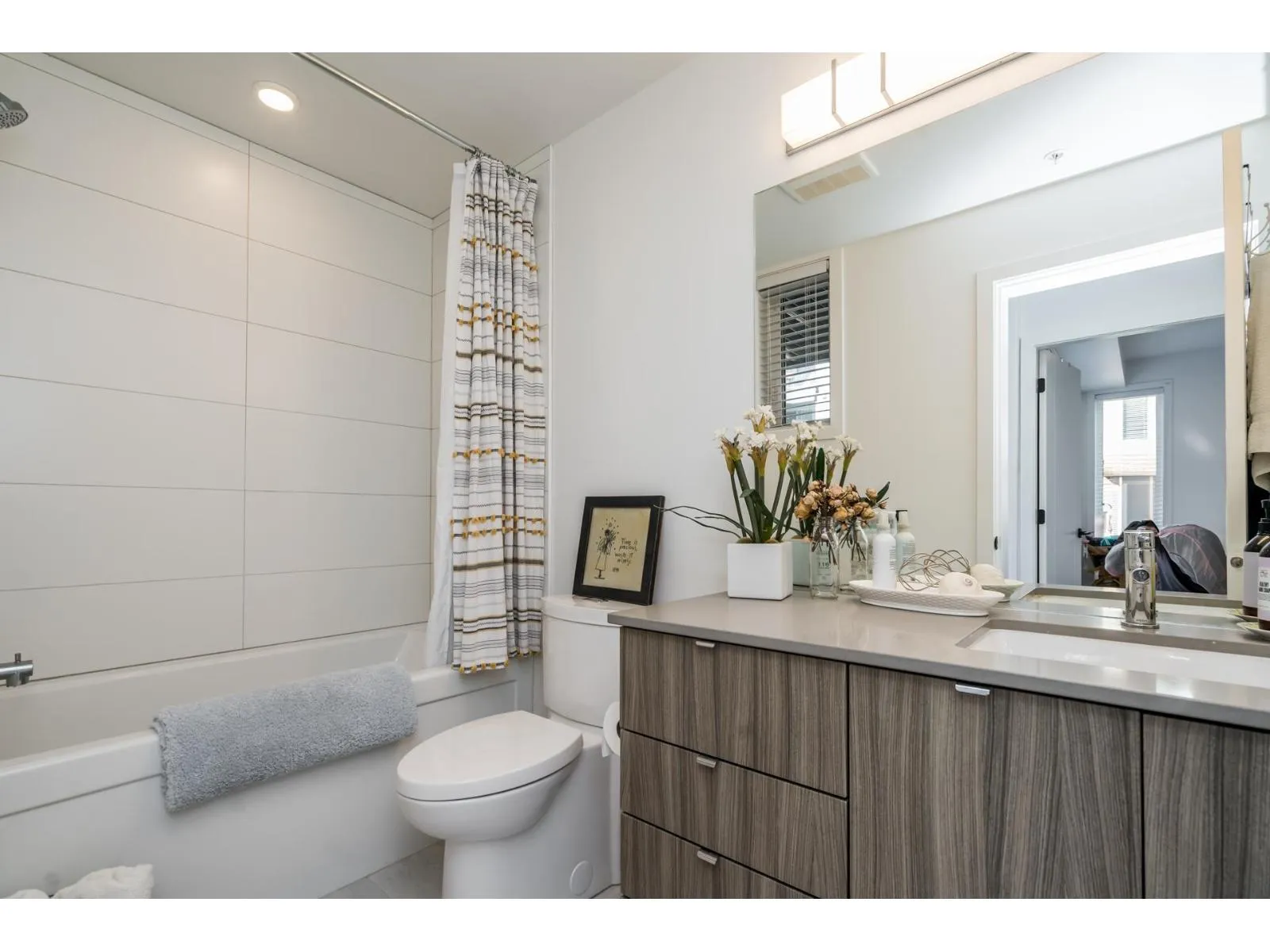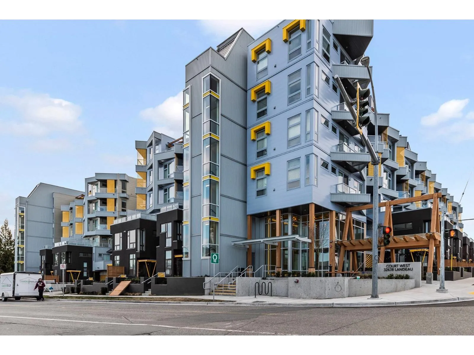 Vancouver-style loft at Court West blends modern design with daily convenience. This beautiful townhouse with private entrance offers 2 bedrms/ 3 bathrms across nearly 1367 sq ft of thoughtfully designed living space. Expansive windows on two levels fill the home with natural light, creating a bright & open feel. The kitchen features quartz countertops, an island & S/S appliances, ideal for cooking & entertaining. The primary loft bedrm offers city & mountain views, a walk-through closet & ensuite with double sinks. In-suite laundry adds ease. Outdoor spaces include a balcony, front patio & large private patio backing onto the courtyard. Two parking stalls are right beside the entrance, storage locker & EV charging. A mudrm, spacious foyer with nook & bath adds to the function of unit. (id:27476)