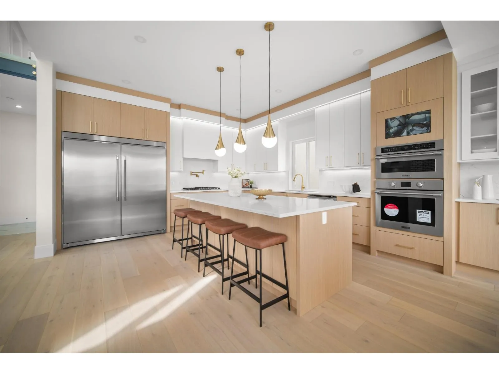 Welcome to this newly custom-built home in central Abbotsford, ideally located near Mill Lake, all levels of schools, and Abbotsford Regional Hospital. The main floor offers a custom kitchen, an open-to-above living room, a versatile office (or bedroom), and a full bathroom. Upstairs features 3 spacious bedrooms, each with its own ensuite. Enjoy premium finishes including custom floating stairs and engineered hardwood flooring throughout. The basement includes a 2-bedroom legal suite - perfect as a mortgage helper - along with a large media room, gym, and storage space. This home truly offers comfort and functionality. Contact today to book your private showing! (id:27476)