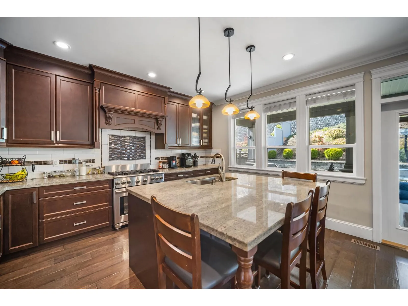 Welcome to this beautifully custom-built 4,104 Sqft home in one of Abbotsford's most desirable neighborhoods (Pepin Brook) surrounded by farmland. The main floor offers an open-concept living area, den, and a bright kitchen with granite countertops, quality cabinetry, and a dining space, all enhanced by natural light, crown moldings, baseboards, and engineered hardwood floors. Upstairs features 4 spacious bedrooms, including a primary suite with a private ensuite. Furnace and hot water tank were replaced in Feb 2026. The fully finished basement includes a separate entry, ideal for long-term rental, plus a theatre room with built-in bar. Walking distance to parks and schools, with a backyard featuring a durable wooden playground. Contact for more details! OPEN HOUSE APRIL 25 SAT 1-3PM (id:27476)