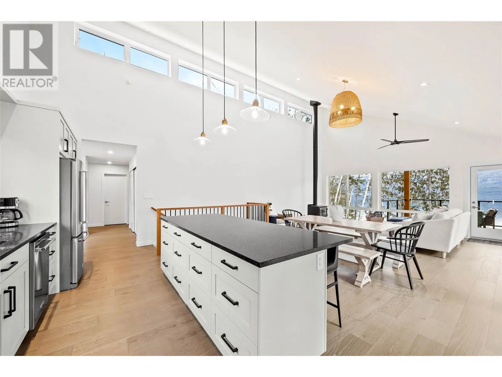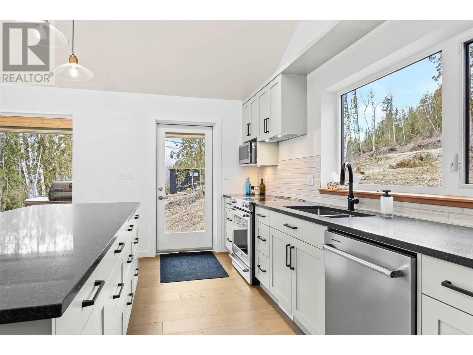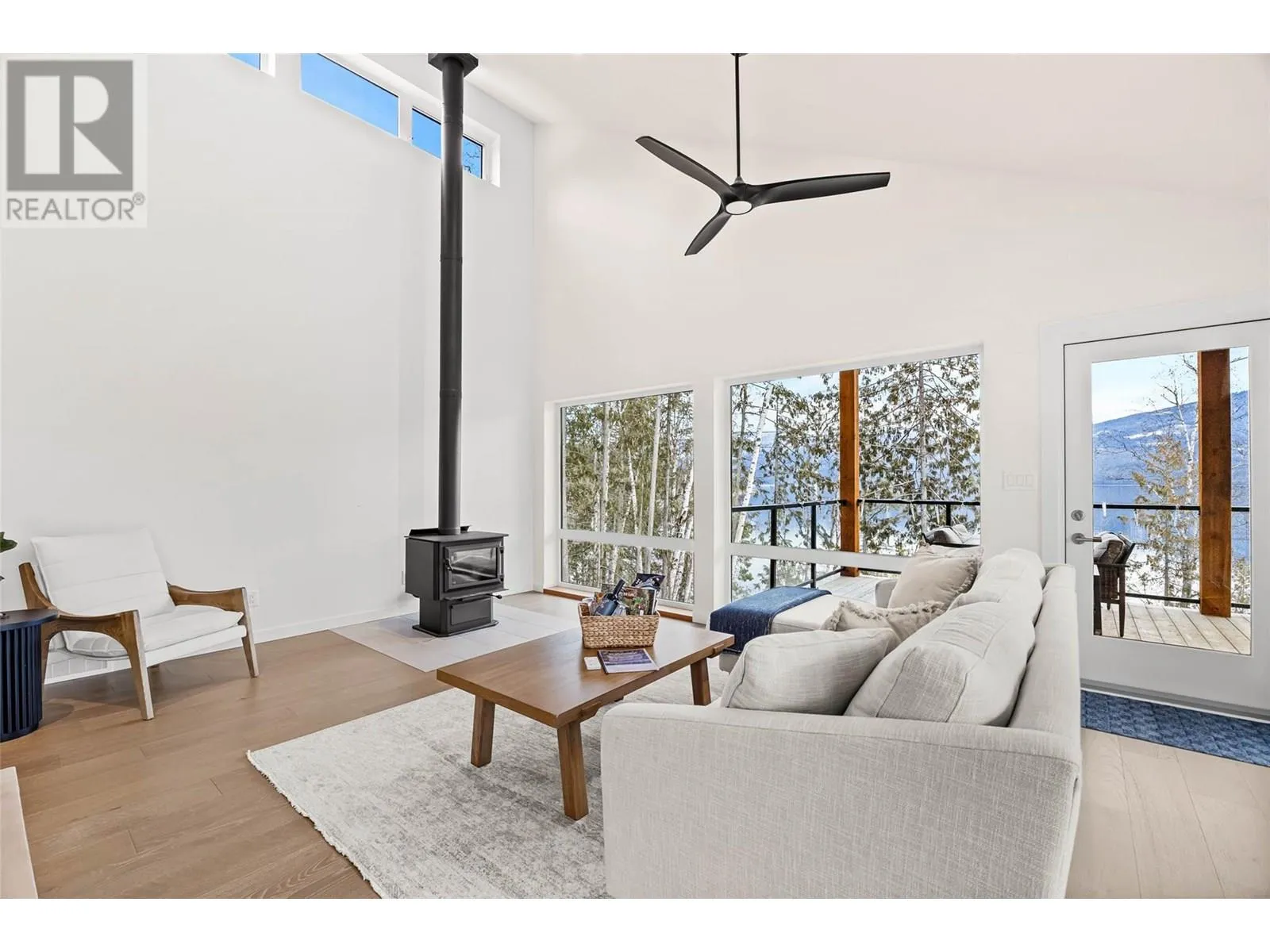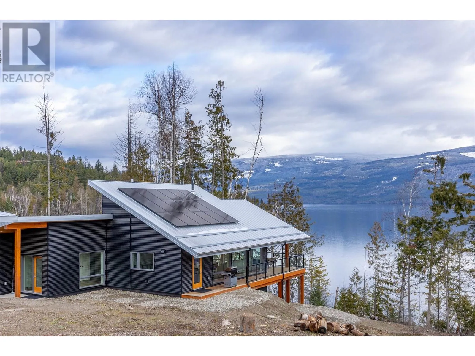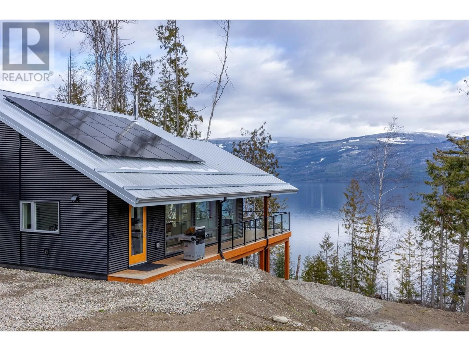 Welcome to Mac's Landing, at Marnie's Bay Resort on Adams Lake. This cottage has been constructed with purpose & designed with efficiency in mind, built net-zero. Only 1.25 hrs from Kamloops and 5 hrs from Vancouver. Some of the best views of Adams lake on this .5 acre waterfront lot, access to the water is only steps away. This 2500sqft rancher-style w/ 500sqft garage will impress from the moment you step onto the property. Metal roofing, w/ solar panels, corrugated black metal siding & wood accents highlight the exterior of the cottage. Inside you are surrounded by windows in the bright, main living space. The vaulted ceilings are high and make this space feel so open & comfortable. Custom kitchen w/ large island, wood burning stove, engineered hardwood floors & access to a large covered patio and deck. Fully finished w/ 3 beds, 2 full bathrooms & flex room and great unfinished space ready for your ideas. Fully serviced w/ community septic, community water & access to marina & boat launch. This community offers flexibility & space for your family to enjoy all the recreational possibilities. Adams Lake is approximately 65 kms long, with many white sand beaches. There are marine parks to enjoy along with fantastic fishing (Lake, Bull and Rainbow Trout) and the warm water in the summer months is perfect for boating and other water sports. Contact us for the information package on the community, operations & rental requirements. Exempt from Foreign Buyers Ban! (id:27476)