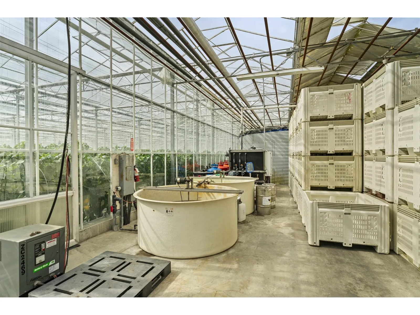 Discover an exceptional turnkey opportunity in Agassiz's community. This 14.95-acre commercial operation specializes in bell peppers, offering a highly efficient & technologically advanced setup designed for success. Featuring 5 acres of 4.5M high Venlo glass greenhouses, grading & packing equipment, warehouse, loading dock, Argus Controls, generator, biomass boiler & equipment. This property delivers a solid contract with strong returns, making it an ideal investment for a discerning business-minded buyer. Boasting a spacious, heated 4-bay workshop with 400A service & hoist. Recently renovated executive home 4-bedrooms and 2.5 bathrooms, huge kitchen & covered patio (2,745 sqft.), & modern worker 4-bedroom, 2 bath rancher (2,000 sq. ft.). Enhance your revenue with additional income from 5 acres of hazelnut trees. This meticulous property is offering a share sale option, seize the chance to own a flagship agricultural enterprise. Value of crop & consumables at the time of sale not included in asking price (id:27476)