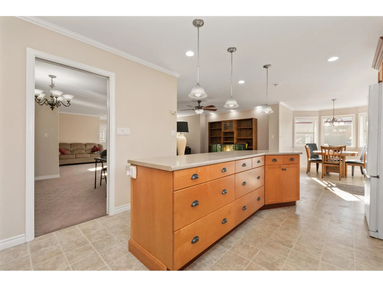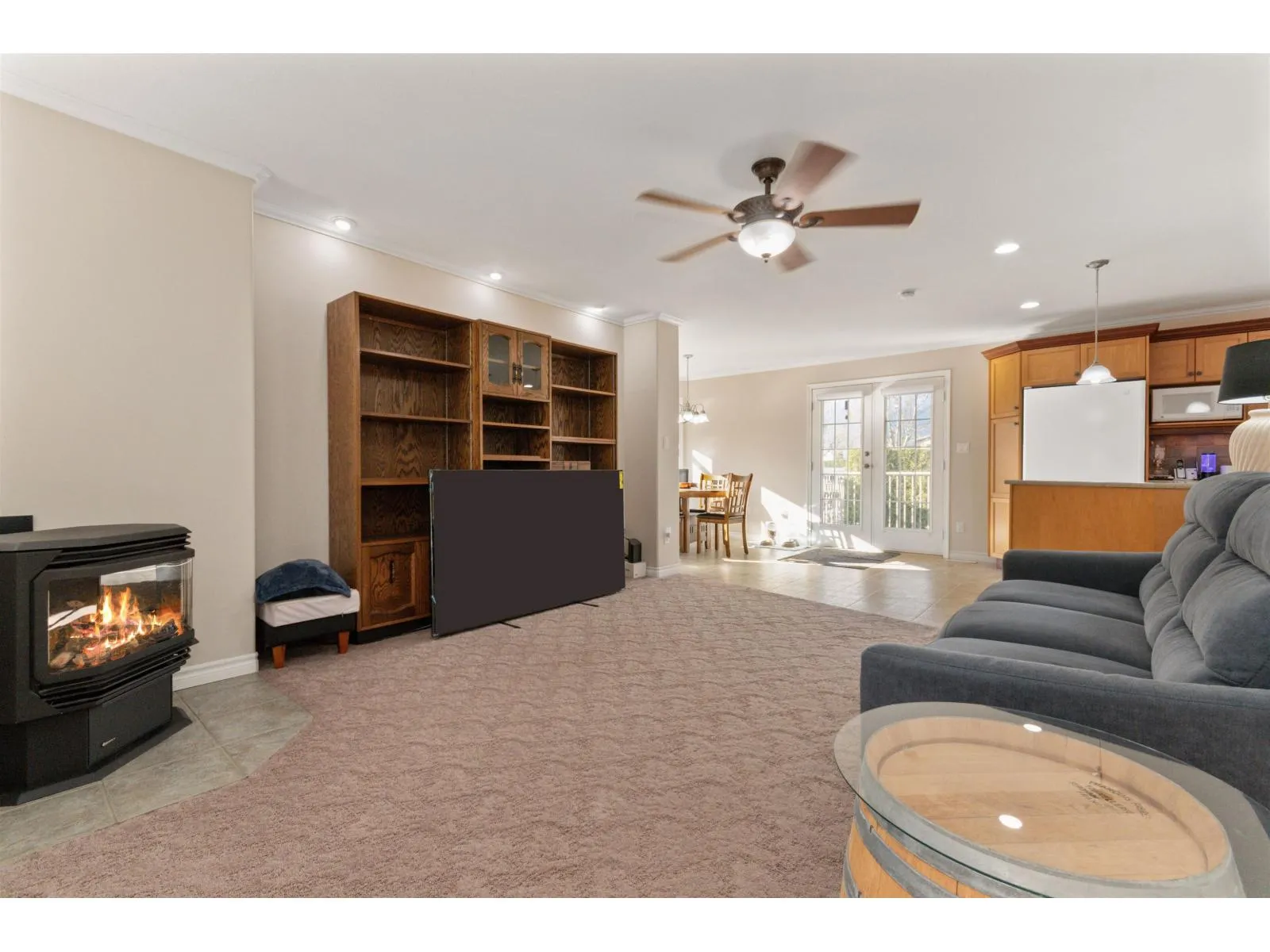 Welcome to Elmwood Place! This stunning 1,700 sqft rancher, one of the largest in the complex, offers 2 beds, 2 baths, and an open-concept floor plan flooded with natural light. Enjoy modern upgrades like new LED lighting with dimmers, a brand-new gas range, and fresh new blinds throughout. Cozy up by the gas fireplace in winter and stay cool with central A/C in summer. Step outside to your private yard with breathtaking mountain views"-perfect for relaxing or entertaining. With a large double garage, and double driveway for lots of parking, this meticulously maintained home in a sought-after 55+ community is the perfect place to call home. Low strata fees of $100/month include lawn cutting. * PREC - Personal Real Estate Corporation (id:27476)