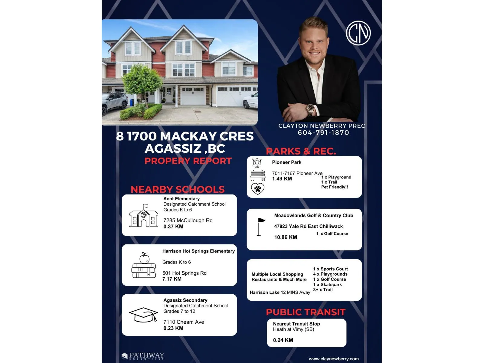 Welcome to unit 8 at 1700 Mackay Cres. You will fall in love with this well-appointed 3 bedroom+den, 3 bathroom townhome, which is laid out perfectly over just above 2000+ sqft. Everything about this home is meticulously maintained. The main floor offers an open concept plan that flows freely from the deck through the living room, into the kitchen to the large dining room. The kitchen offers a newer stainless steel appliance package, updated countertops and white cabinetry. Just half of the garage has been converted into a den, which could work as a great guest suite, as the lower level offers a full bathroom! The yard is fully fenced, and the visitor parking is directly across from the front door. All this is situated within just walking distance of everything Agassiz has to offer. Call Today! * PREC - Personal Real Estate Corporation (id:27476)