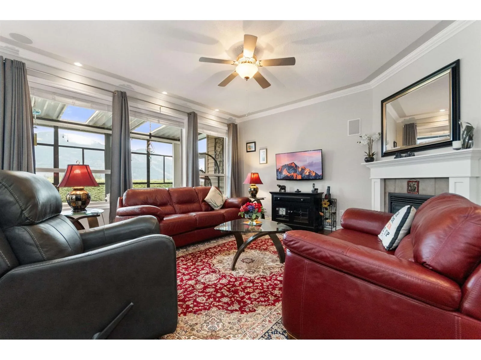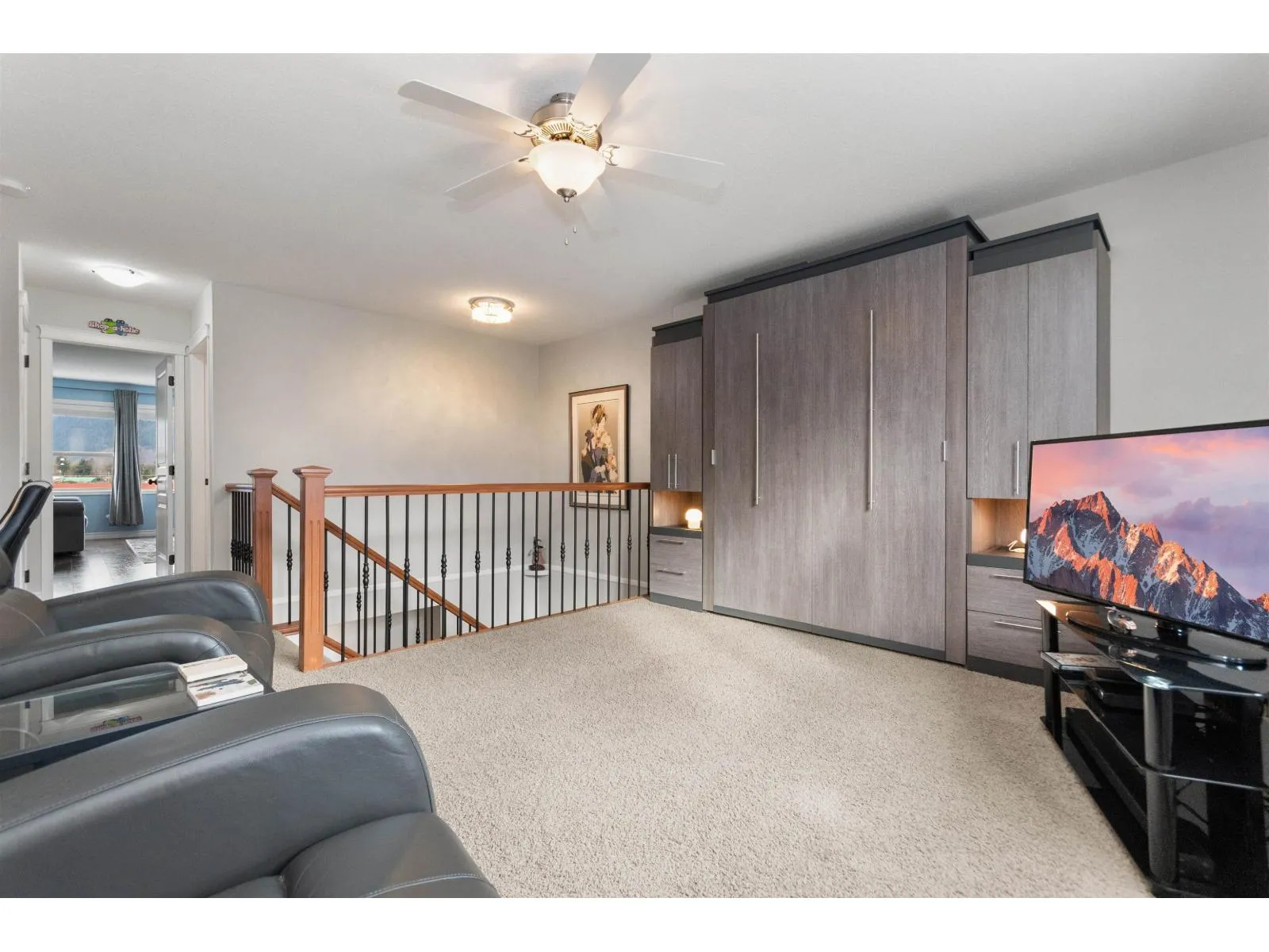 Welcome to Aberdeen Village, one of Agassiz's best neighbourhoods! This impressive home offers a primary bedroom on the main floor, a bright open concept floorplan, tall ceilings, bright windows featuring a beautiful view with mountains and green fields. The kitchen features quartz counter-tops, Bosch dual-fuel range, and a brand new dishwasher. Upstairs is a spacious loft space that could easily be a third bedroom, as well as huge bedroom and bathroom, perfect for guests to enjoy. Easy stair access to the huge 5' crawlspace. Outside find a double garage, on-site RV parking, storage shed, and a private fenced yard with a fully enclosed deck to enjoy year round. Located on a quiet street with easy highway access, Agassiz is the perfect place to call home! * PREC - Personal Real Estate Corporation (id:27476)