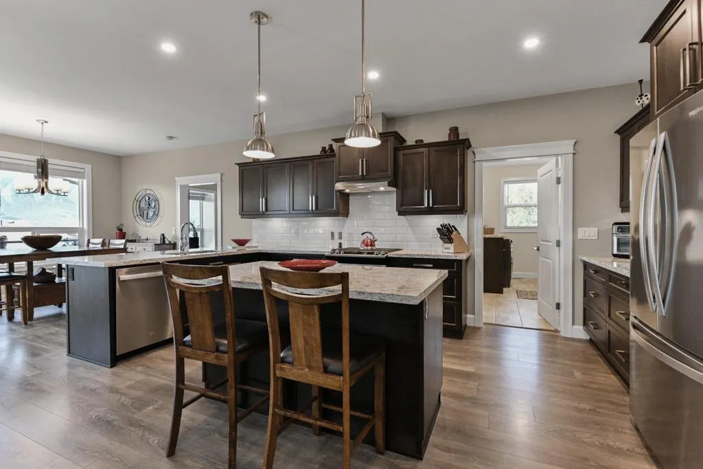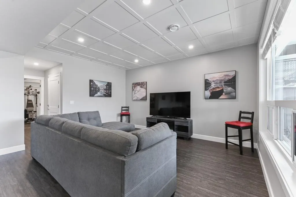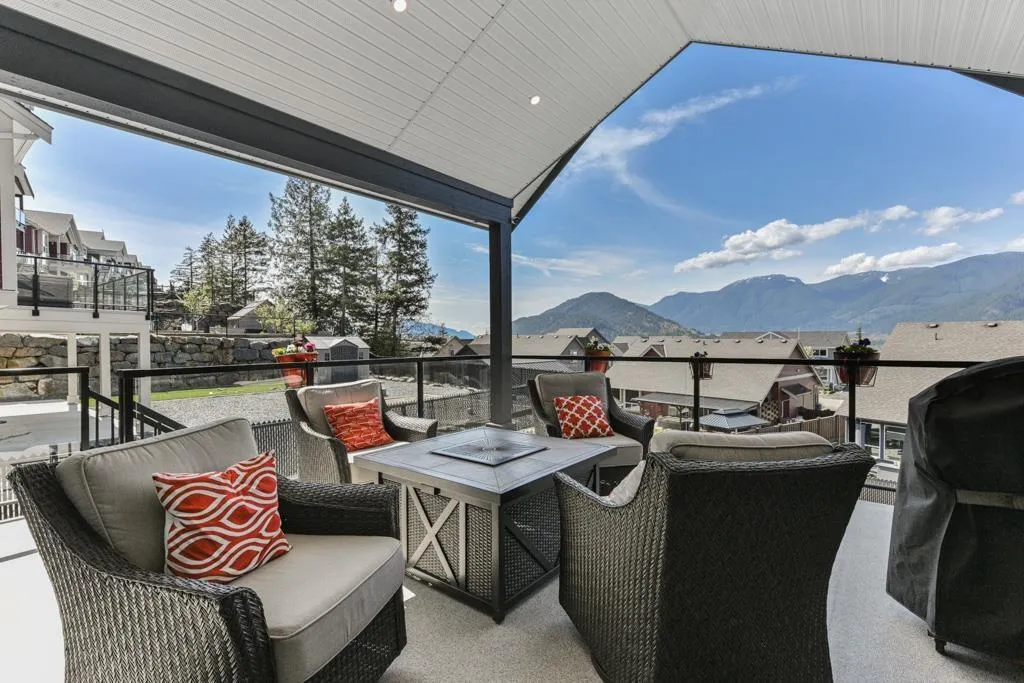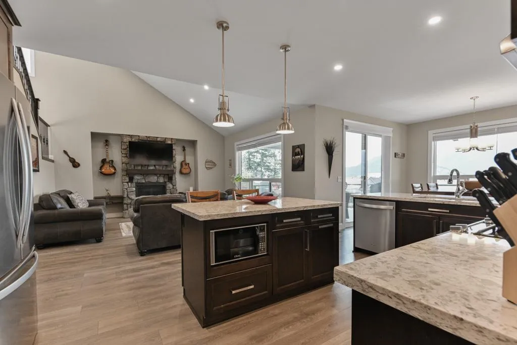 WELCOME HOME TO MOUNT WOODSIDE! This beautifully constructed nearly brand new 5 bdrm, 3.5 bath home offers a wonderful layout maximizing the west exposure & gorgeous mountain & water views. Take in the stunning natural beauty that is Mt Woodside from the large covered wrap around balcony off the main living area adorned w/massive windows throughout. Sitting atop a gently sloped corner lot offering a FULLY FINISHED WALK-OUT BSMT w/wetbar & separate keyless entry (Air BnB Ready!), covered patio and flat fully fenced rear yard with convenient gate access from your RV parking pad (incl 30 amp power!) Plenty of upgrades incl lux granite countertops throughout, whirlpool SS appliance pkg ft gas stove, heated flooring in the 5pc master ensuite, finished garage (id:27476)