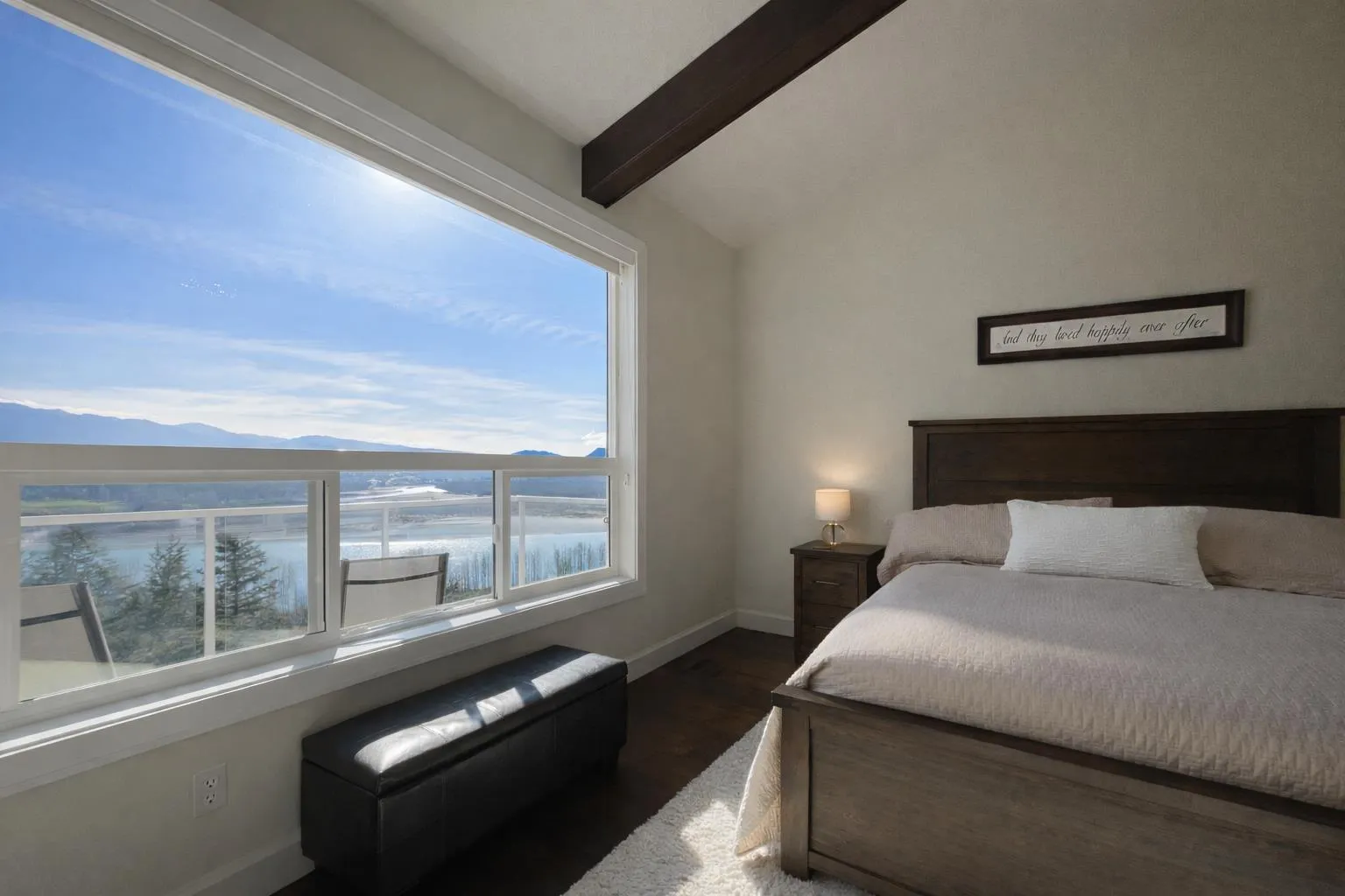THE BEST breathtaking RIVER, MOUNTAIN & VALLEY views IN ALL OF Harrison Highlands! This 4,000+ sq. ft. custom home on Mt. Woodside has MASTER on the main floor, 3 bdrms up & a 2 bdrm LEGAL SUITE. At the Dead end cul-de-sac. This home was designed to maximize the scenery w/ oversized windows & vaulted ceilings creating a bright, open space letting the outside in. PRIVATE VIEWS! Gourmet kitchen features double oven, 6 burner gas stove, & quartz countertops. W/ 6 bdrms, 5 bthrms, a games rm, & an office, there's space for family & guests. Set on 1.86 acres (most of the land slopes below to help preserve the stunning, unobstructed views). A peaceful setting close to outdoor recreation. HOT TUB w/ views! Entertain or just simply live in nature. This is where nature intended. LIVE where you PLAY (id:27476)