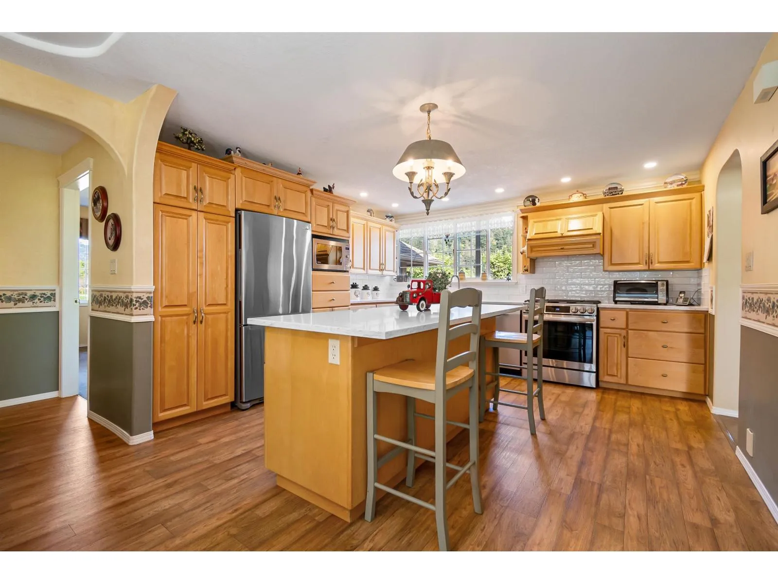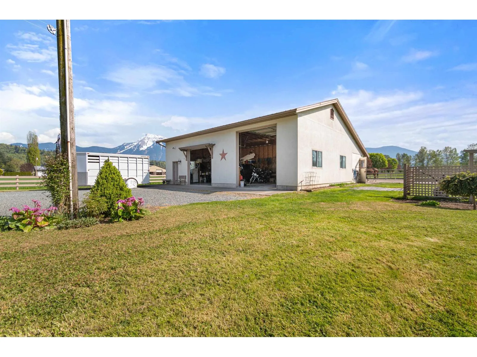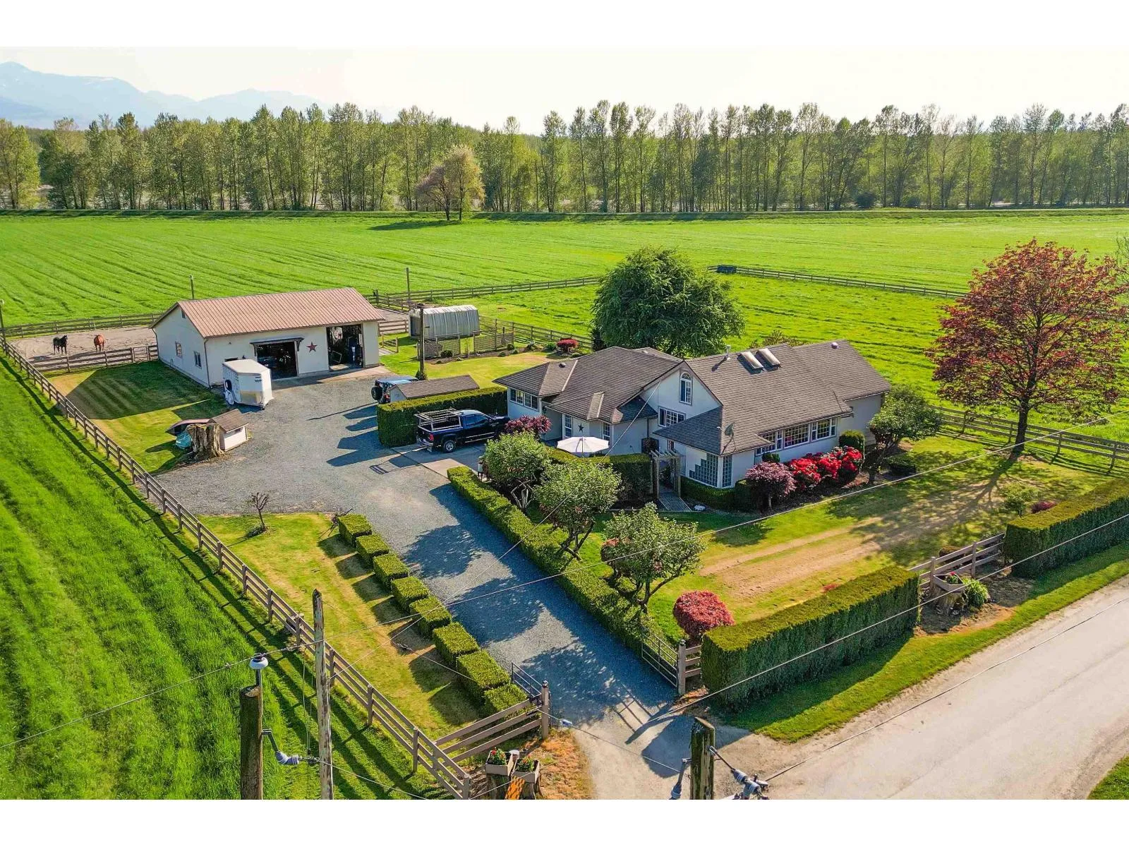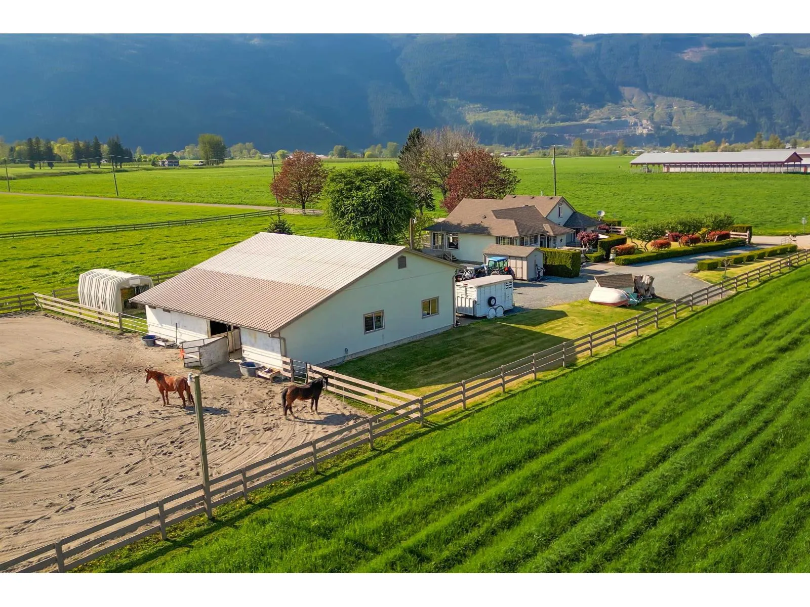 Welcome to your dream acreage in stunning Agassiz! This beautifully updated 3 bed, 2 bath home offers 3500 sqft of living space on 2 serene acres. Inside, enjoy new quartz counters, updated appliances, a high efficiency furnace, hot water tank, vinyl deck, skylights & more. The 43'x30' shop features 14' ceilings, 220 power, natural gas, its own septic & is plumbed for a bathroom. The barn has 2 stalls (room for 4), rubber mats, power/water, and an outdoor hot water wash rack. Plus, a hay barn holds 6 tons, and the 126'x63' sand arena is lit for night rides. This one has it all! (id:27476)