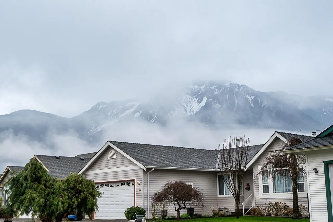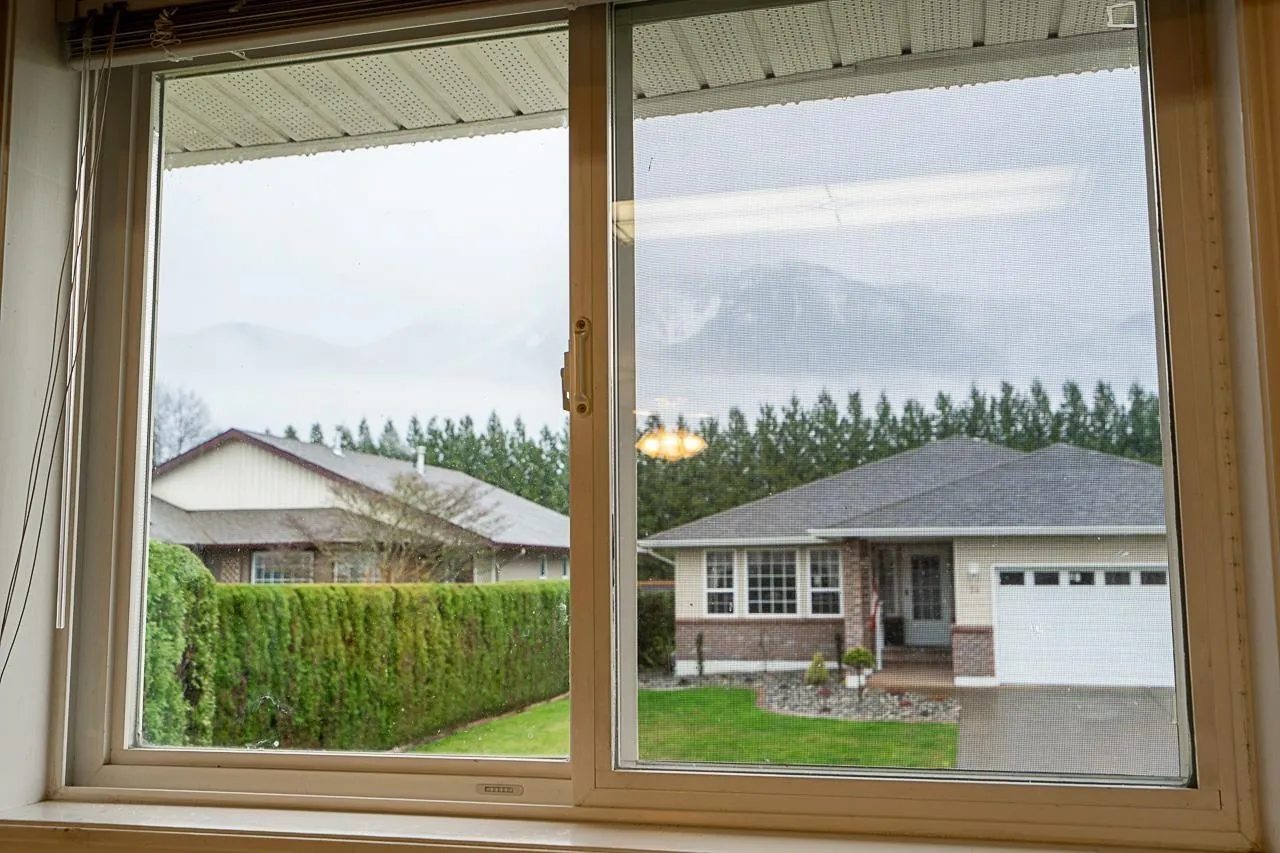 MAPLEWOOD VILLAGE! This ONE-OWNER 2 bed, 2 bath rancher in a sought-after 55+ Agassiz community, set on 5996 Sq Ft CORNER LOT. This home has been meticulously maintained, with major updates including roof, gutters, A/C, and hot water tank all done recently. Enjoy a private backyard and lovely Mount Cheam views from the kitchen and dining area. The full-length driveway fits two vehicles side-by-side, plus a deep garage ideal for a pickup. Bonus features include natural gas fireplace, BBQ hookup, dry concrete crawl space, and RV parking for just $11/month (check with strata for availability) A solid, move-in ready home offering comfort and peace of mind. (id:27476)