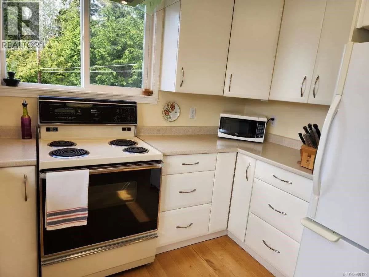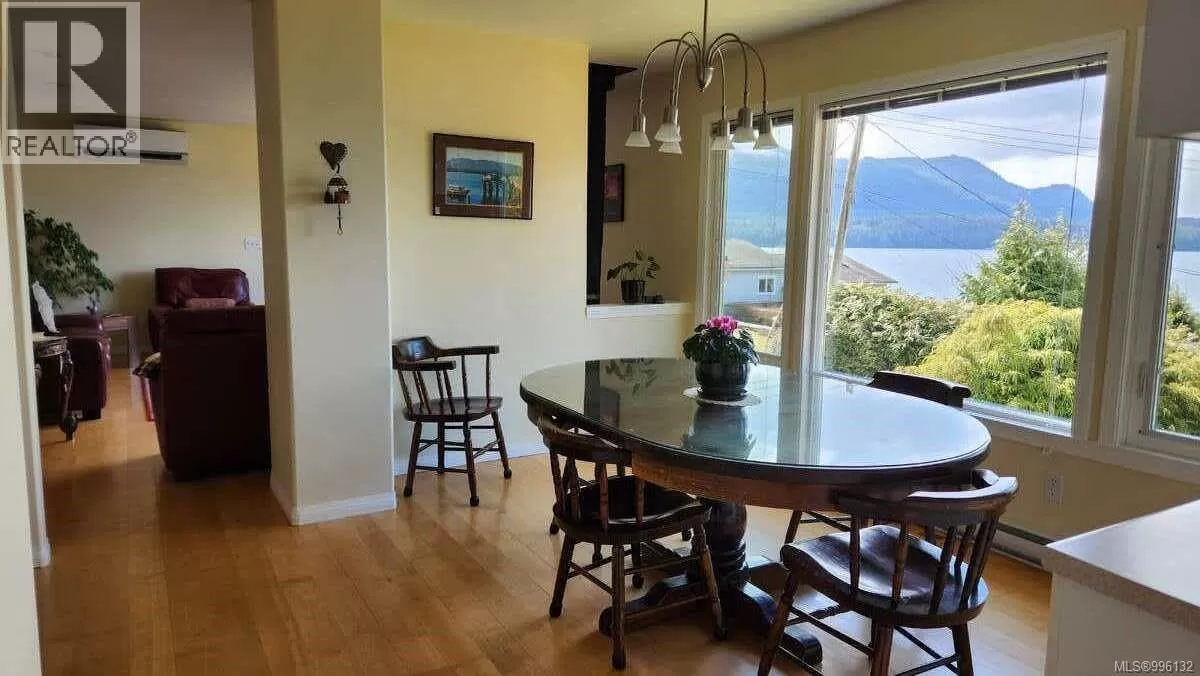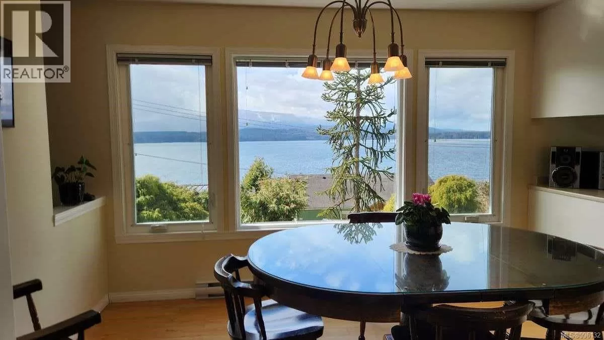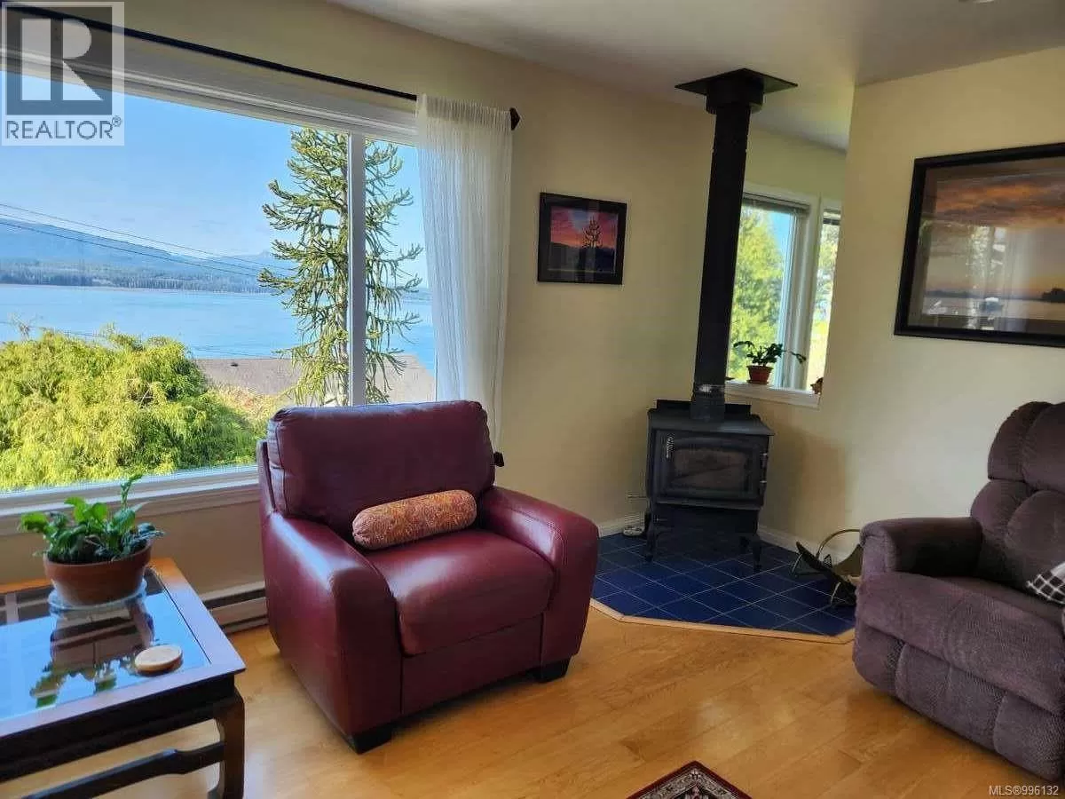 For more information, please click Brochure button. Enjoy the stunning south-west panoramic view from the living room, dining room and kitchen of this well kept, upgraded home. Look across the Broughton Strait to the mouth of the Nimpkish River on Vancouver Island. Watch the boats go by, it's different every day! The self-contained main floor has a light and airy floor plan with maple floors through most of the house. The kitchen boasts good counter space, a skookum hood fan, & lots of cupboards incl. 10 deep roll-out drawers. An adjacent built-in upright freezer with appliance storage above it leads to the main floor laundry with a tall cabinet for supplies. The bathrooms have seen upgrades in recent years, tub, shower, soft-close taps. Three good-sized main floor bedrooms, master with an ensuite bathroom. The tiled front porch has a lawnmower shed beneath it. There are three heat sources: heat pump (2022/2023) baseboard heaters (2009) and a backup woodstove. New metal roof in 2022. There is an 8â high unfinished walk-out basement with a newer wide side door and screened vinyl windows. The original overhead door has been decommissioned. Roughed-in plumbing was added in the basement when the underfloor sewer lines and copper water lines were renewed all the way out to the municipal connection in 2013. The lots total .325 acres (approx. 116â x 121â) and a recent survey of the double lot is available. All measurements are approximate. (id:27476)