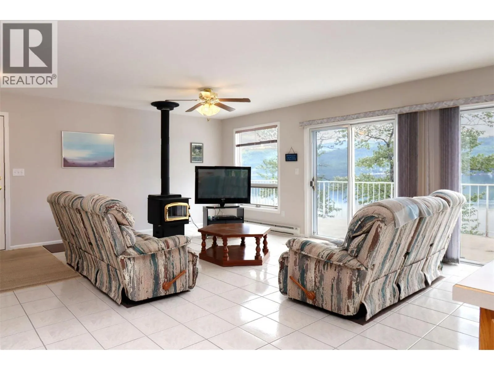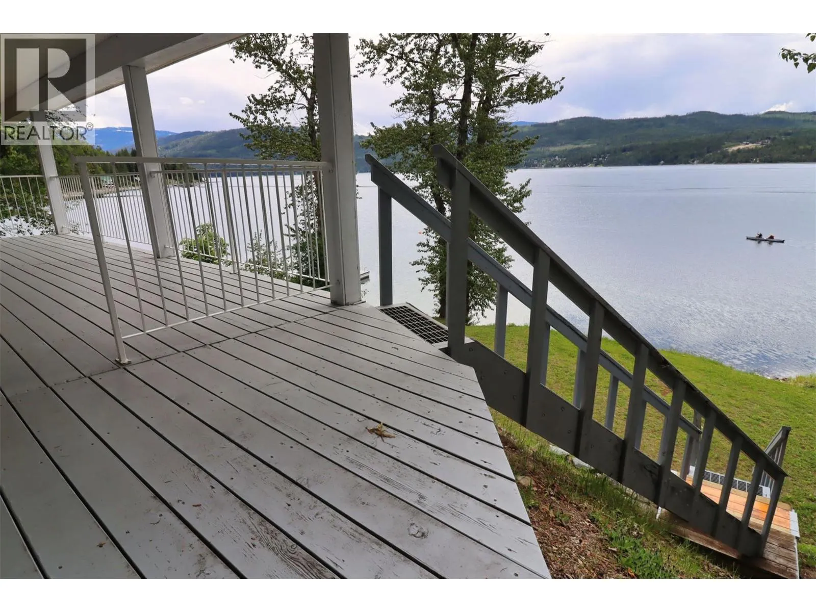 This lakeside cottage offers epic views of Shuswap Lake and the majestic mountains beyond. With 4-bedrooms and 2-bathrooms, it provides ample space for family and friends to enjoy the serenity. The property boasts direct access to Shuswap Lake, qualifying for a dock, and already features a buoy and a docking cable system in place. The old Squilax-Anglemont Road was relocated years ago, transforming the former roadway into a lush, grass-covered area perfect for activities. From this shoreline, you can enjoy the crystal-clear, deep waters of Shuswap Lake right at your doorstep.A creek meanders down the side of the dwelling, adding to the privacy. The cottage offers a cozy yet spacious feel, with large windows showcasing spectacular lake views. The main floor opens onto a balcony, a dining space, a kitchen, two guest bedrooms, and a 4-piece bathroom. Below, the primary bedroom includes a walk-in closet, a family room that extends to a covered deck, another 4-piece bathroom, an additional guest bedroom, and a laundry room. The property is part of a 2-lot strata with a relaxed, informal structure. Shared amenities include a lake intake water system and a septic field, with costs for maintenance and shared services discussed and divided among owners. The cottage is fully furnished and ready for you to start enjoying this lakeside paradise immediately. With 2.4 acres of land and 291 feet of waterfront, along with only one neighbor, this is truly an exceptional and private retreat. (id:27476)