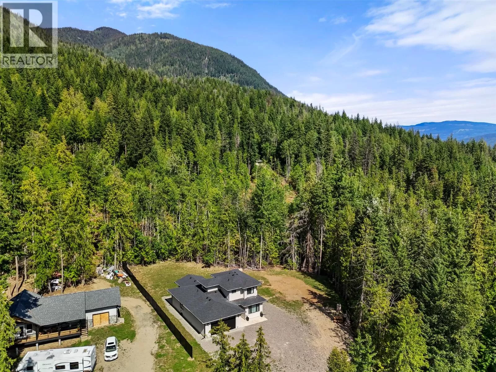 Discover your ideal escape in this beautifully crafted 4-bed, 3-bath home nestled on a private half-acre lot surrounded by nature. Built for year-round comfort, this home blends stylish design with practical living; no GST and backed by a 2-5-10 year home warranty. The open-concept main floor welcomes you with a spacious kitchen featuring granite countertops, a large island, stainless steel appliances, and sleek modern finishes. The bright living and dining areas flow seamlessly to a vaulted, covered patio overlooking a serene, tree-lined backyard; perfect for relaxing or hosting. The main-level primary suite includes a luxurious ensuite and walk-in closet, with a second bedroom and full bath nearby. Upstairs offers two more bedrooms and a third full bathroom with peaceful views. Additional highlights include central A/C, HVAC, built-in security system, and dedicated RV parking with full hookups. Whether youâre looking to settle down, invest, or retreat into nature, this home checks every box. (id:27476)
