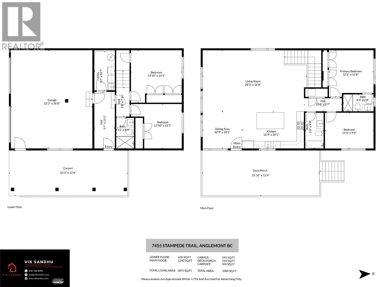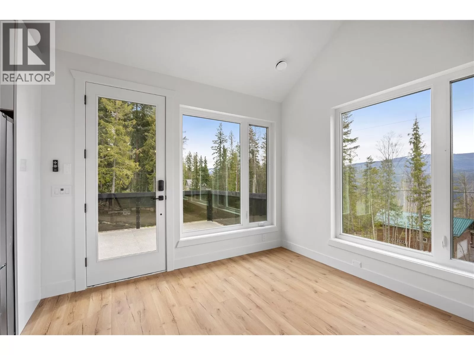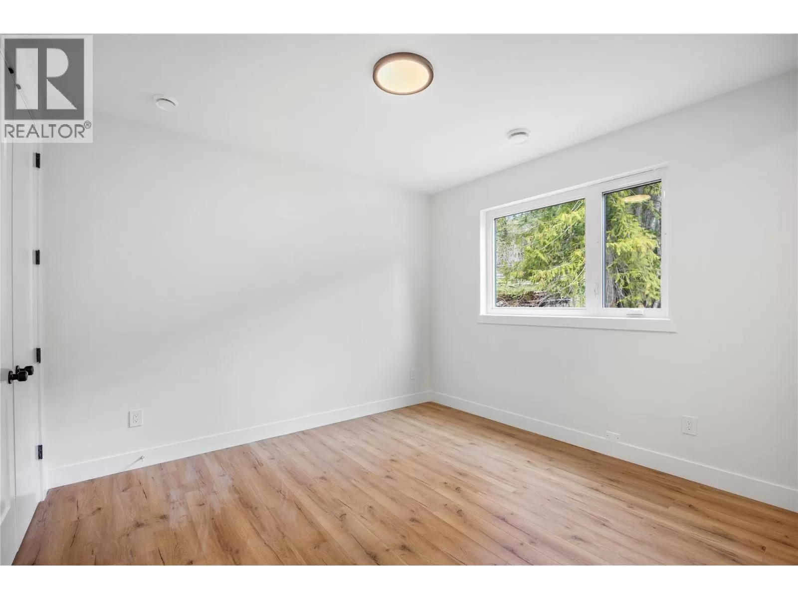 Set on a large lot in the scenic hills of Anglemont, this modern 4-bedroom, 3-bathroom home offers exceptional year-round living with stunning lake and mountain views. The spacious double garage features 13-ft ceilings; perfect for a car hoist or extra storage; plus an attached carport and interior access. The main floor includes two bedrooms, a full bath, and a laundry/utility room. Upstairs, enjoy an open-concept layout with quartz countertops, large island, and a bright living/dining space that opens to a porch with panoramic views. The upper floor includes two more bedrooms, including a primary suite with private bath, plus an additional full bathroom with walk-in shower. Central A/C, HVAC, surveillance system, and RV parking with power, water and septic hookups add comfort and convenience. No GST and still under 2-5-10 warranty, this home is ideal for those seeking peace, space, and long-term value in a four-season outdoor paradise. (id:27476)