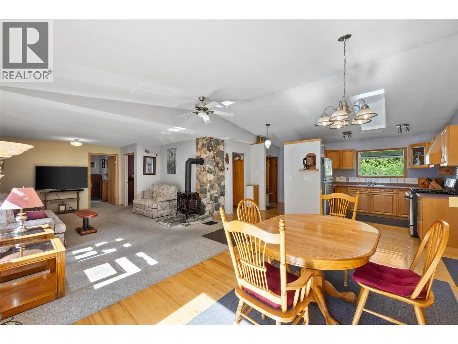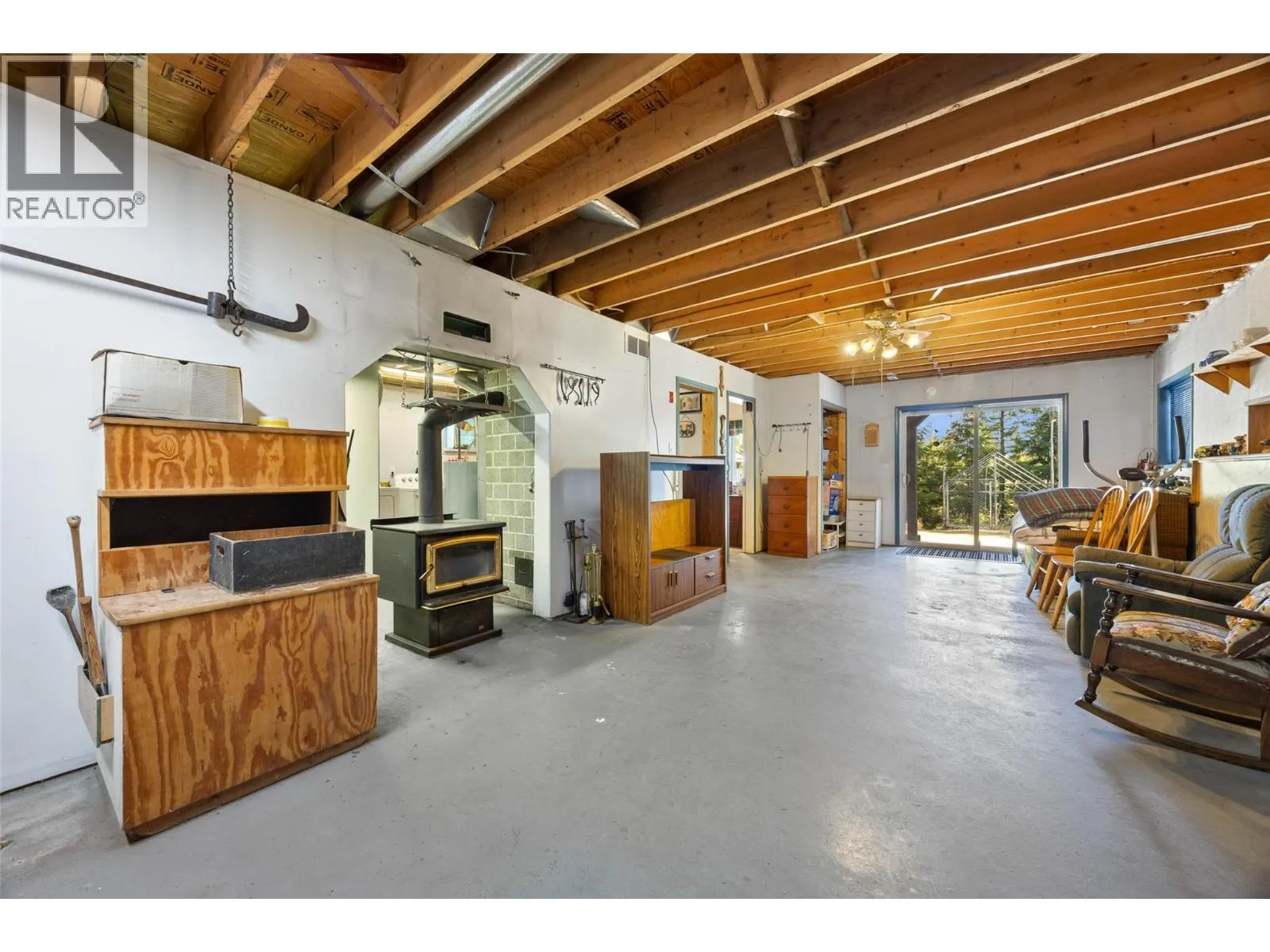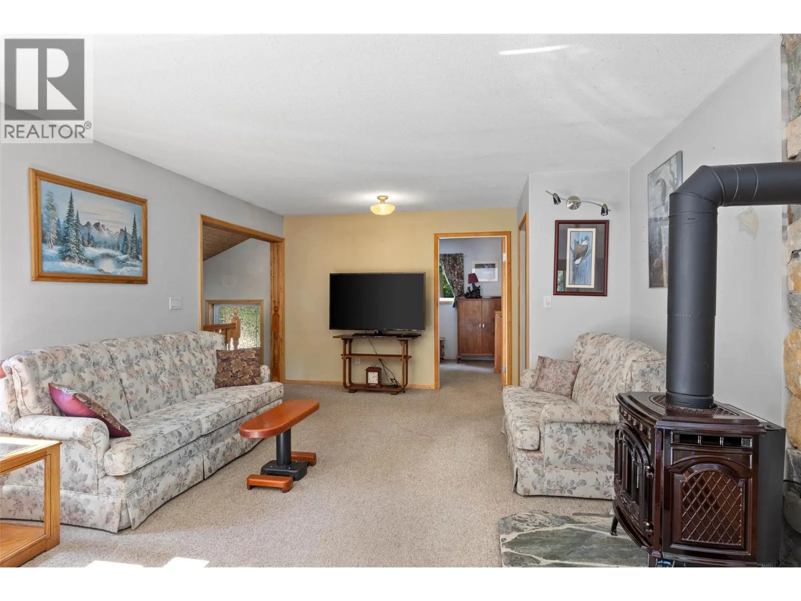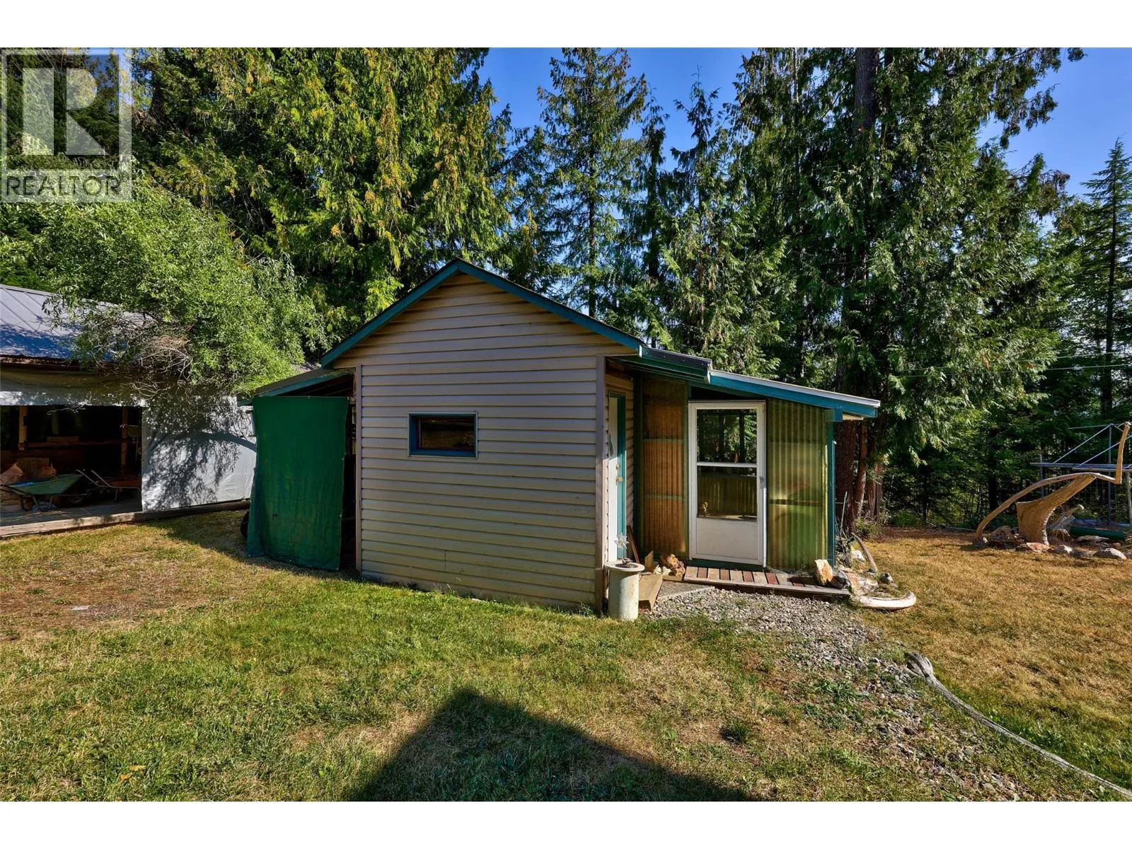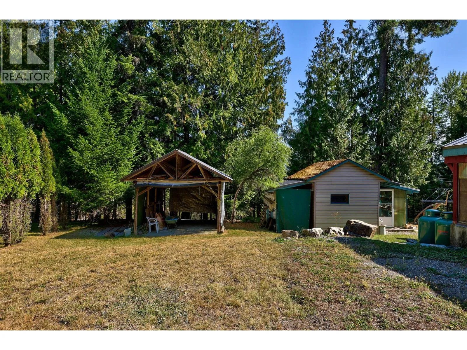 Privacy and a prime location within Anglemont Estates, this charming home on a spacious 0.42 acre lot has everything you need! Whether you are looking for a vacation destination or four season home, this property located on a no-thru road has something special to offer. Featuring a perfect blend of functionality and comfort, the upstairs offers a primary bedroom, guest bedroom, living area, dining area that leads to a balcony on one side and a sun room overlooking the backyard on the other, a cozy kitchen with a skylight, pantry, and four piece bathroom. In the basement, you will find a large workshop, four piece bathroom, utility area with laundry, storage room, guest bedroom, and recreation room with a wood-burning stove. Outside, you can enjoy your time relaxing surrounded by nature with the low-maintenance yard, or expand the garden area and bring your ideas to life. There is plenty of parking available on the looped driveway or in the carport, and two outbuildings for storage or your tools. Spend your Summers at the beach or boating on Shuswap Lake, and in the Winter enjoy the backcountry for snowmobiling and exploring! Located only a short distance from public beaches and boat launches, seasonal farmers markets, hiking trails, and to amenities such as Anglemont Estates Golf Course, Anglemont Marina, Ross Creek Country Store, and more. (id:27476)