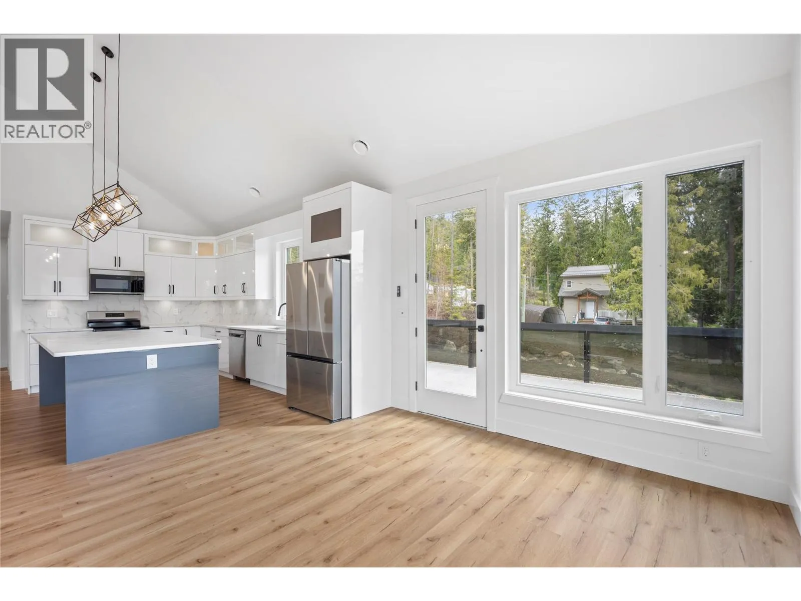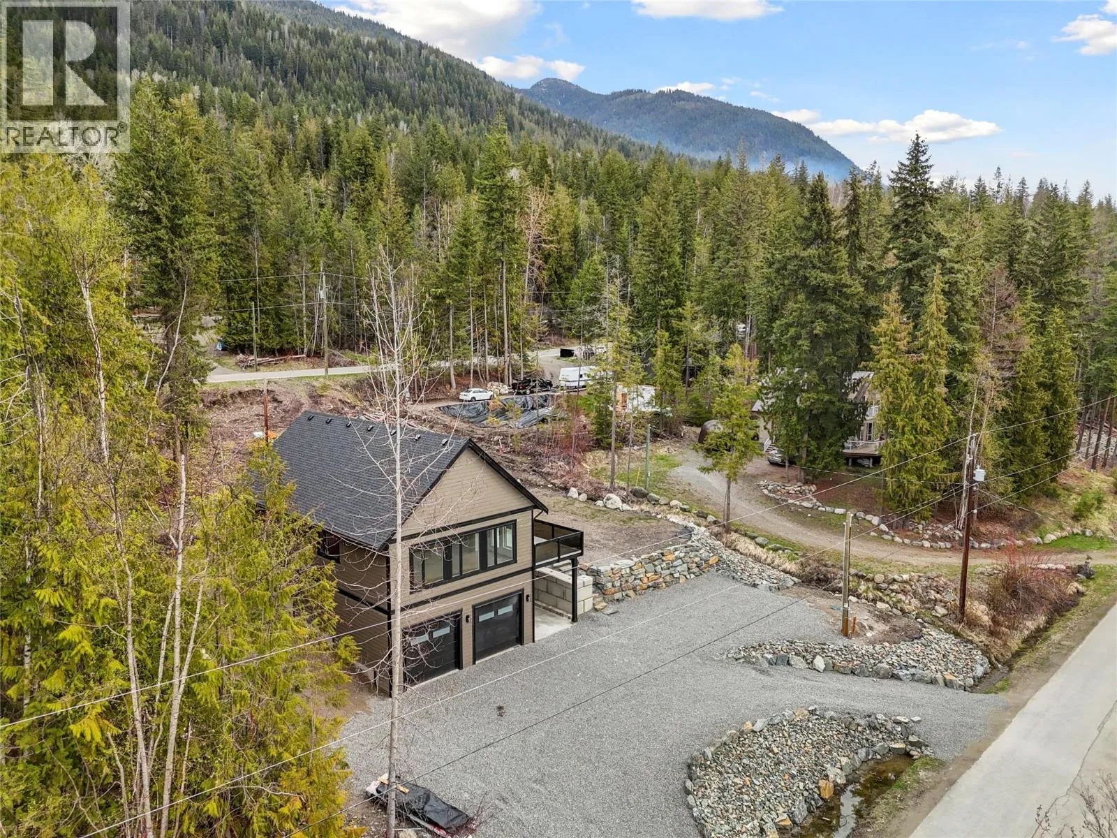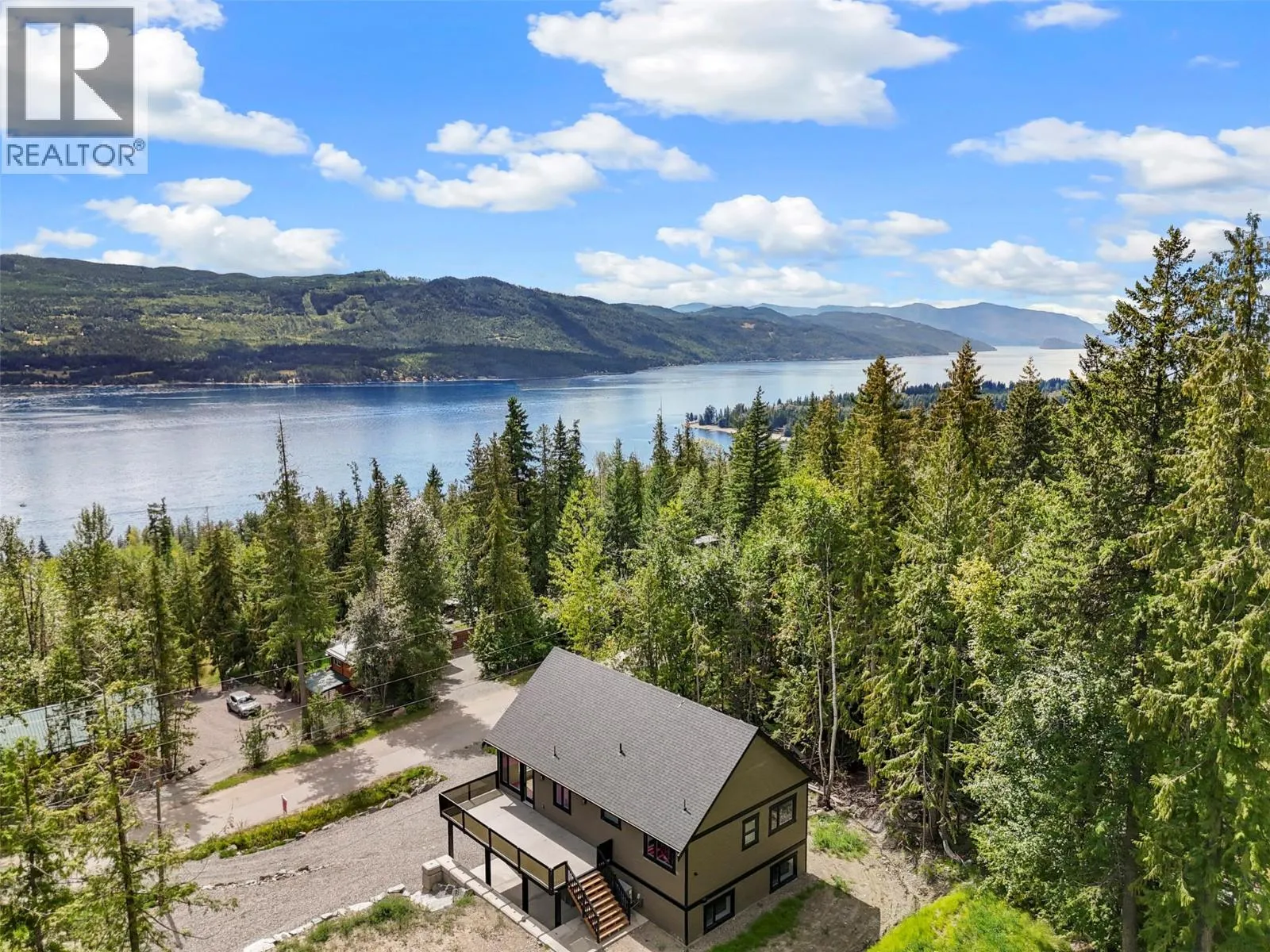 Tucked away on a quiet no-thru road, this beautifully designed 4-bedroom, 3-bathroom home offers the perfect blend of comfort, privacy, and breathtaking lake and mountain views. Located just minutes from North Shuswap Golf Course, Anglemont Marina, and Ross Creek Store, youâll enjoy both tranquility and convenience in this sought-after North Shuswap setting. The open-concept main floor is filled with natural light thanks to an abundance of windows, creating a bright and welcoming living space. The kitchen is thoughtfully appointed with a large island, quartz countertops, and stainless steel appliancesâperfect for entertaining or everyday living. Step out onto the spacious balcony to take in the stunning views and peaceful surroundings. The primary suite offers a relaxing retreat with a 3-piece ensuite and generous closet space. Downstairs, a large rec room provides flexible space for family gatherings. Additional features include a 2-car garage with impressive 13-foot ceilings, a bonus attached carport, and a full RV hookupâideal for outdoor enthusiasts. A security system is already in place for added peace of mind. This home is also covered under a 2-5-10 home warranty and is exempt from GST, offering exceptional value. If youâre looking for a private, move-in-ready home with incredible views and access to some of the North Shuswapâs best amenities, this property is a must-see. (id:27476)