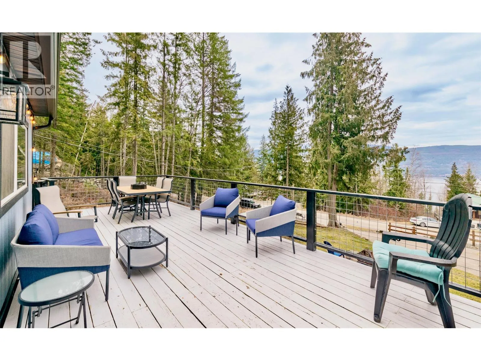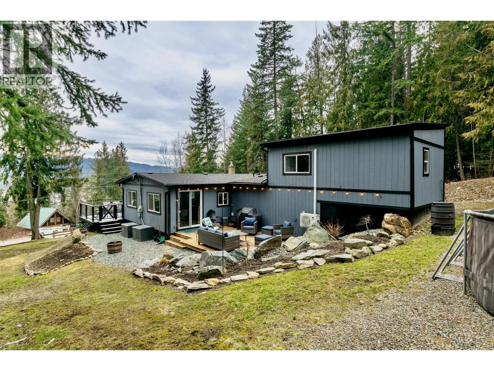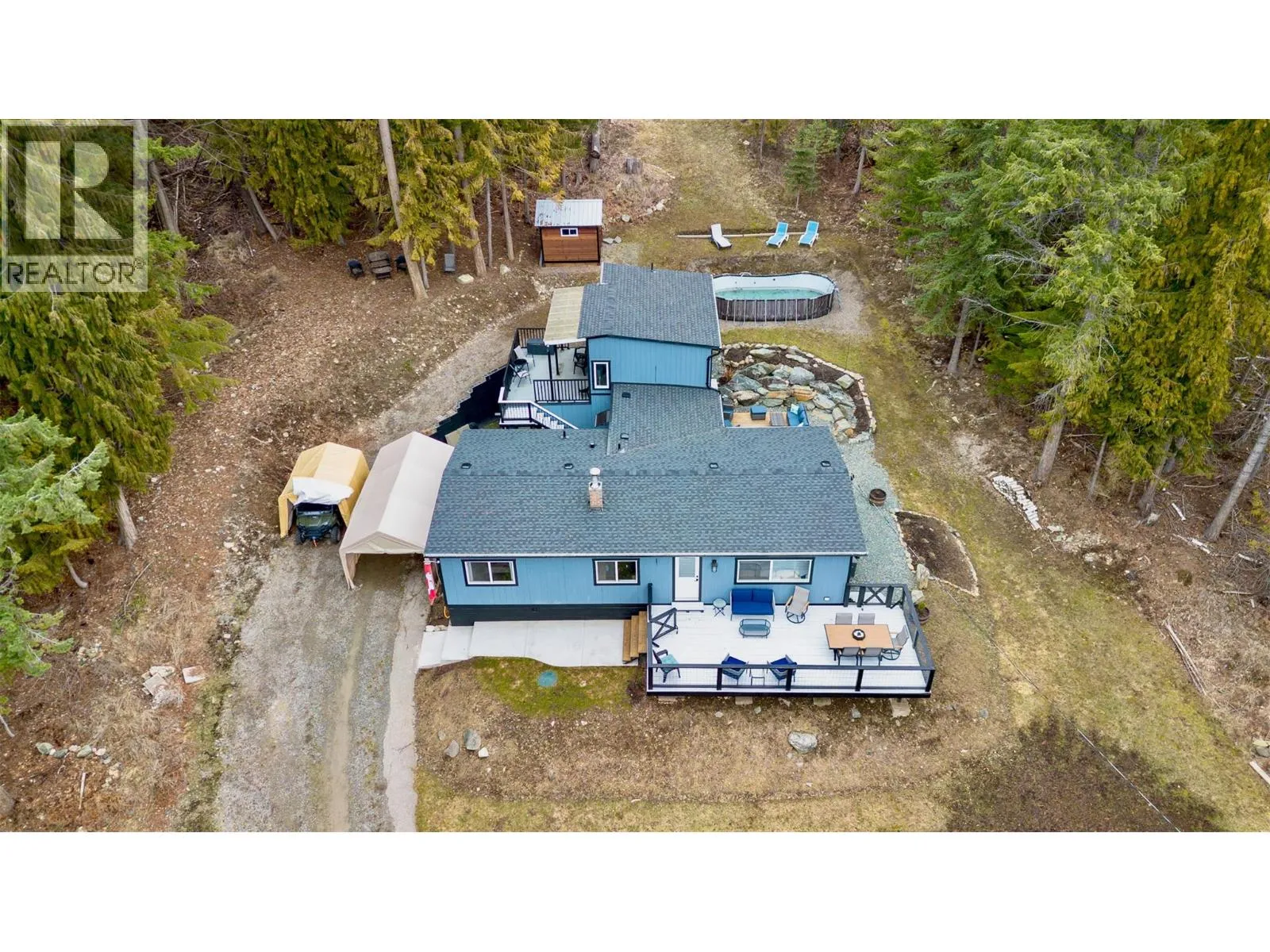 Set on 0.4 acres with lake and mountain views, this fantastic 2-bedroom, 1-bath home also features a guest suite with its own private entrance and full bath, ideal as a mortgage helper or for guests. Outdoor living is a dream with 3-sundecks, an above-ground pool, a cozy fire pit zone, 2-parking canopies and a new garden shed (2024). For those who love to tinker, the large 400sq.ft. workshop provides the ultimate workspace. The home was extensively renovated in 2020 down-to-the-studs, and has new insulation, drywall, trim, flooring, lighting, granite kitchen counters, a new hot water tank, and a new 3-head heat pump system featuring a built-in humidifier, dehumidifier, and air purifier. Enjoy winters by the WETT-certified wood stove, alongside the efficiency of new vinyl windows and patio doors throughout (2021). The guest suite was further elevated with its own heat pump in 2022. Recent upgrades offer immense peace of mind: a new roof (2023), front sundeck (2024), and 2024 excavation work for the pool, viewing area, shed zone, rock garden, and extra driveway. In August 2025, the septic was pumped, and a new concrete walkway, stairwell, and upper guest deck were built. On March 24, 2026, the entire electrical system (home, suite, workshop) was re-certified by a licensed electrician via permit. Live the ultimate outdoor lifestyle in the North Shuswap! From boating and paddleboarding to hiking, golfing, ATVing, sledding, and fishing, endless adventures are just moments away. (id:27476)