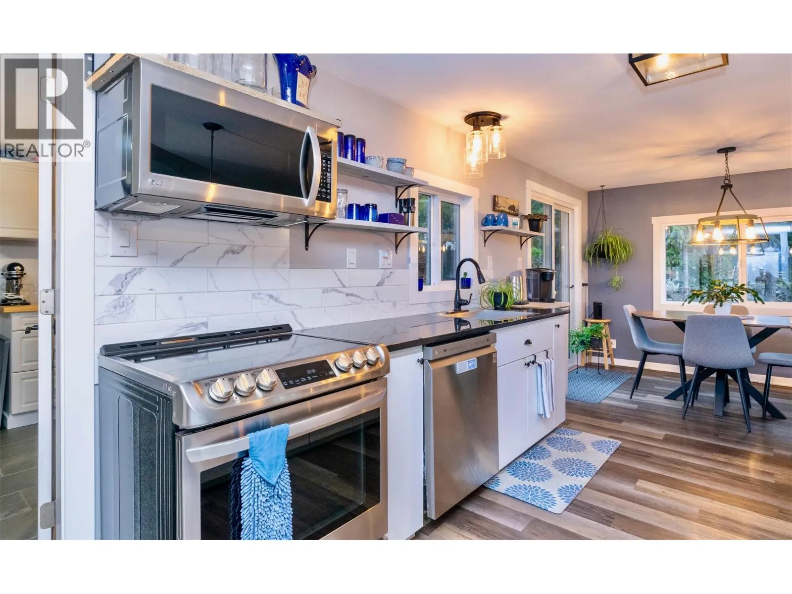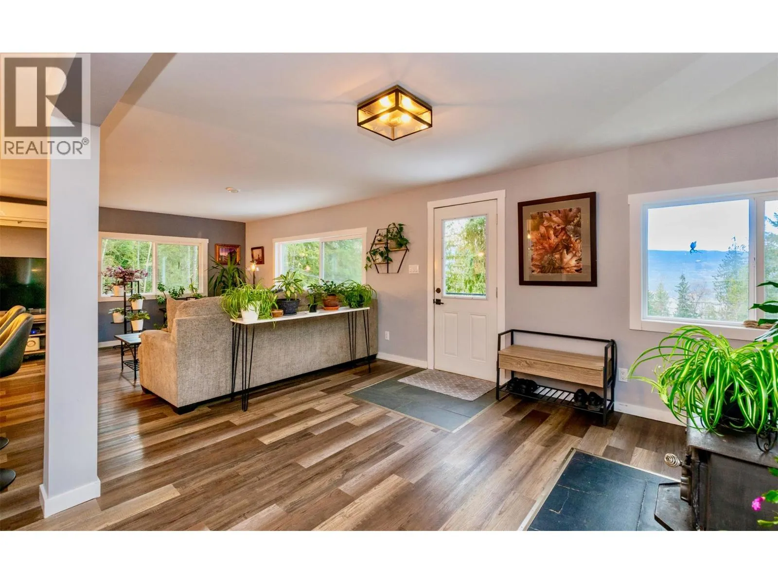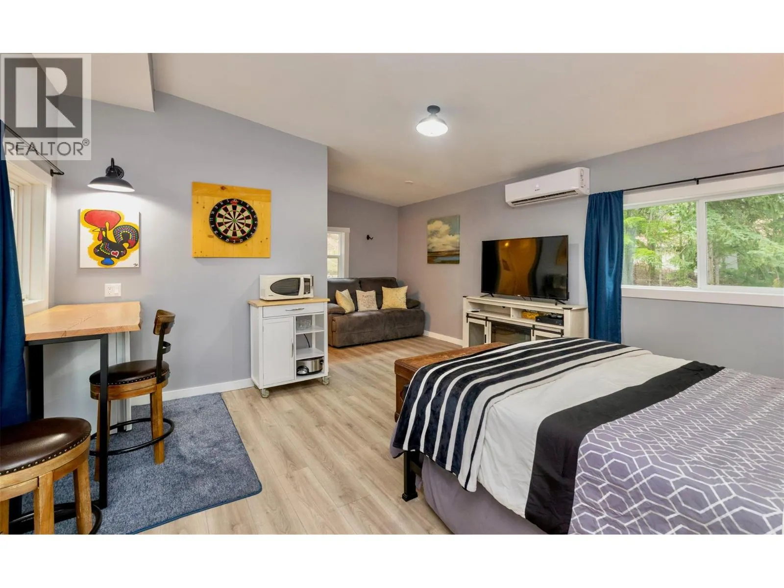 Set on 0.4 acres with lake and mountain views, this fantastic 2-bedroom, 1-bath home also features a guest suite with its own private entrance and full bath, ideal as a mortgage helper or for guests. Outdoor living is a dream with 3-sundecks, an above-ground pool, a cozy fire pit zone, 2-parking canopies and a new garden shed (2024). For those who love to tinker, the large 400sq.ft. workshop provides the ultimate workspace. The home was extensively renovated in 2020 down-to-the-studs, and has new insulation, drywall, trim, flooring, lighting, granite kitchen counters, a new hot water tank, and a new 3-head heat pump system featuring a built-in humidifier, dehumidifier, and air purifier. Enjoy winters by the WETT-certified wood stove, alongside the efficiency of new vinyl windows and patio doors throughout (2021). The guest suite was further elevated with its own heat pump in 2022. Recent upgrades offer immense peace of mind: a new roof (2023), front sundeck (2024), and 2024 excavation work for the pool, viewing area, shed zone, rock garden, and extra driveway. In August 2025, the septic was pumped, and a new concrete walkway, stairwell, and upper guest deck were built. On March 24, 2026, the entire electrical system (home, suite, workshop) was re-certified by a licensed electrician via permit. Live the ultimate outdoor lifestyle in the North Shuswap! From boating and paddleboarding to hiking, golfing, ATVing, sledding, and fishing, endless adventures are just moments away. (id:27476)