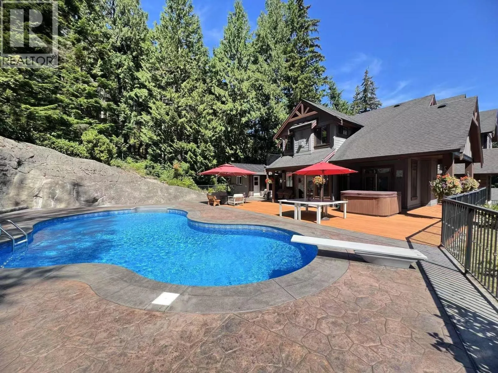 Hidden Gem in Anmore Village - Private Oasis Nestled on a private 1.4-acre lot in Anmore Estates, this meticulously maintained family home is surrounded by lush trees and designed for outdoor living. Enjoy the landscaped yard with an outdoor pool, hot tub, expansive deck, pergola, and BBQ stove in the garden-perfect for entertaining. Inside, the open-concept layout features vaulted ceilings, south-facing windows, hardwood floors, and a gourmet maple kitchen with granite counters. A main-floor ensuite bedroom suits guests or in-laws. The master suite offers a fireplace, sitting area, and spa-like 5-piece ensuite. A rare gem with a triple garage! Tons of upgrade, including newly replaced composite tile deck. Open House Nov 09 Sun 1:00 - 3:00pm (id:27476)