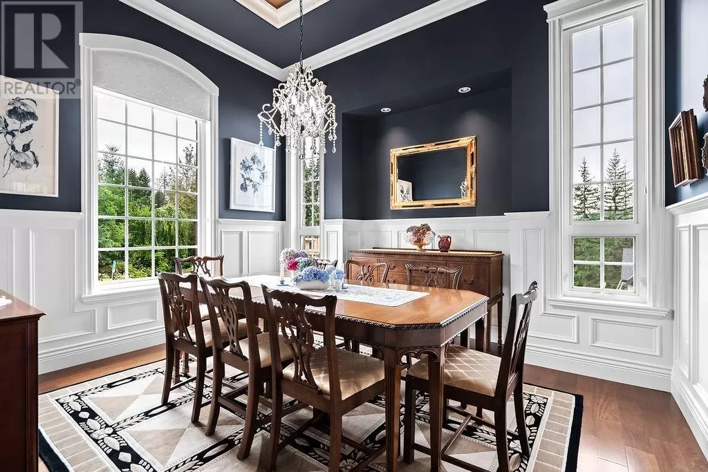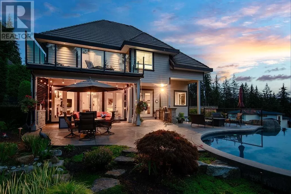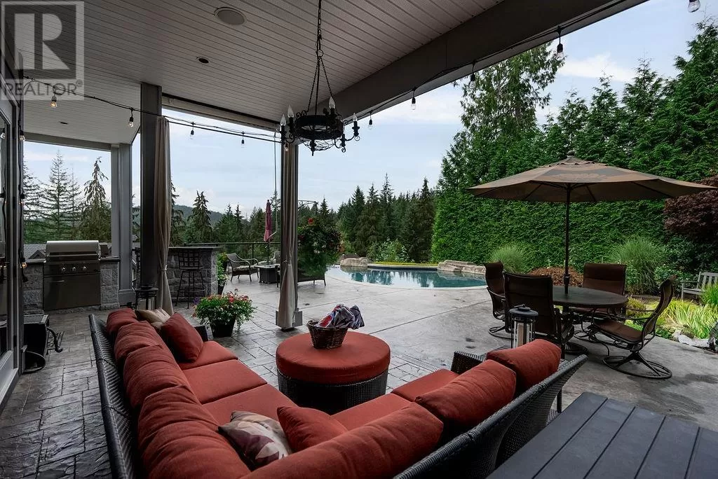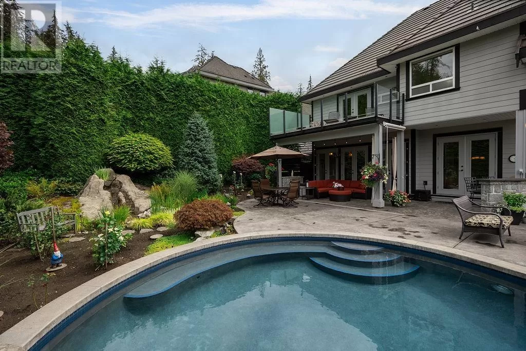 NEW PRICE!! Nestled in the serene Village of Anmore, this extraordinary estate offers a rare opportunity to own a custom-designed masterpiece by renowned Oscar Woodman. This exquisite Eberwein Home blends timeless elegance with modern luxury, creating unparalleled living experience. Enjoy complete privacy with an award-winning, west-facing infinity pool that provides breathtaking sunset views over the surrounding landscape. A great family layout with 3 en-suited bedrooms upstairs highlighted by the opulent primary suite with 5 piece spa bathroom incl gorgeous clawfoot tub. Downstairs, a guest bedroom, games room, professional gym and movie theatre room. Features and details galore: 13ft vaulted ceilings, wainscot walls, coffered ceilings, crown mouldings, A/C, Generator, 450 bottle wine cellar, 3 car epoxy garage by Garage Guru, 220 V/50 A Stage 2 EV charging, meticulous gardens and the list goes on...For those seeking privacy, elegance, and modern living this rare French Chateau represents an unmatched opportunity. (id:27476)
